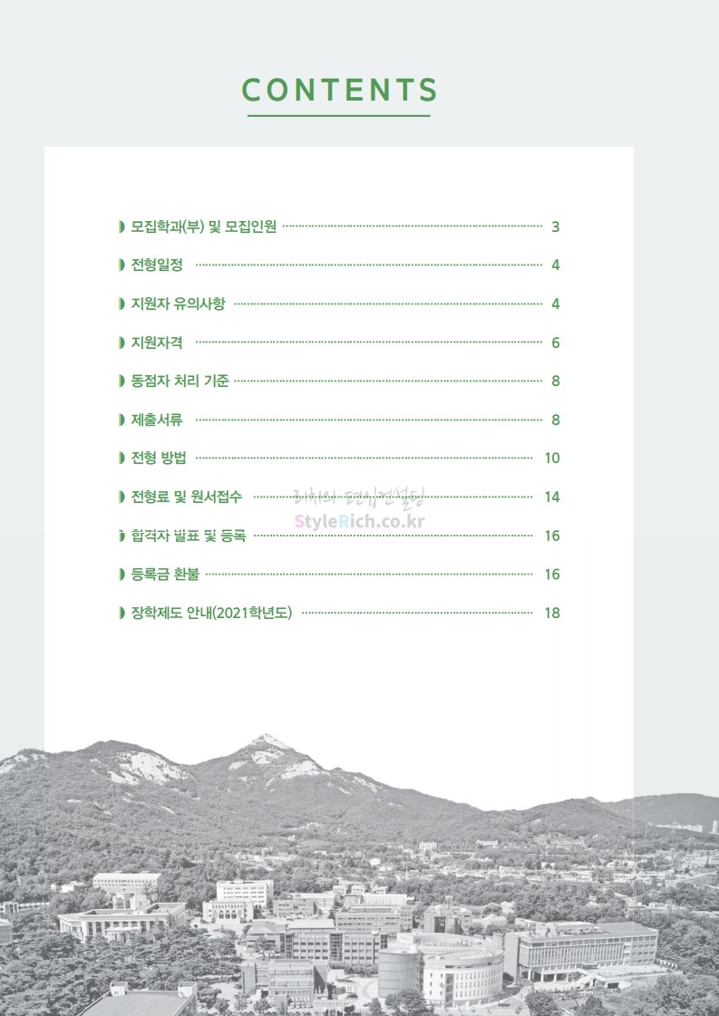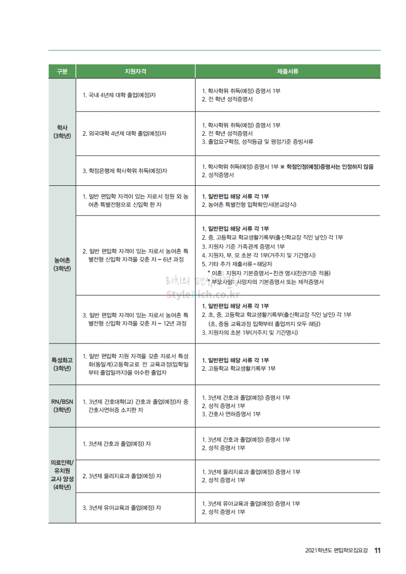삼육대 편입 2021학년도 모집요강 간편하게 보자! 2020.12.25 23:00 편입 모집요강/2021학년도 모집요강 2021학년도 삼육대 편입 모집요강(2020.12.14 기준)을 간편하게 확인하세요. PC나 모바일에서 이미지를 클릭(터치) 후 이미지의 좌우측을 클릭(터치)하면 모집요강의 순서를 앞뒤로 넘길 수 있습니다. 좌측 클릭(터치)는 이전 페이지, 우측 클릭(터치)는 다음 페이지입니다. * 최종 모집요강 발표 이후에도 내용의 일부가 변경될 수 있으니 지원 전 반드시 삼육대 입학처 모집요강을 확인바랍니다. 2021학년도 삼육대 편입 모집요강 다운받기 2021학년도_삼육대학교_편입학_모집요강.pdf 2.85MB <출처: 삼육대> 🍁삼육의 가을🍁가을 캠퍼스 스케치 영상 공유하기 게시글 관리 리치의 편입컨설팅 저작자표시 비영리 변경금지 (새창열림) '편입 모집요강 > 2021학년도 모집요강' 카테고리의 다른 글 서울여대 편입 2021학년도 모집요강 간편하게 보자! (0) 2020.12.27 서경대 편입 2021학년도 모집요강 간편하게 보자! (0) 2020.12.26 고려대 편입 2021학년도 필기고사 출제범위를 알아보자! (0) 2020.12.25 덕성여대 편입 2021학년도 모집요강 간편하게 보자! (0) 2020.12.24 한양대(에리카) 편입 2021학년도 모집요강 간편하게 보자! (0) 2020.12.23 댓글 공유하기 다른 글 댓글 이 글 공유하기 구독하기 구독하기 카카오톡 카카오톡 라인 라인 트위터 트위터 Facebook Facebook 카카오스토리 카카오스토리 밴드 밴드 네이버 블로그 네이버 블로그 Pocket Pocket Evernote Evernote 다른 글 서울여대 편입 2021학년도 모집요강 간편하게 보자! 서울여대 편입 2021학년도 모집요강 간편하게 보자! 2020.12.27 서경대 편입 2021학년도 모집요강 간편하게 보자! 서경대 편입 2021학년도 모집요강 간편하게 보자! 2020.12.26 고려대 편입 2021학년도 필기고사 출제범위를 알아보자! 고려대 편입 2021학년도 필기고사 출제범위를 알아보자! 2020.12.25 덕성여대 편입 2021학년도 모집요강 간편하게 보자! 덕성여대 편입 2021학년도 모집요강 간편하게 보자! 2020.12.24 다른 글 더 둘러보기