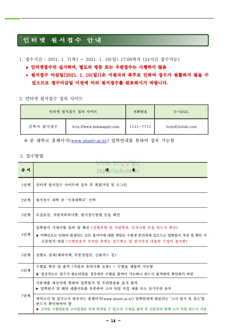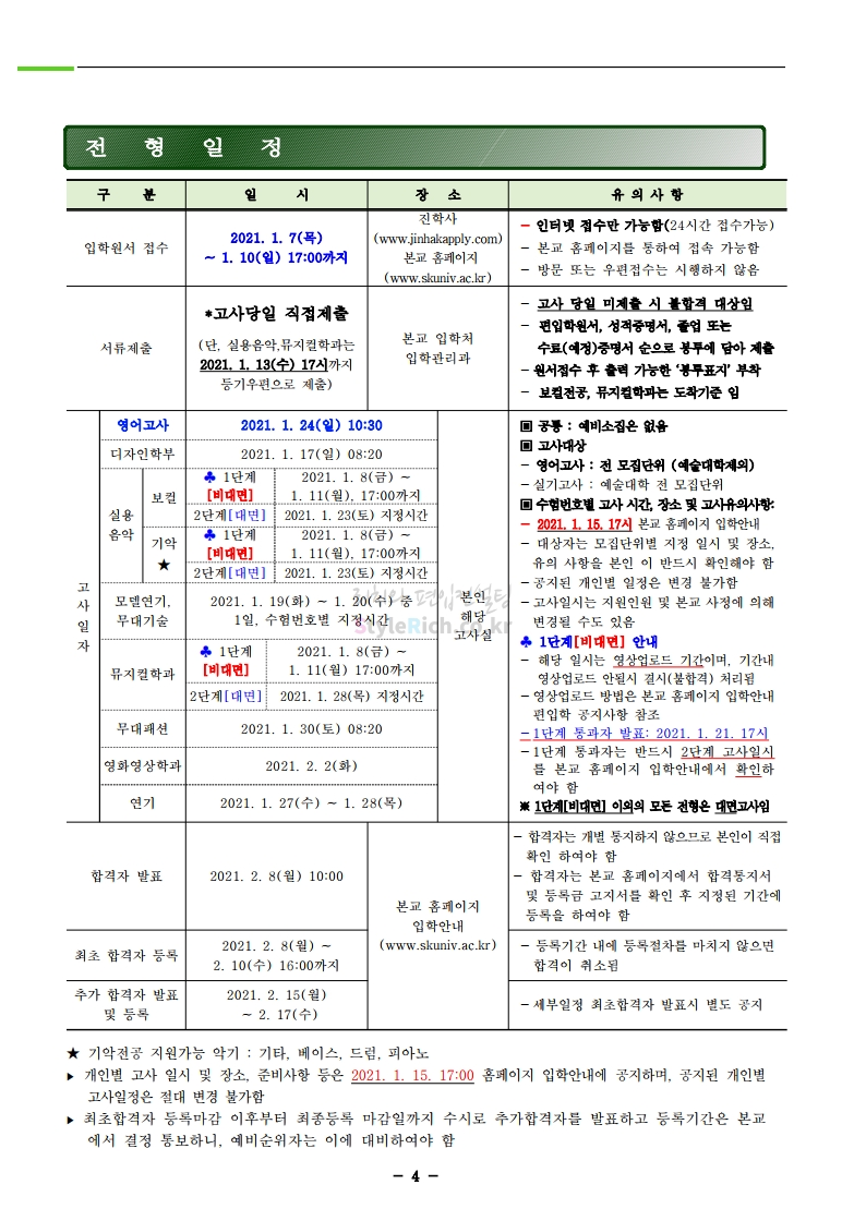 * 최종 모집요강 발표 이후에도 내용의 일부가 변경될 수 있으니 지원 전 반드시 서경대 입학처 모집요강을 확인바랍니다.