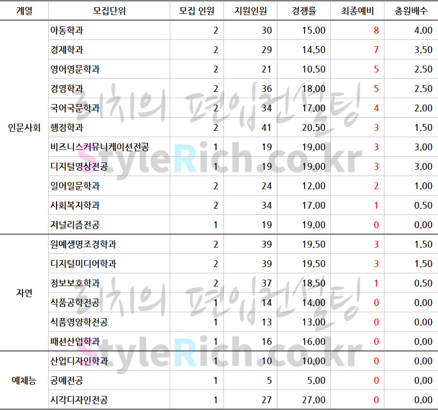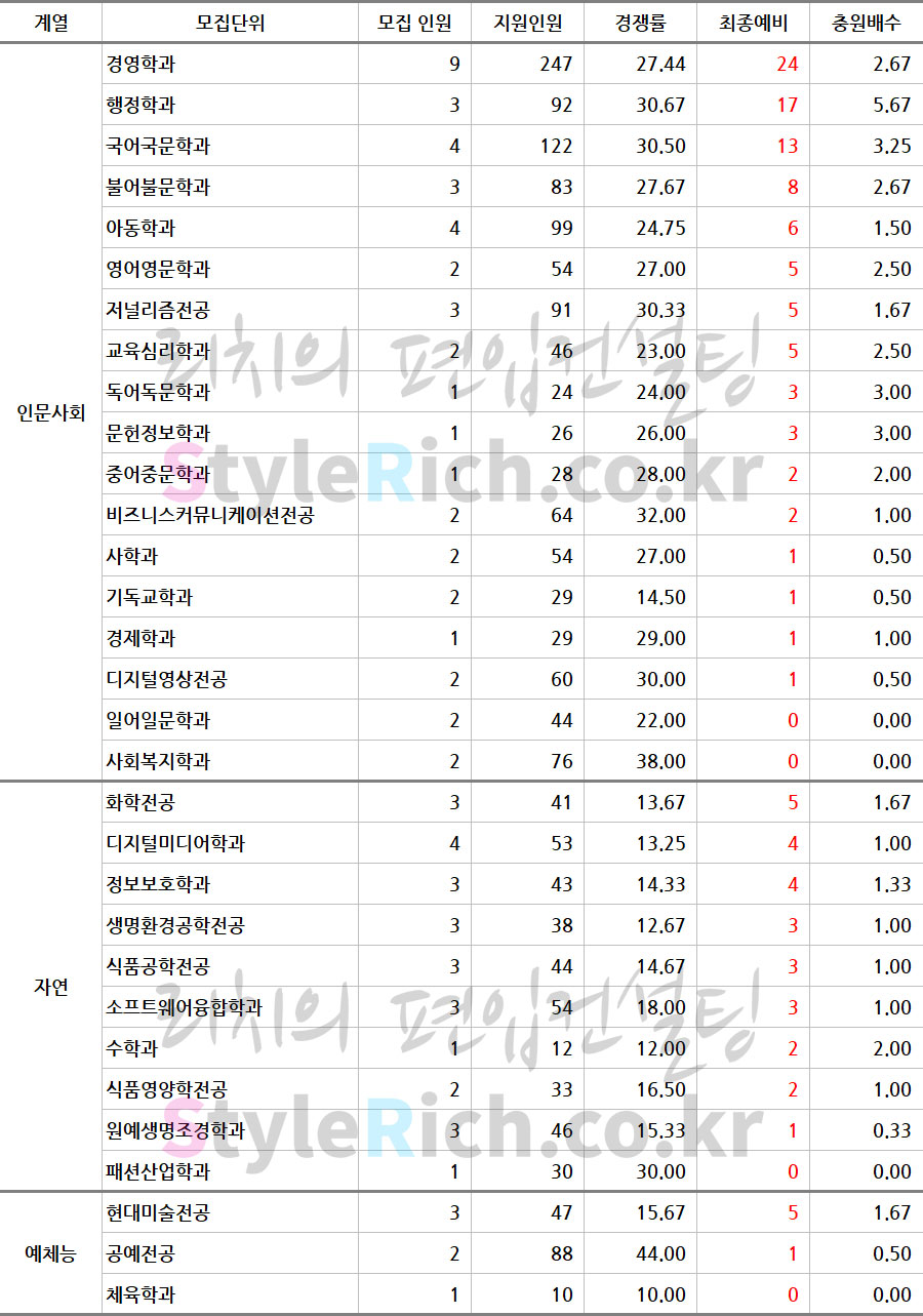 * 모집단위는 인문사회, 자연, 예체능으로 분류 후 추가합격이 많은 순으로 정렬