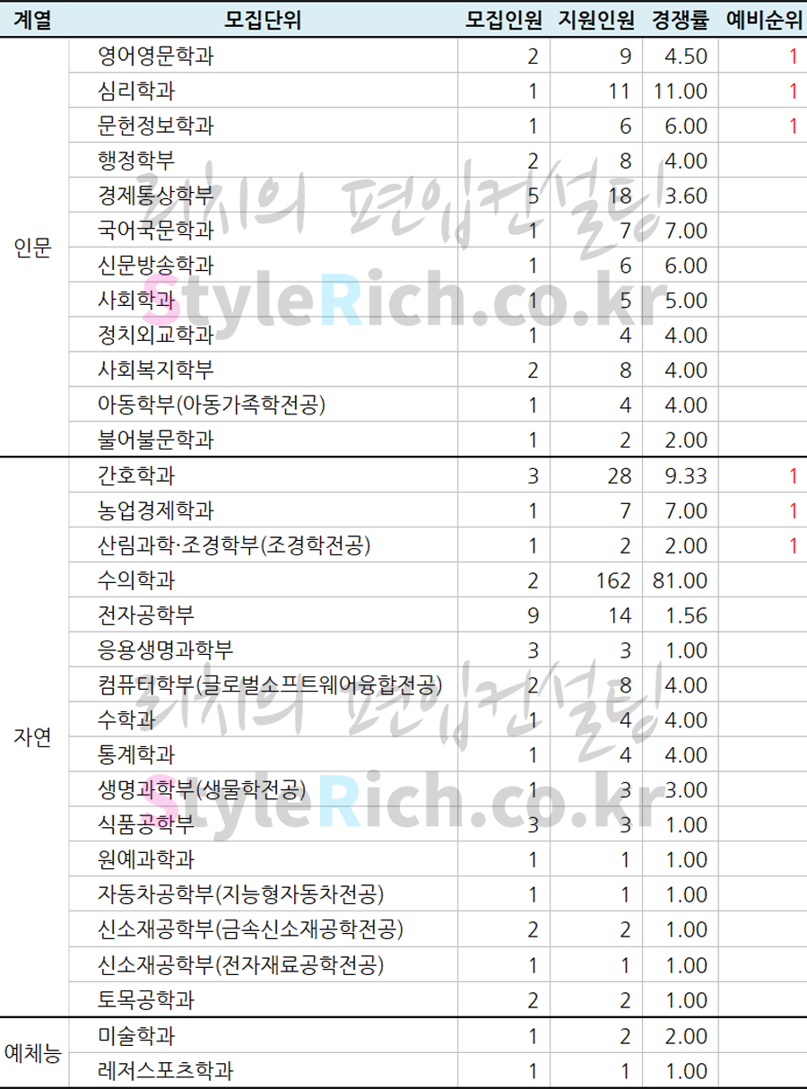 경북대 편입 2020학년도 추가합격 예비순위(예비번호)를 알아보자! 2021.01.07 22:19 편입 합격점수 & 추가합격/2020학년도 합격점수 & 추가합격 2020학년도 경북대 편입 추가합격 예비순위(예비번호)를 살펴보겠습니다. * 인문, 자연, 예체능으로 분류하여 추가합격이 높은 순으로 정렬 2020학년도 경북대 일반편입 추가합격 현황 2020학년도 경북대 일반편입 추가합격 예비순위(예비번호) 2020학년도 경북대 학사편입 추가합격 현황 2020학년도 경북대 학사편입 추가합격 예비순위(예비번호) <출처: 경북대> [슬기로운 경북대 생활] 제4편 경북대 복지시설 공유하기 게시글 관리 리치의 편입컨설팅 저작자표시 비영리 변경금지 (새창열림) '편입 합격점수 & 추가합격 > 2020학년도 합격점수 & 추가합격' 카테고리의 다른 글 강원대 편입 2020학년도 합격점수(평균점수, 커트라인)을 알아보자! (0) 2021.01.20 충북대 편입 2020학년도 합격점수(평균점수, 커트라인)을 알아보자! (0) 2021.01.13 경북대 편입 2020학년도 합격점수(평균점수, 커트라인)을 알아보자! (0) 2021.01.07 서울여대 편입 2020학년도 추가합격 예비순위(예비번호)를 알아보자! (0) 2020.12.27 서경대 편입 2020학년도 추가합격 예비순위(예비번호)를 알아보자! (0) 2020.12.26 댓글 공유하기 다른 글 댓글 이 글 공유하기 구독하기 구독하기 카카오톡 카카오톡 라인 라인 트위터 트위터 Facebook Facebook 카카오스토리 카카오스토리 밴드 밴드 네이버 블로그 네이버 블로그 Pocket Pocket Evernote Evernote 다른 글 강원대 편입 2020학년도 합격점수(평균점수, 커트라인)을 알아보자! 강원대 편입 2020학년도 합격점수(평균점수, 커트라인)을 알아보자! 2021.01.20 충북대 편입 2020학년도 합격점수(평균점수, 커트라인)을 알아보자! 충북대 편입 2020학년도 합격점수(평균점수, 커트라인)을 알아보자! 2021.01.13 경북대 편입 2020학년도 합격점수(평균점수, 커트라인)을 알아보자! 경북대 편입 2020학년도 합격점수(평균점수, 커트라인)을 알아보자! 2021.01.07 서울여대 편입 2020학년도 추가합격 예비순위(예비번호)를 알아보자! 서울여대 편입 2020학년도 추가합격 예비순위(예비번호)를 알아보자! 2020.12.27 다른 글 더 둘러보기