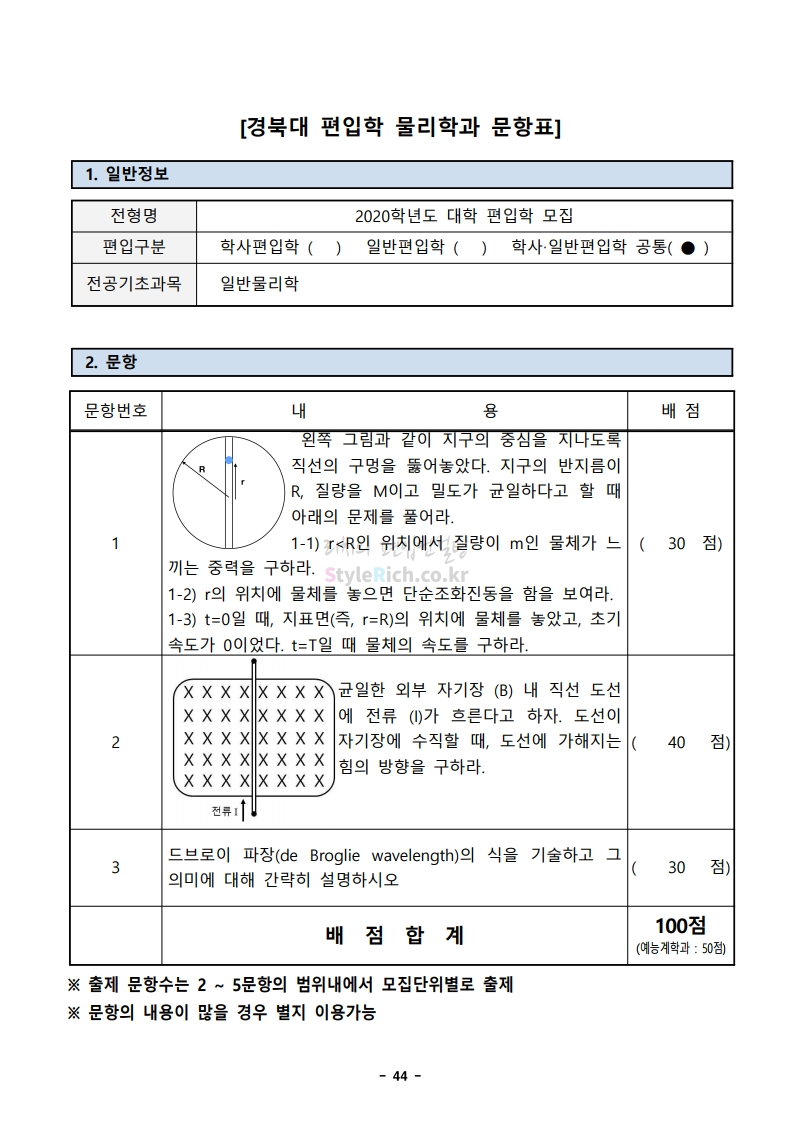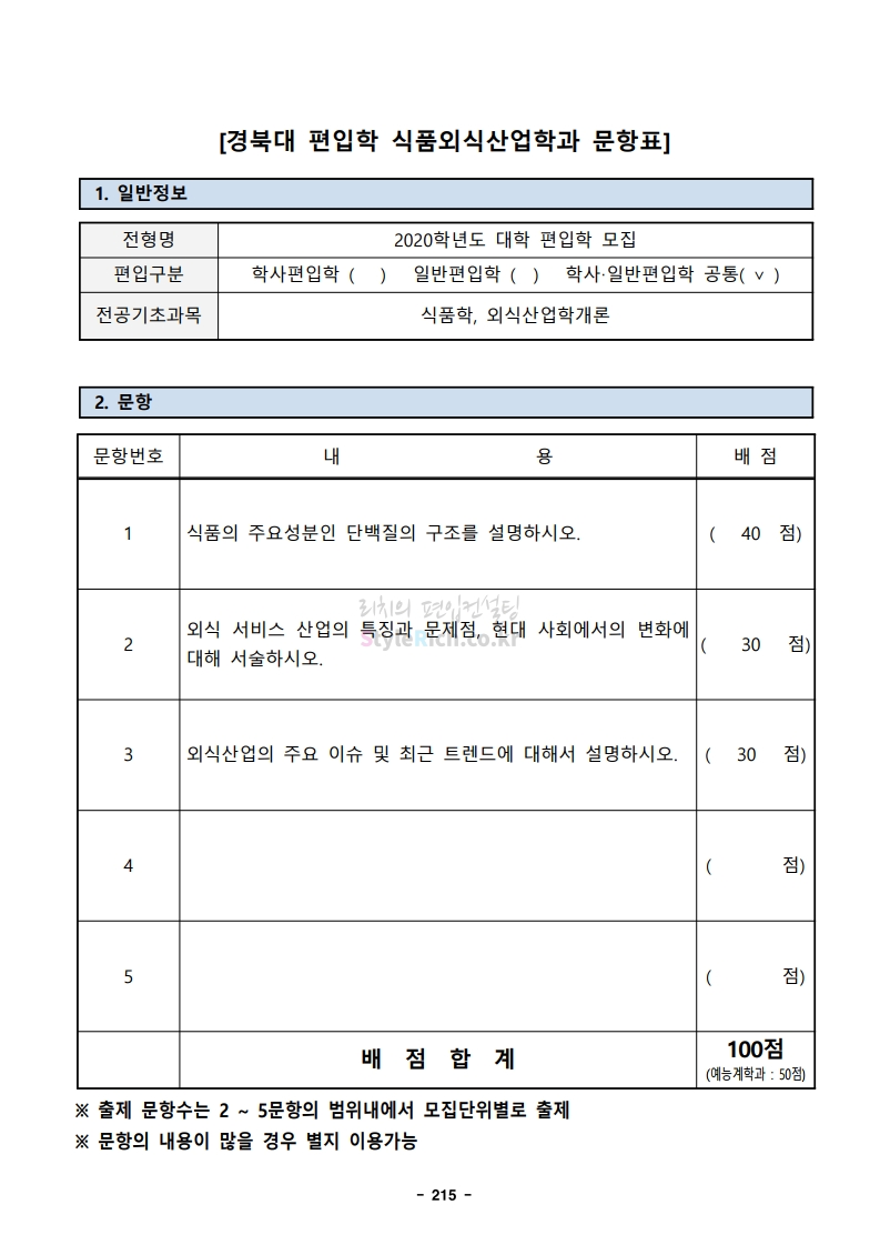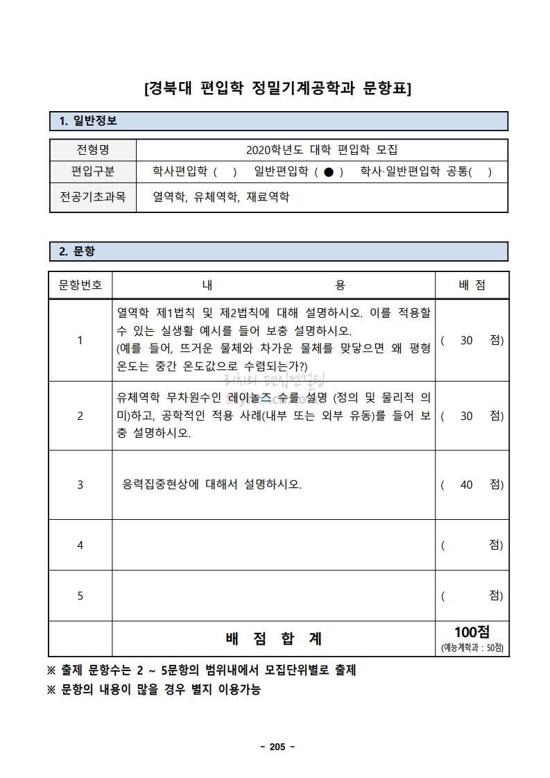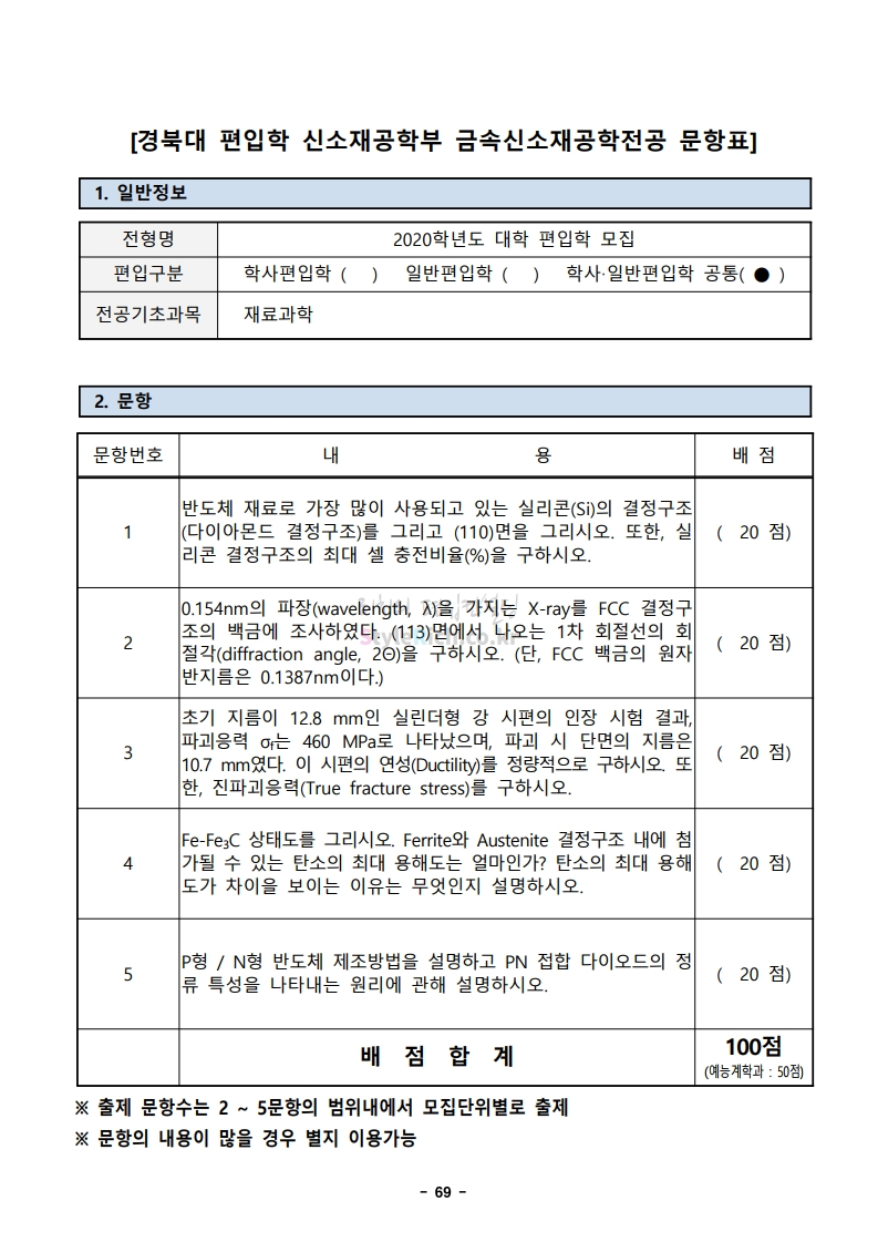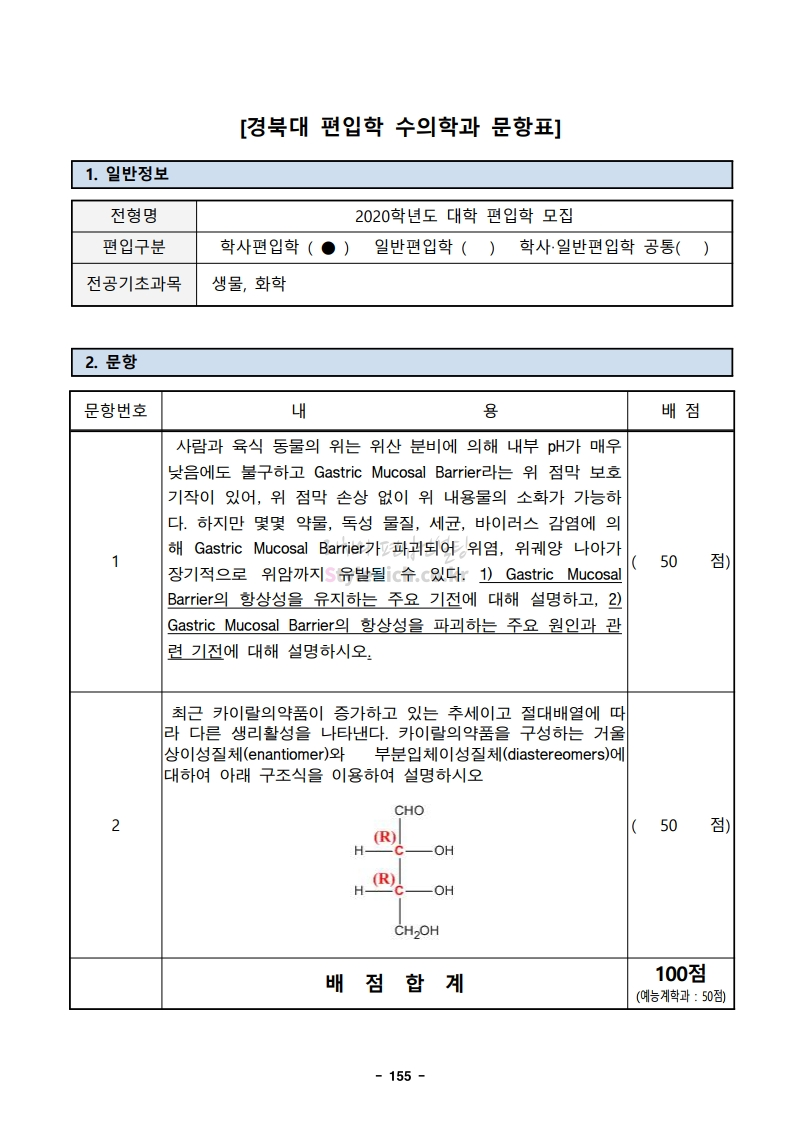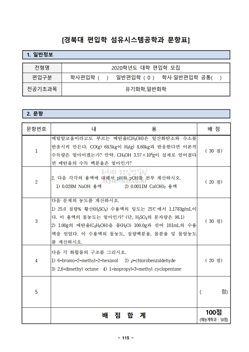 2020학년도 경북대 편입 면접 기출문제가 궁금하다면? 2021.01.07 23:05 편입 기출문제/2020학년도 기출문제 2020학년도 경북대 편입 면접기출문제를 살펴보겠습니다. * 수학과 1번 답안 오류 수정 반영하였습니다. * 기출문제가 없는 학과(부)는 모집하지 않았거나 응시자가 없는 모집단위입니다. <출처: 경북대> [2020학년도 경북대 학부모 설명회] 장학제도 및 취업 프로그램 안내 공유하기 게시글 관리 리치의 편입컨설팅 저작자표시 비영리 변경금지 (새창열림) '편입 기출문제 > 2020학년도 기출문제' 카테고리의 다른 글 2020학년도 영남대 편입 기출문제가 궁금하다면? (0) 2021.01.09 2020학년도 세종대 편입 기출문제가 궁금하다면? (0) 2020.09.27 2020학년도 한국산업기술대 편입 기출문제가 궁금하다면? (0) 2020.09.13 2020학년도 중앙대 편입 기출문제가 궁금하다면? (0) 2020.09.06 2020학년도 명지대 편입 기출문제가 궁금하다면? (0) 2020.08.30 댓글 공유하기 다른 글 댓글 이 글 공유하기 구독하기 구독하기 카카오톡 카카오톡 라인 라인 트위터 트위터 Facebook Facebook 카카오스토리 카카오스토리 밴드 밴드 네이버 블로그 네이버 블로그 Pocket Pocket Evernote Evernote 다른 글 2020학년도 영남대 편입 기출문제가 궁금하다면? 2020학년도 영남대 편입 기출문제가 궁금하다면? 2021.01.09 2020학년도 세종대 편입 기출문제가 궁금하다면? 2020학년도 세종대 편입 기출문제가 궁금하다면? 2020.09.27 2020학년도 한국산업기술대 편입 기출문제가 궁금하다면? 2020학년도 한국산업기술대 편입 기출문제가 궁금하다면? 2020.09.13 2020학년도 중앙대 편입 기출문제가 궁금하다면? 2020학년도 중앙대 편입 기출문제가 궁금하다면? 2020.09.06 다른 글 더 둘러보기