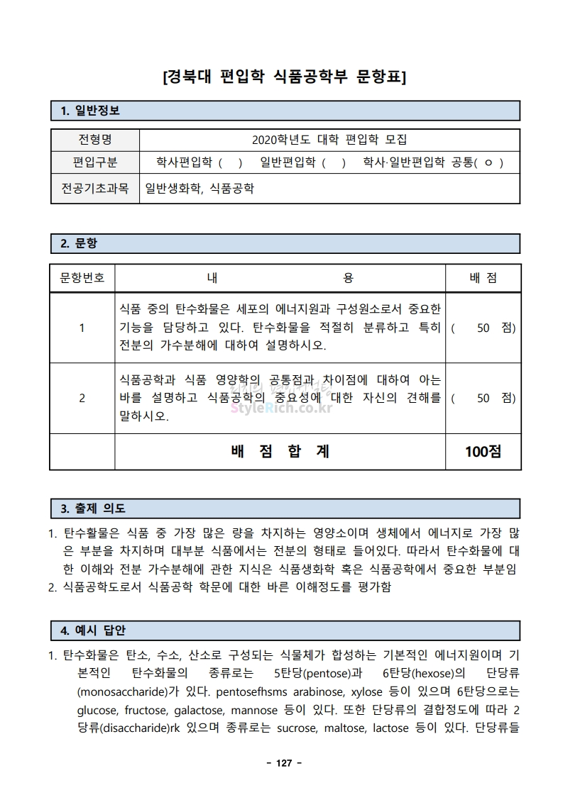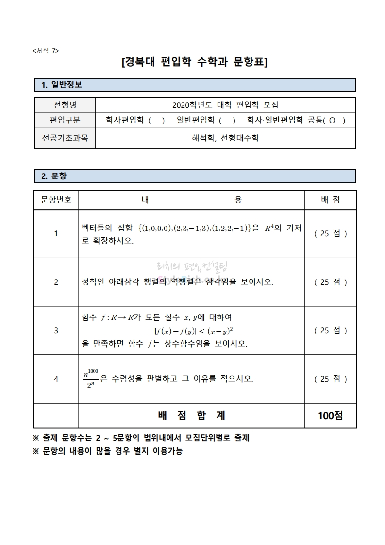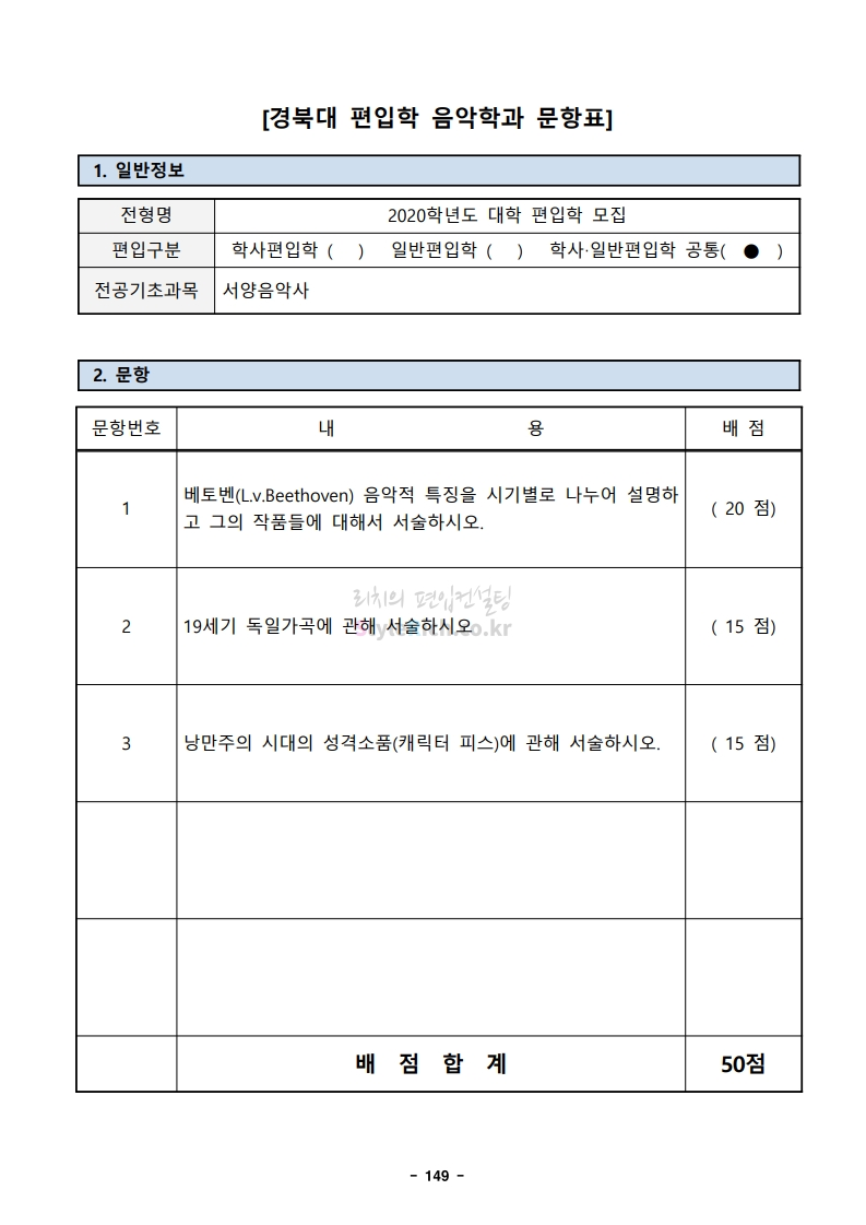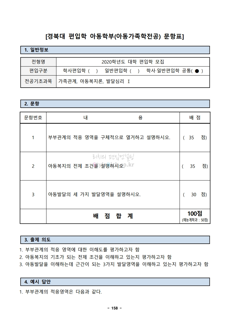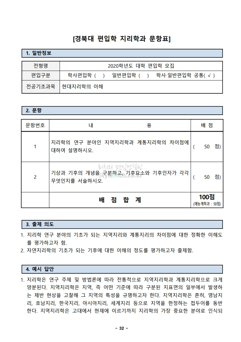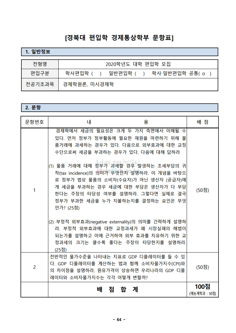 2020학년도 경북대 편입 면접 기출문제가 궁금하다면? 2021.01.07 23:05 편입 기출문제/2020학년도 기출문제 2020학년도 경북대 편입 면접기출문제를 살펴보겠습니다. * 수학과 1번 답안 오류 수정 반영하였습니다. * 기출문제가 없는 학과(부)는 모집하지 않았거나 응시자가 없는 모집단위입니다. <출처: 경북대> [2020학년도 경북대 학부모 설명회] 장학제도 및 취업 프로그램 안내 공유하기 게시글 관리 리치의 편입컨설팅 저작자표시 비영리 변경금지 (새창열림) '편입 기출문제 > 2020학년도 기출문제' 카테고리의 다른 글 2020학년도 영남대 편입 기출문제가 궁금하다면? (0) 2021.01.09 2020학년도 세종대 편입 기출문제가 궁금하다면? (0) 2020.09.27 2020학년도 한국산업기술대 편입 기출문제가 궁금하다면? (0) 2020.09.13 2020학년도 중앙대 편입 기출문제가 궁금하다면? (0) 2020.09.06 2020학년도 명지대 편입 기출문제가 궁금하다면? (0) 2020.08.30 댓글 공유하기 다른 글 댓글 이 글 공유하기 구독하기 구독하기 카카오톡 카카오톡 라인 라인 트위터 트위터 Facebook Facebook 카카오스토리 카카오스토리 밴드 밴드 네이버 블로그 네이버 블로그 Pocket Pocket Evernote Evernote 다른 글 2020학년도 영남대 편입 기출문제가 궁금하다면? 2020학년도 영남대 편입 기출문제가 궁금하다면? 2021.01.09 2020학년도 세종대 편입 기출문제가 궁금하다면? 2020학년도 세종대 편입 기출문제가 궁금하다면? 2020.09.27 2020학년도 한국산업기술대 편입 기출문제가 궁금하다면? 2020학년도 한국산업기술대 편입 기출문제가 궁금하다면? 2020.09.13 2020학년도 중앙대 편입 기출문제가 궁금하다면? 2020학년도 중앙대 편입 기출문제가 궁금하다면? 2020.09.06 다른 글 더 둘러보기