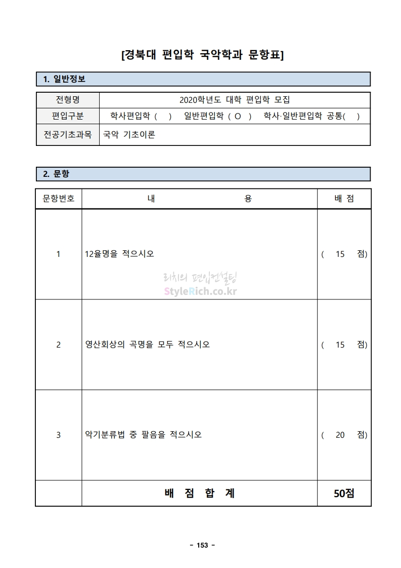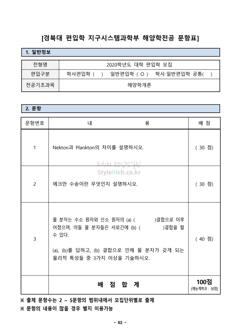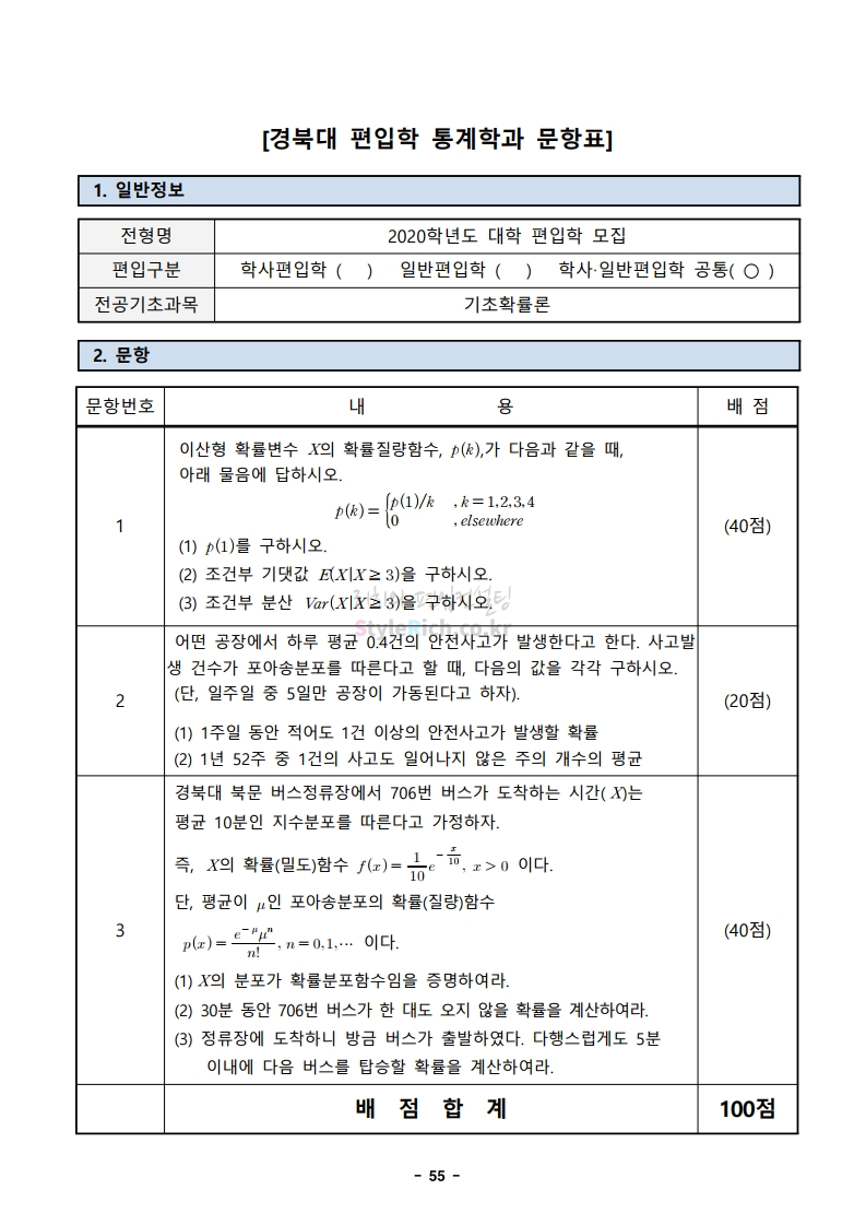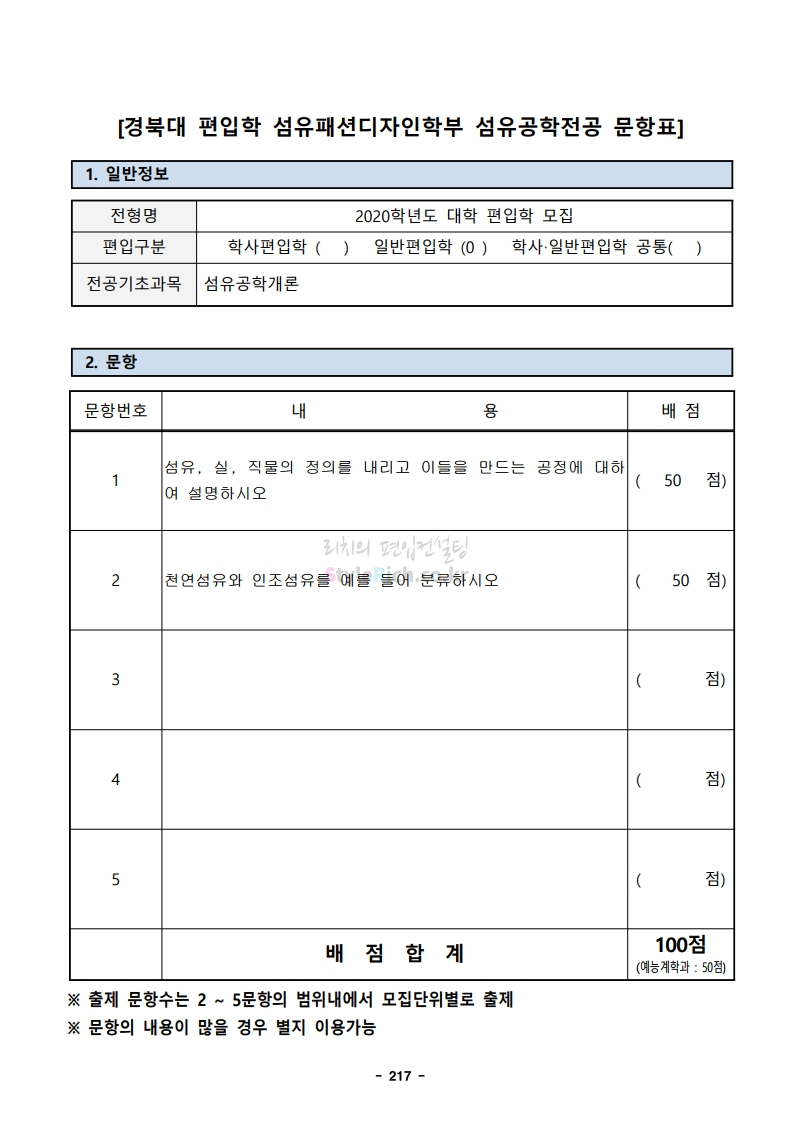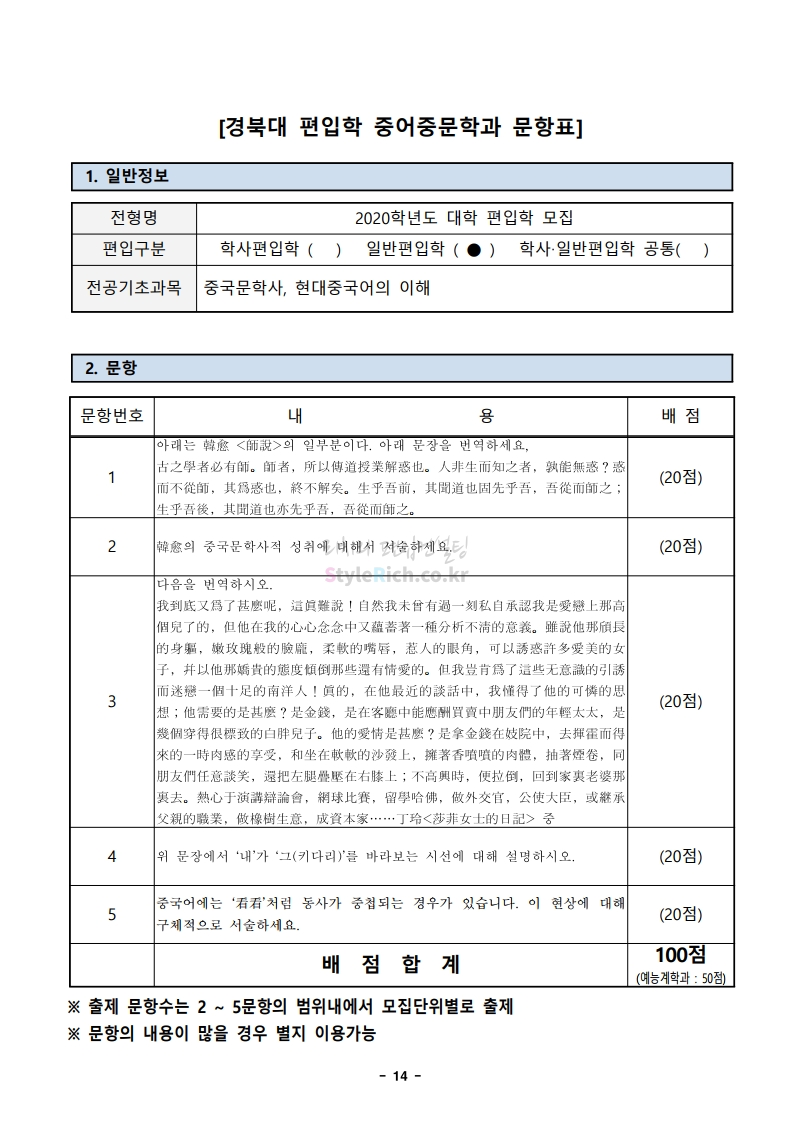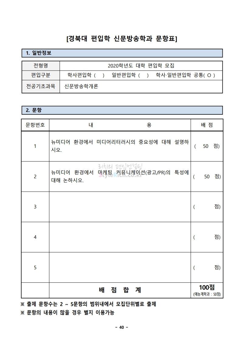 2020학년도 경북대 편입 면접 기출문제가 궁금하다면? 2021.01.07 23:05 편입 기출문제/2020학년도 기출문제 2020학년도 경북대 편입 면접기출문제를 살펴보겠습니다. * 수학과 1번 답안 오류 수정 반영하였습니다. * 기출문제가 없는 학과(부)는 모집하지 않았거나 응시자가 없는 모집단위입니다. <출처: 경북대> [2020학년도 경북대 학부모 설명회] 장학제도 및 취업 프로그램 안내 공유하기 게시글 관리 리치의 편입컨설팅 저작자표시 비영리 변경금지 (새창열림) '편입 기출문제 > 2020학년도 기출문제' 카테고리의 다른 글 2020학년도 영남대 편입 기출문제가 궁금하다면? (0) 2021.01.09 2020학년도 세종대 편입 기출문제가 궁금하다면? (0) 2020.09.27 2020학년도 한국산업기술대 편입 기출문제가 궁금하다면? (0) 2020.09.13 2020학년도 중앙대 편입 기출문제가 궁금하다면? (0) 2020.09.06 2020학년도 명지대 편입 기출문제가 궁금하다면? (0) 2020.08.30 댓글 공유하기 다른 글 댓글 이 글 공유하기 구독하기 구독하기 카카오톡 카카오톡 라인 라인 트위터 트위터 Facebook Facebook 카카오스토리 카카오스토리 밴드 밴드 네이버 블로그 네이버 블로그 Pocket Pocket Evernote Evernote 다른 글 2020학년도 영남대 편입 기출문제가 궁금하다면? 2020학년도 영남대 편입 기출문제가 궁금하다면? 2021.01.09 2020학년도 세종대 편입 기출문제가 궁금하다면? 2020학년도 세종대 편입 기출문제가 궁금하다면? 2020.09.27 2020학년도 한국산업기술대 편입 기출문제가 궁금하다면? 2020학년도 한국산업기술대 편입 기출문제가 궁금하다면? 2020.09.13 2020학년도 중앙대 편입 기출문제가 궁금하다면? 2020학년도 중앙대 편입 기출문제가 궁금하다면? 2020.09.06 다른 글 더 둘러보기