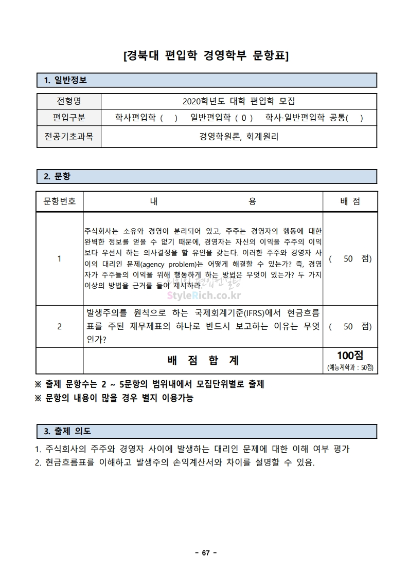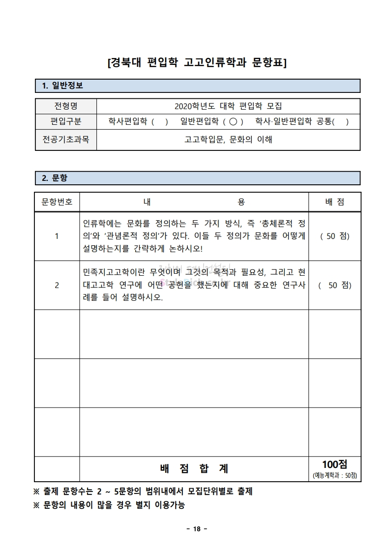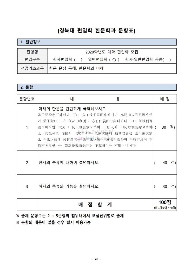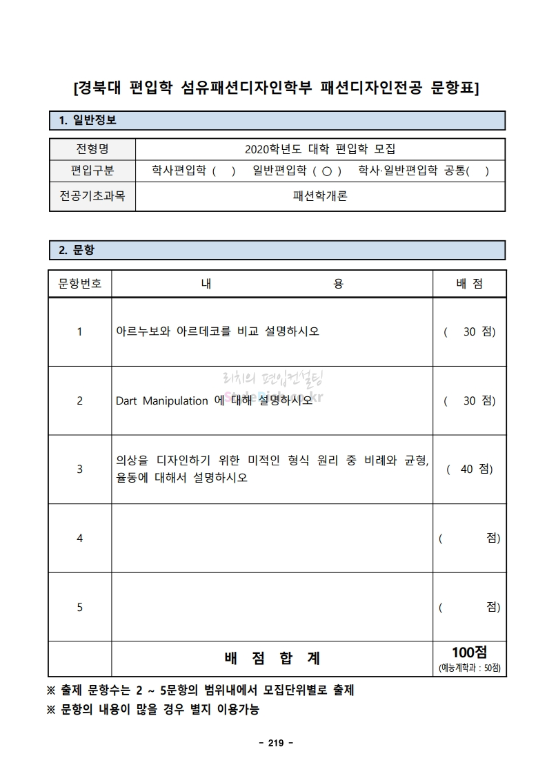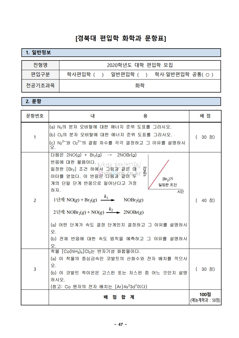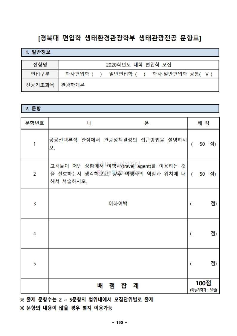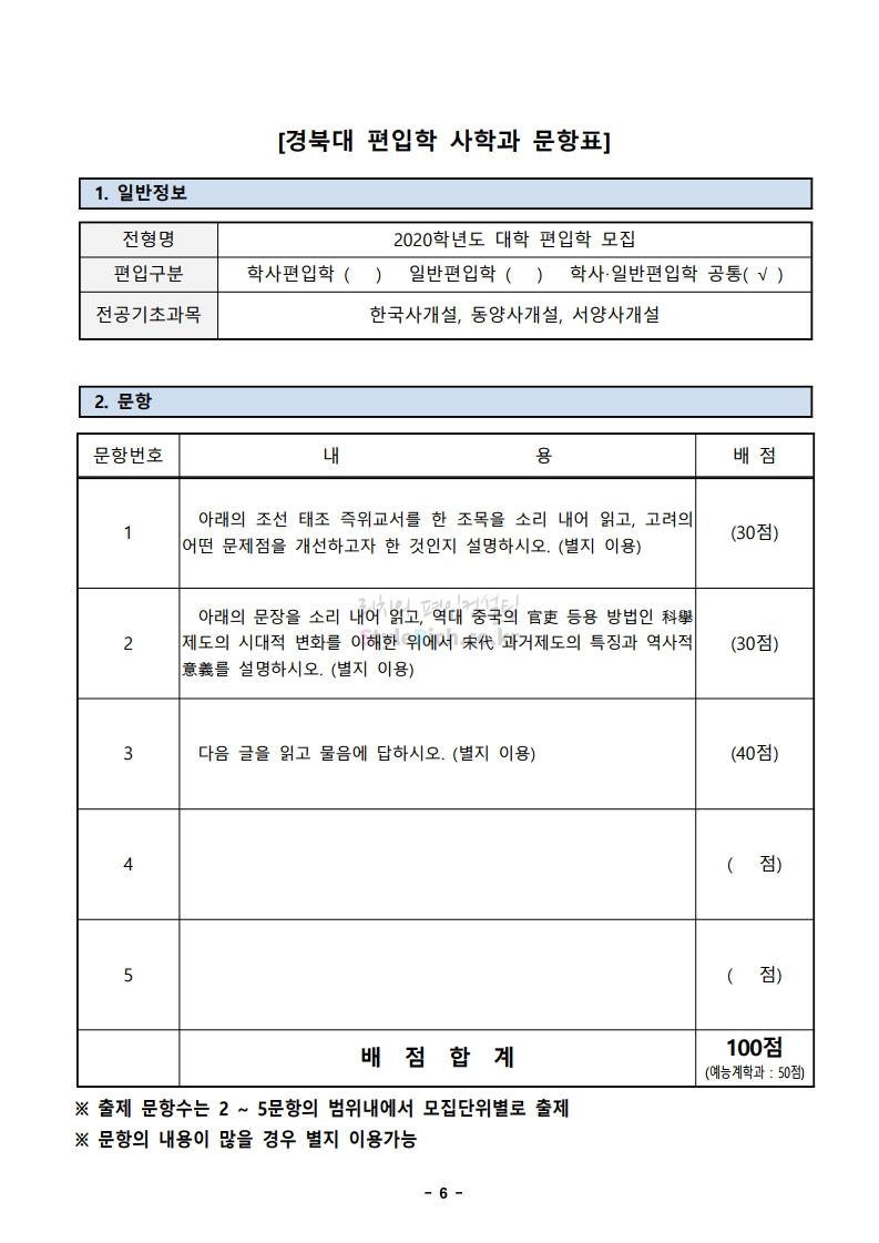 2020학년도 경북대 편입 면접 기출문제가 궁금하다면? 2021.01.07 23:05 편입 기출문제/2020학년도 기출문제 2020학년도 경북대 편입 면접기출문제를 살펴보겠습니다. * 수학과 1번 답안 오류 수정 반영하였습니다. * 기출문제가 없는 학과(부)는 모집하지 않았거나 응시자가 없는 모집단위입니다. <출처: 경북대> [2020학년도 경북대 학부모 설명회] 장학제도 및 취업 프로그램 안내 공유하기 게시글 관리 리치의 편입컨설팅 저작자표시 비영리 변경금지 (새창열림) '편입 기출문제 > 2020학년도 기출문제' 카테고리의 다른 글 2020학년도 영남대 편입 기출문제가 궁금하다면? (0) 2021.01.09 2020학년도 세종대 편입 기출문제가 궁금하다면? (0) 2020.09.27 2020학년도 한국산업기술대 편입 기출문제가 궁금하다면? (0) 2020.09.13 2020학년도 중앙대 편입 기출문제가 궁금하다면? (0) 2020.09.06 2020학년도 명지대 편입 기출문제가 궁금하다면? (0) 2020.08.30 댓글 공유하기 다른 글 댓글 이 글 공유하기 구독하기 구독하기 카카오톡 카카오톡 라인 라인 트위터 트위터 Facebook Facebook 카카오스토리 카카오스토리 밴드 밴드 네이버 블로그 네이버 블로그 Pocket Pocket Evernote Evernote 다른 글 2020학년도 영남대 편입 기출문제가 궁금하다면? 2020학년도 영남대 편입 기출문제가 궁금하다면? 2021.01.09 2020학년도 세종대 편입 기출문제가 궁금하다면? 2020학년도 세종대 편입 기출문제가 궁금하다면? 2020.09.27 2020학년도 한국산업기술대 편입 기출문제가 궁금하다면? 2020학년도 한국산업기술대 편입 기출문제가 궁금하다면? 2020.09.13 2020학년도 중앙대 편입 기출문제가 궁금하다면? 2020학년도 중앙대 편입 기출문제가 궁금하다면? 2020.09.06 다른 글 더 둘러보기