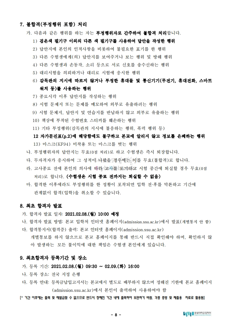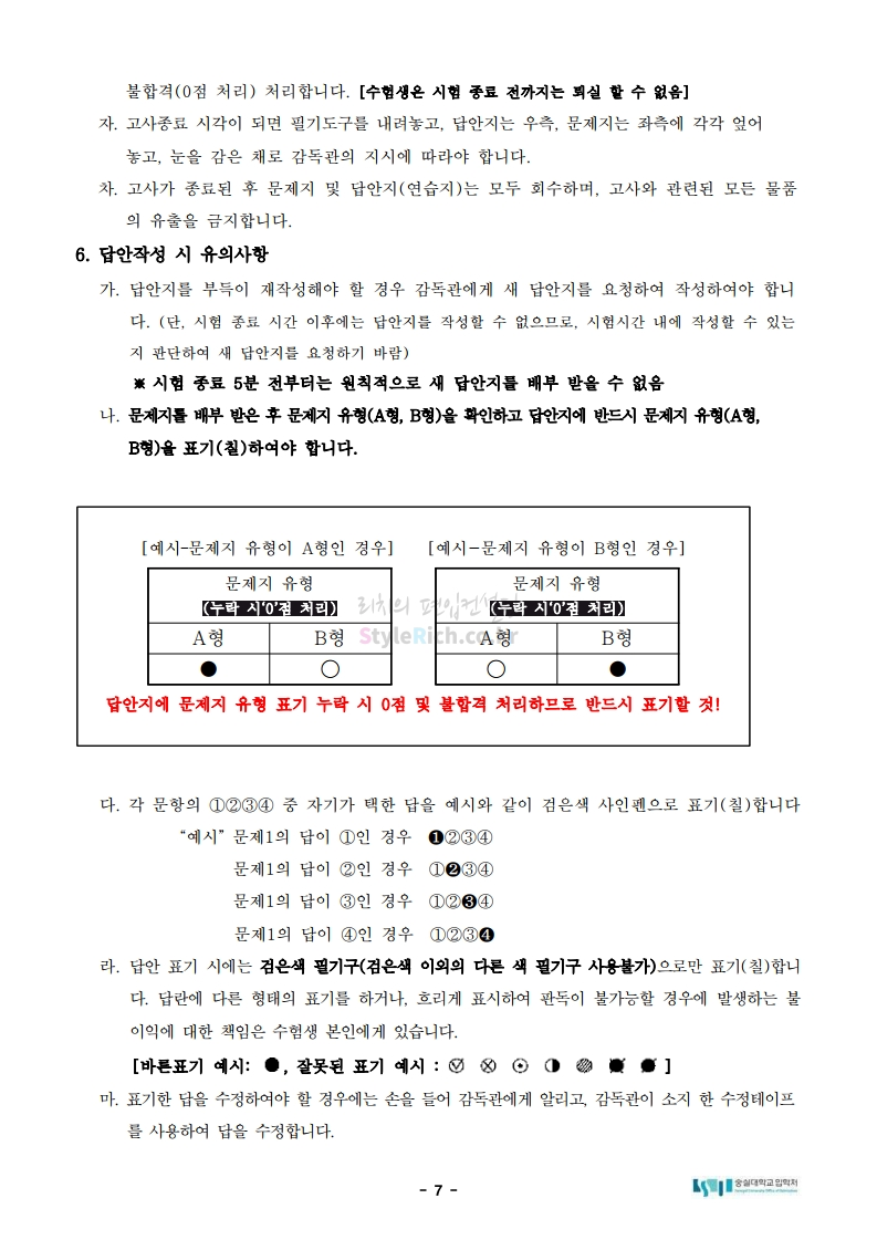 숭실대 편입 2021학년도 필답고사 유의사항 간편하게 보자! 2021.01.07 23:56 편입 유의사항/2021학년도 유의사항 2021학년도 숭실대 편입 필답고사 유의사항을 살펴보겠습니다. * 내용 일부가 변경되거나 오표기가 있을 수 있으므로 시험 전 반드시 숭실대 입학처에서 최종적으로 확인바랍니다. <출처: 숭실대> [골라보SSU] 자취생들! 라지킹침대 감당 가능하시냐구요! EP.02-자취생vs통학생 공유하기 게시글 관리 리치의 편입컨설팅 저작자표시 비영리 변경금지 (새창열림) '편입 유의사항 > 2021학년도 유의사항' 카테고리의 다른 글 한국항공대 편입 2021학년도 필기고사 안내사항 간편하게 보자! (0) 2021.01.08 인하대 편입 2021학년도 필기고사 유의사항 간편하게 보자! (0) 2021.01.08 서울과학기술대 편입 2021학년도 필기고사 유의사항 간편하게 보자! (0) 2021.01.07 가천대 편입 2021학년도 필기고사 유의사항 간편하게 보자! (0) 2021.01.01 세종대 편입 2021학년도 필기고사 유의사항 간편하게 보자! (0) 2020.12.30 댓글 공유하기 다른 글 댓글 이 글 공유하기 구독하기 구독하기 카카오톡 카카오톡 라인 라인 트위터 트위터 Facebook Facebook 카카오스토리 카카오스토리 밴드 밴드 네이버 블로그 네이버 블로그 Pocket Pocket Evernote Evernote 다른 글 한국항공대 편입 2021학년도 필기고사 안내사항 간편하게 보자! 한국항공대 편입 2021학년도 필기고사 안내사항 간편하게 보자! 2021.01.08 인하대 편입 2021학년도 필기고사 유의사항 간편하게 보자! 인하대 편입 2021학년도 필기고사 유의사항 간편하게 보자! 2021.01.08 서울과학기술대 편입 2021학년도 필기고사 유의사항 간편하게 보자! 서울과학기술대 편입 2021학년도 필기고사 유의사항 간편하게 보자! 2021.01.07 가천대 편입 2021학년도 필기고사 유의사항 간편하게 보자! 가천대 편입 2021학년도 필기고사 유의사항 간편하게 보자! 2021.01.01 다른 글 더 둘러보기