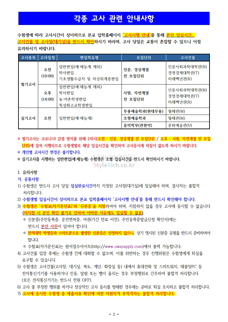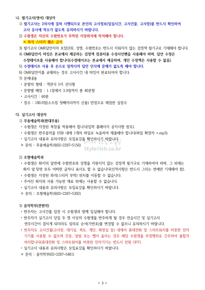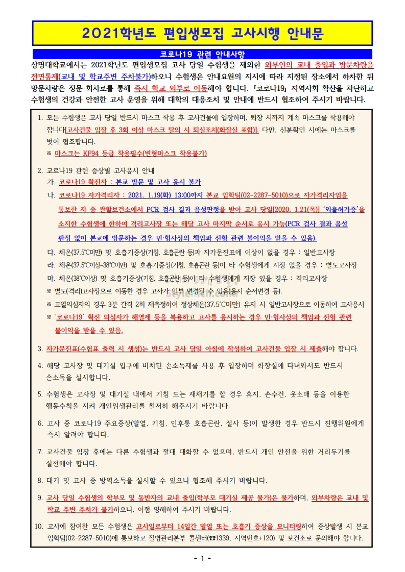 상명대 편입 2021학년도 필기고사 안내사항 간편하게 보자! 2021.01.16 20:27 편입 유의사항/2021학년도 유의사항 2021학년도 상명대 편입 필기고사 안내사항을 살펴보겠습니다. * 내용의 일부가 변경되거나 오표기가 있을 수 있으므로 시험 전 반드시 상명대 입학처에 최종적으로 확인바랍니다. <출처: 상명대> [상명대학교 학과털이] Ep.2 미술학부를 소개할게! 공유하기 게시글 관리 리치의 편입컨설팅 저작자표시 비영리 변경금지 (새창열림) '편입 유의사항 > 2021학년도 유의사항' 카테고리의 다른 글 서울여대 편입 2021학년도 영어고사 시간안내 간편하게 보자! (0) 2021.01.23 서경대 편입 2021학년도 필기고사 유의사항 간편하게 보자! (0) 2021.01.16 서울시립대 편입 2021학년도 전공적성 안내사항 간편하게 보자! (0) 2021.01.16 한성대 편입 2021학년도 필기시험 안내사항 간편하게 보자! (0) 2021.01.16 아주대 편입 2021학년도 필기시험 유의사항 간편하게 보자! (0) 2021.01.16 댓글 공유하기 다른 글 댓글 이 글 공유하기 구독하기 구독하기 카카오톡 카카오톡 라인 라인 트위터 트위터 Facebook Facebook 카카오스토리 카카오스토리 밴드 밴드 네이버 블로그 네이버 블로그 Pocket Pocket Evernote Evernote 다른 글 서울여대 편입 2021학년도 영어고사 시간안내 간편하게 보자! 서울여대 편입 2021학년도 영어고사 시간안내 간편하게 보자! 2021.01.23 서경대 편입 2021학년도 필기고사 유의사항 간편하게 보자! 서경대 편입 2021학년도 필기고사 유의사항 간편하게 보자! 2021.01.16 서울시립대 편입 2021학년도 전공적성 안내사항 간편하게 보자! 서울시립대 편입 2021학년도 전공적성 안내사항 간편하게 보자! 2021.01.16 한성대 편입 2021학년도 필기시험 안내사항 간편하게 보자! 한성대 편입 2021학년도 필기시험 안내사항 간편하게 보자! 2021.01.16 다른 글 더 둘러보기