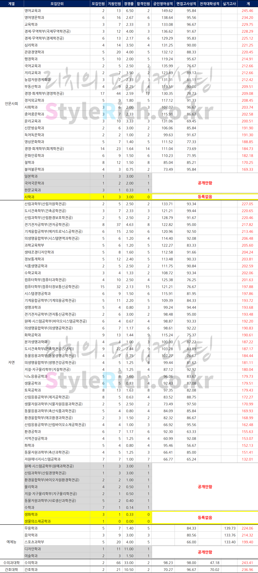 * 합격자가 1명이하인 모집단위는 성적을 공개하지 않음
