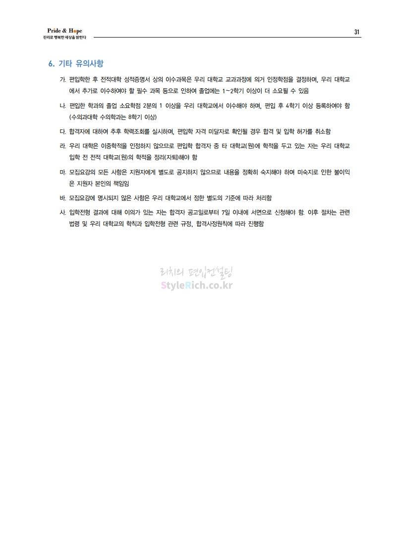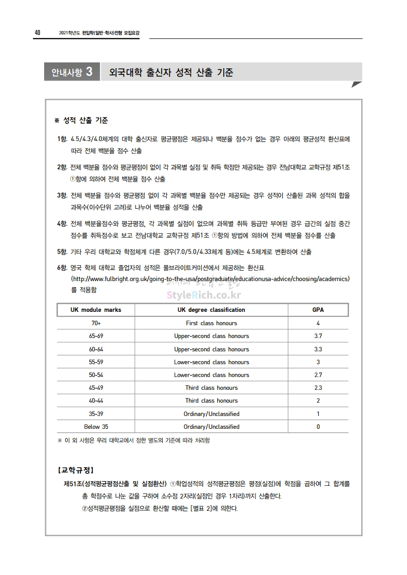 전남대 편입 2021학년도 모집요강 간편하게 보자! 2021.03.07 11:40 편입 모집요강/2021학년도 모집요강 2021학년도 전남대 편입 모집요강(2020.12.03 기준)을 간편하게 확인하세요. PC나 모바일에서 이미지를 클릭(터치) 후 이미지의 좌우측을 클릭(터치)하면 모집요강의 순서를 앞뒤로 넘길 수 있습니다. 좌측 클릭(터치)는 이전 페이지, 우측 클릭(터치)는 다음 페이지입니다. 2021학년도 전남대 편입 모집요강 다운받기 ☆ 2021학년도 편입학전형 모집요강-웹용-표준.pdf 3.44MB <출처: 전남대> [전남대학교]2021학년도 1학기 수업 방식이 궁금해요 공유하기 게시글 관리 리치의 편입컨설팅 저작자표시 비영리 변경금지 (새창열림) '편입 모집요강 > 2021학년도 모집요강' 카테고리의 다른 글 제주대 편입 2021학년도 모집요강 간편하게 보자! (0) 2021.03.07 전북대 편입 2021학년도 모집요강 간편하게 보자! (0) 2021.03.07 부산대 편입 2021학년도 모집요강 간편하게 보자! (0) 2021.03.07 경상대 편입 2021학년도 모집요강 간편하게 보자! (0) 2021.03.06 경북대 편입 2021학년도 모집요강 간편하게 보자! (0) 2021.03.04 댓글 공유하기 다른 글 댓글 이 글 공유하기 구독하기 구독하기 카카오톡 카카오톡 라인 라인 트위터 트위터 Facebook Facebook 카카오스토리 카카오스토리 밴드 밴드 네이버 블로그 네이버 블로그 Pocket Pocket Evernote Evernote 다른 글 제주대 편입 2021학년도 모집요강 간편하게 보자! 제주대 편입 2021학년도 모집요강 간편하게 보자! 2021.03.07 전북대 편입 2021학년도 모집요강 간편하게 보자! 전북대 편입 2021학년도 모집요강 간편하게 보자! 2021.03.07 부산대 편입 2021학년도 모집요강 간편하게 보자! 부산대 편입 2021학년도 모집요강 간편하게 보자! 2021.03.07 경상대 편입 2021학년도 모집요강 간편하게 보자! 경상대 편입 2021학년도 모집요강 간편하게 보자! 2021.03.06 다른 글 더 둘러보기