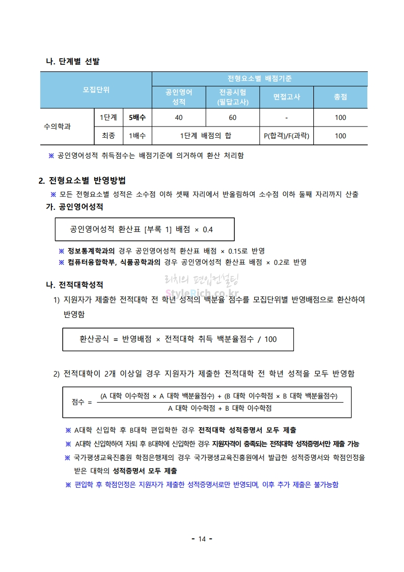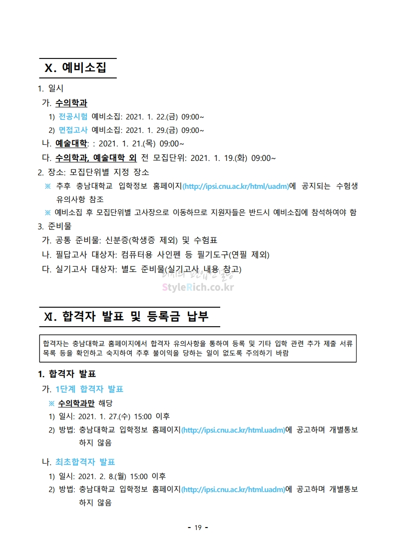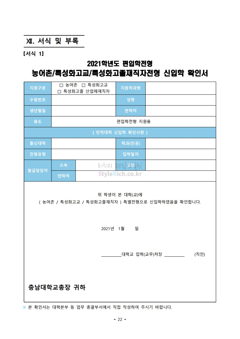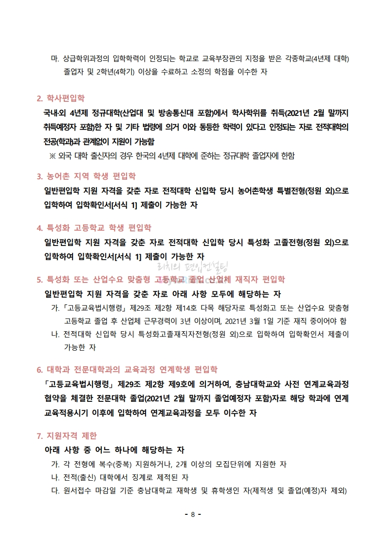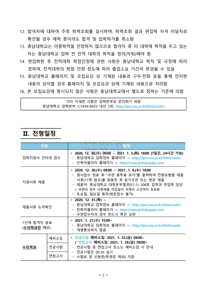 충남대 편입 2021학년도 모집요강 간편하게 보자! 2021.03.08 22:07 편입 모집요강/2021학년도 모집요강 2021학년도 충남대 편입 모집요강(2020.12.11 기준)을 간편하게 확인하세요. PC나 모바일에서 이미지를 클릭(터치) 후 이미지의 좌우측을 클릭(터치)하면 모집요강의 순서를 앞뒤로 넘길 수 있습니다. 좌측 클릭(터치)는 이전 페이지, 우측 클릭(터치)는 다음 페이지입니다. 2021학년도 충남대 편입 모집요강 다운받기 2021학년도 편입학전형 모집요강.pdf 2.24MB <출처: 충남대> [충남대학교 Chungnam National University] 2021 충남대학교 홍보영상 Short ver. | CNU Makes the Future 공유하기 게시글 관리 리치의 편입컨설팅 저작자표시 비영리 변경금지 (새창열림) '편입 모집요강 > 2021학년도 모집요강' 카테고리의 다른 글 용인대 편입 2021학년도 모집요강 간편하게 보자! (0) 2021.05.09 충북대 편입 2021학년도 모집요강 간편하게 보자! (0) 2021.03.09 제주대 편입 2021학년도 모집요강 간편하게 보자! (0) 2021.03.07 전북대 편입 2021학년도 모집요강 간편하게 보자! (0) 2021.03.07 전남대 편입 2021학년도 모집요강 간편하게 보자! (0) 2021.03.07 댓글 공유하기 다른 글 댓글 이 글 공유하기 구독하기 구독하기 카카오톡 카카오톡 라인 라인 트위터 트위터 Facebook Facebook 카카오스토리 카카오스토리 밴드 밴드 네이버 블로그 네이버 블로그 Pocket Pocket Evernote Evernote 다른 글 용인대 편입 2021학년도 모집요강 간편하게 보자! 용인대 편입 2021학년도 모집요강 간편하게 보자! 2021.05.09 충북대 편입 2021학년도 모집요강 간편하게 보자! 충북대 편입 2021학년도 모집요강 간편하게 보자! 2021.03.09 제주대 편입 2021학년도 모집요강 간편하게 보자! 제주대 편입 2021학년도 모집요강 간편하게 보자! 2021.03.07 전북대 편입 2021학년도 모집요강 간편하게 보자! 전북대 편입 2021학년도 모집요강 간편하게 보자! 2021.03.07 다른 글 더 둘러보기