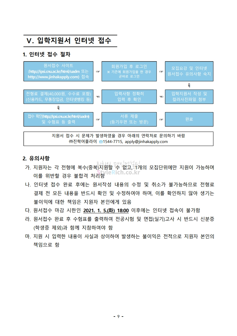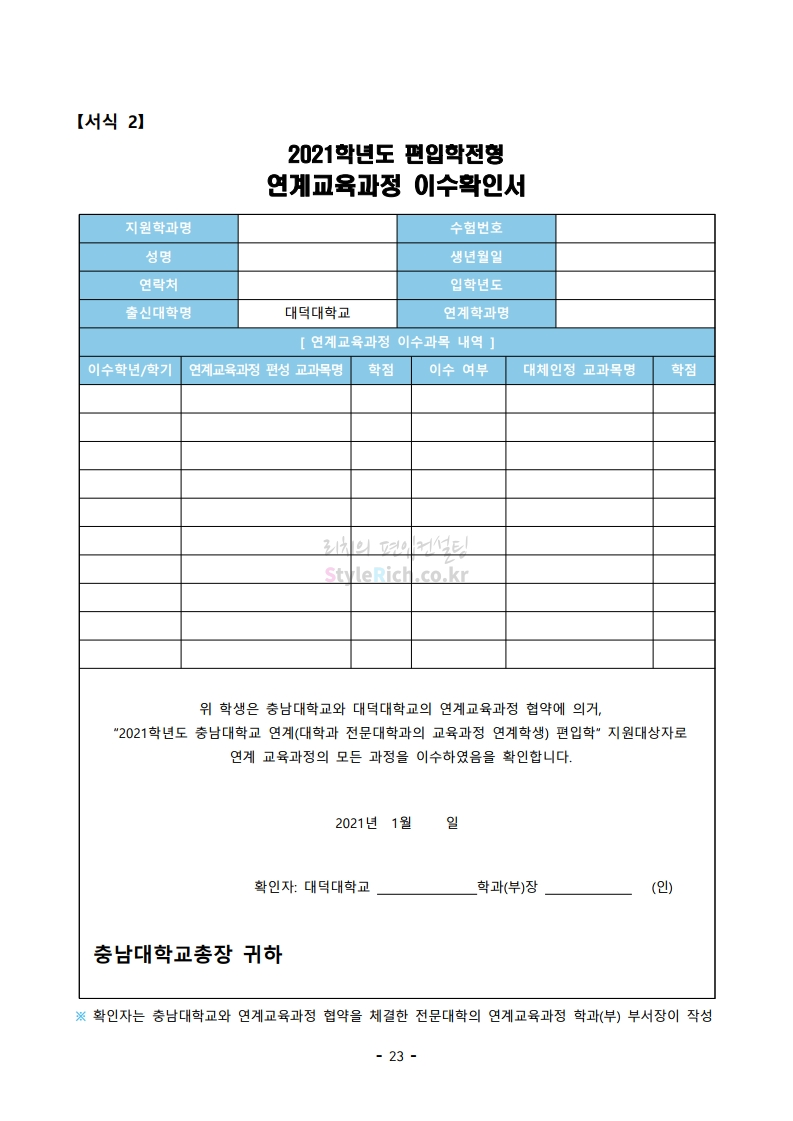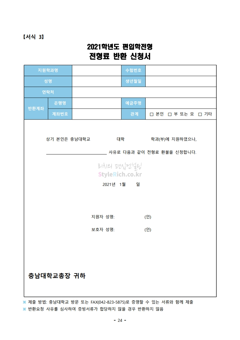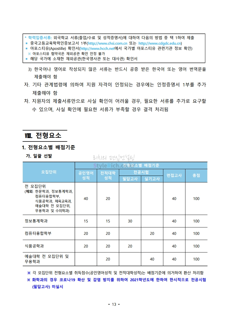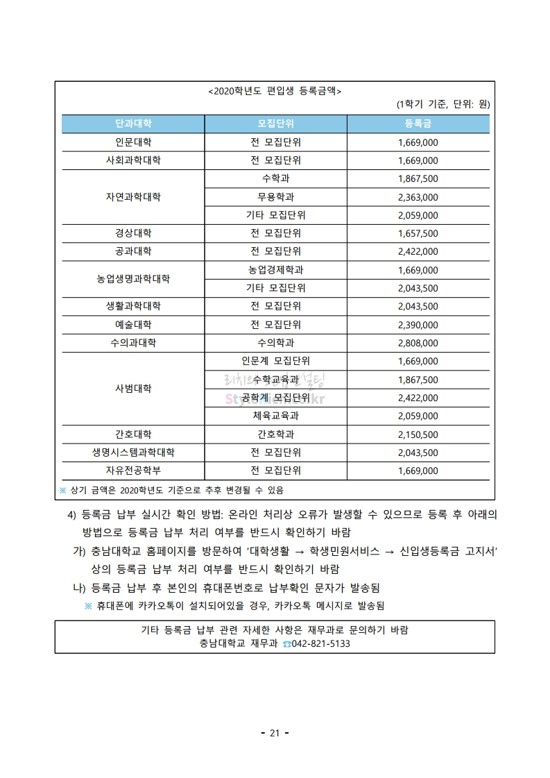 충남대 편입 2021학년도 모집요강 간편하게 보자! 2021.03.08 22:07 편입 모집요강/2021학년도 모집요강 2021학년도 충남대 편입 모집요강(2020.12.11 기준)을 간편하게 확인하세요. PC나 모바일에서 이미지를 클릭(터치) 후 이미지의 좌우측을 클릭(터치)하면 모집요강의 순서를 앞뒤로 넘길 수 있습니다. 좌측 클릭(터치)는 이전 페이지, 우측 클릭(터치)는 다음 페이지입니다. 2021학년도 충남대 편입 모집요강 다운받기 2021학년도 편입학전형 모집요강.pdf 2.24MB <출처: 충남대> [충남대학교 Chungnam National University] 2021 충남대학교 홍보영상 Short ver. | CNU Makes the Future 공유하기 게시글 관리 리치의 편입컨설팅 저작자표시 비영리 변경금지 (새창열림) '편입 모집요강 > 2021학년도 모집요강' 카테고리의 다른 글 용인대 편입 2021학년도 모집요강 간편하게 보자! (0) 2021.05.09 충북대 편입 2021학년도 모집요강 간편하게 보자! (0) 2021.03.09 제주대 편입 2021학년도 모집요강 간편하게 보자! (0) 2021.03.07 전북대 편입 2021학년도 모집요강 간편하게 보자! (0) 2021.03.07 전남대 편입 2021학년도 모집요강 간편하게 보자! (0) 2021.03.07 댓글 공유하기 다른 글 댓글 이 글 공유하기 구독하기 구독하기 카카오톡 카카오톡 라인 라인 트위터 트위터 Facebook Facebook 카카오스토리 카카오스토리 밴드 밴드 네이버 블로그 네이버 블로그 Pocket Pocket Evernote Evernote 다른 글 용인대 편입 2021학년도 모집요강 간편하게 보자! 용인대 편입 2021학년도 모집요강 간편하게 보자! 2021.05.09 충북대 편입 2021학년도 모집요강 간편하게 보자! 충북대 편입 2021학년도 모집요강 간편하게 보자! 2021.03.09 제주대 편입 2021학년도 모집요강 간편하게 보자! 제주대 편입 2021학년도 모집요강 간편하게 보자! 2021.03.07 전북대 편입 2021학년도 모집요강 간편하게 보자! 전북대 편입 2021학년도 모집요강 간편하게 보자! 2021.03.07 다른 글 더 둘러보기