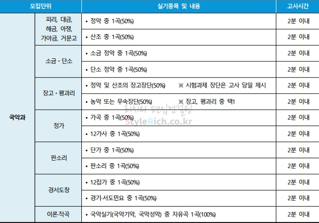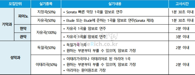 2021학년도 단국대(죽전) 편입 음악대학 실기고사의 모집단위별 실기종목입니다.