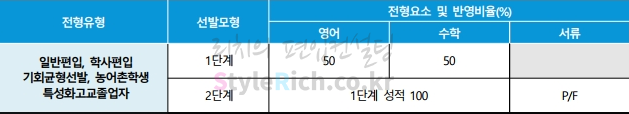 2021학년도 단국대(죽전) 자연계열의 일반편입, 학사편입, 기회균형선발편입, 농어촌학생편입, 특성화고교졸업자편입은 1단계 영어 50, 수학 50, 2단계 1단계성적 100, 서류 P/F입니다.