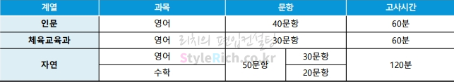 2021학년도 단국대(죽전) 편입 인문계 필기고사는 영어 40문항/60분, 객관식 4지선다형, 100점 만점에 문항마다 배점이 다릅니다. 체육교육과 필기고사는 30문항/60분, 객관식 4지선다형, 100점 만점에 문항마다 배점이 다릅니다. 자연계 필기고사는 50문항(영어30, 수학20)/120분, 객관식 4지선다형, 200점 만점에 영어는 문항마다 다르고, 수학은 문항당 5점입니다.
