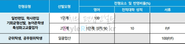 2021학년도 단국대(죽전) 자연계열의 일반편입, 학사편입, 기회균형선발편입, 농어촌학생편입, 특성화고교졸업자편입은 1단계 영어 50, 수학 50, 2단계 1단계성적 100, 서류 P/F입니다.