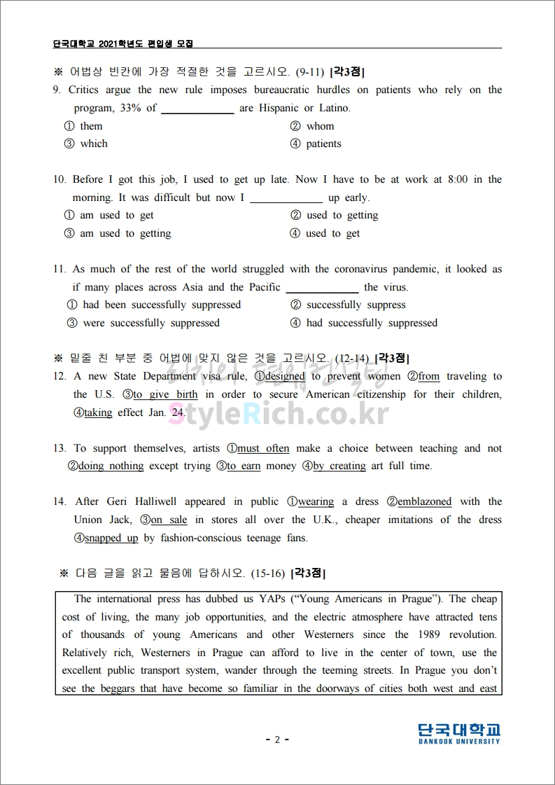 2021학년도 단국대(천안) 편입 기출문제가 궁금하다면?