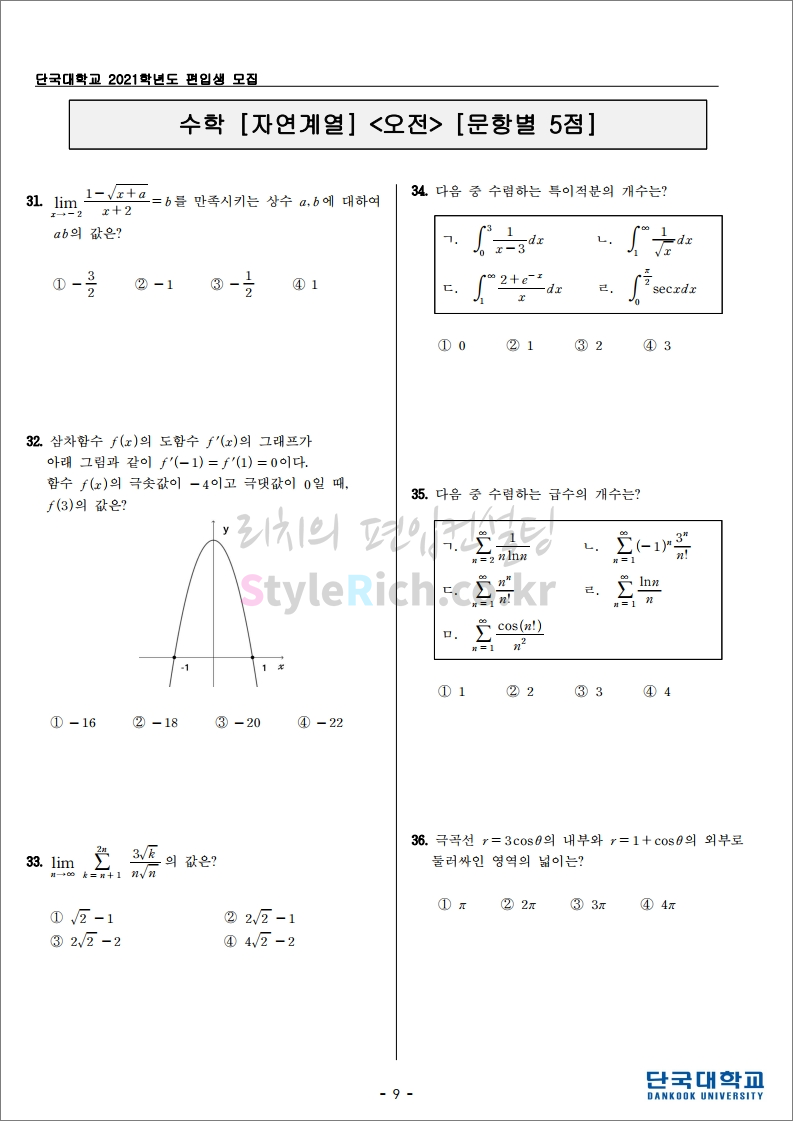 2021학년도 단국대(죽전) 편입 기출문제를 살펴보겠습니다.
