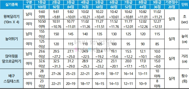 2021학년도 단국대(죽전) 편입 체육교육과 실기고사 실기종목별 채점기준입니다.
