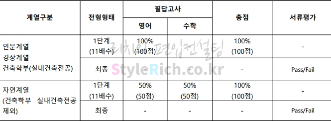 2021학년도 숭실대 편입 인문계열, 경상계열, 건축학부(실내건축전공)은 1단계 영어 100%, 최종 서류평가 P/F이고, 자연계열(건축학부 실내건축전공 제외)는 1단계 영어 50%, 수학 50%, 최종 서류평가 P/F입니다.