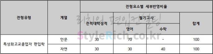 2021학년도 인하대 특성화고교졸업자편입에서 인문은 영어 70, 전적대 성적 30이고, 자연은 영어 30, 수학 40, 전적대 성적 30입니다.