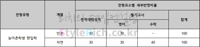 2021학년도 인하대 농어촌학생편입에서 인문은 영어 70, 전적대 성적 30이고, 자연은 영어 30, 수학 40, 전적대 성적 30입니다.