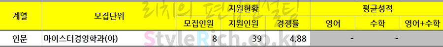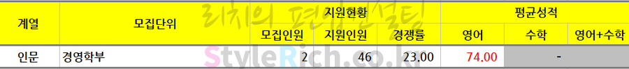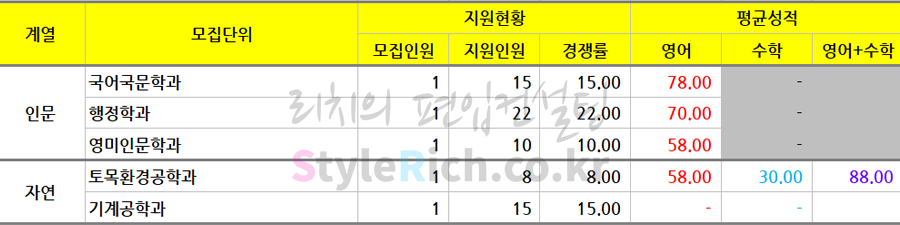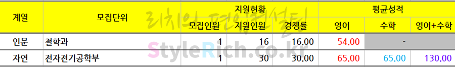 * 필기고사 합격점수(영어, 수학)는 최종등록자(입학생)의 평균성적입니다.