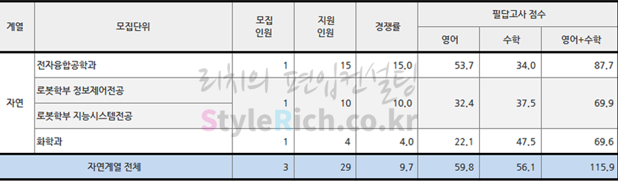 * 지원자가 없는 학과: 전기공학과, 미디어커뮤니케이션학부 언론정보전공, 행정학과
