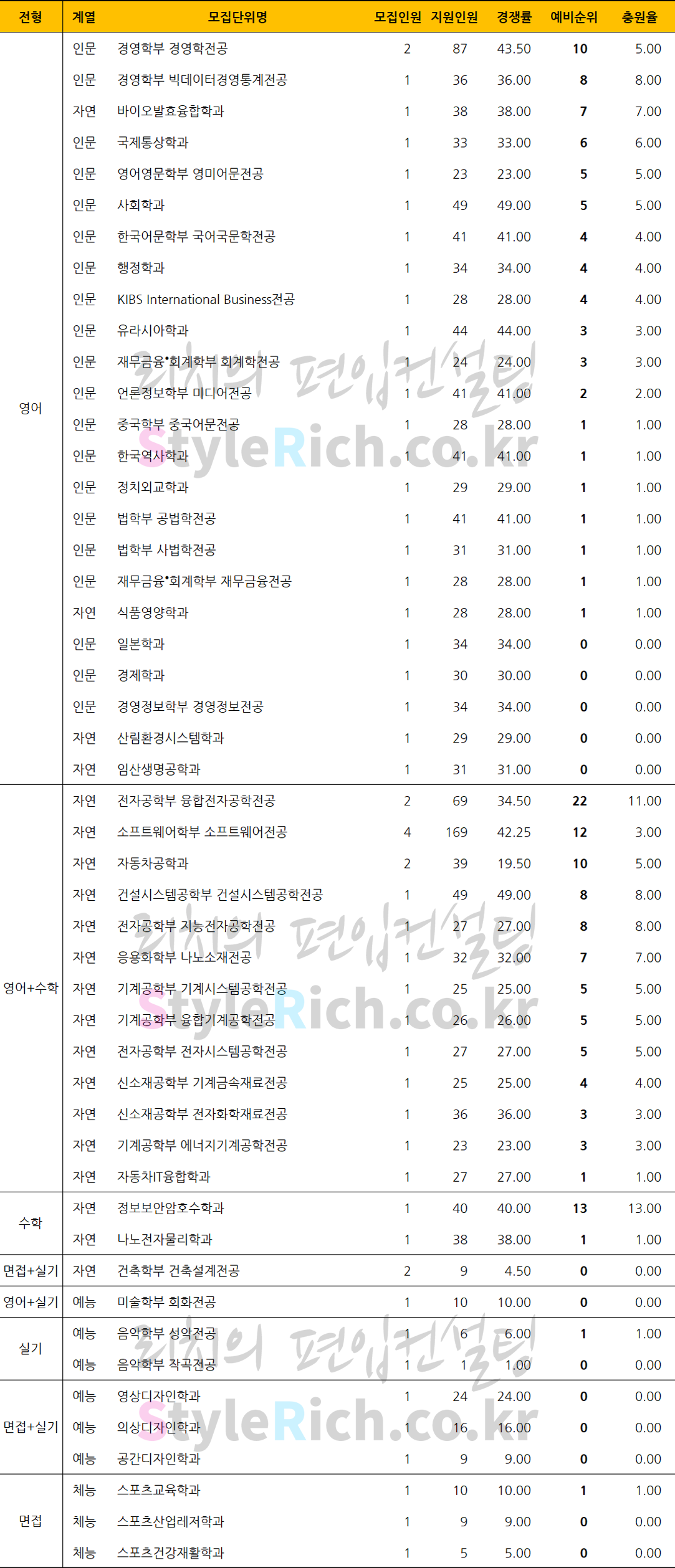영어+수학전형 추가합격 TOP3 학과: 전자공학부 융합전자공학전공, 소프트웨어학부 소프트웨어전공, 자동차공학과