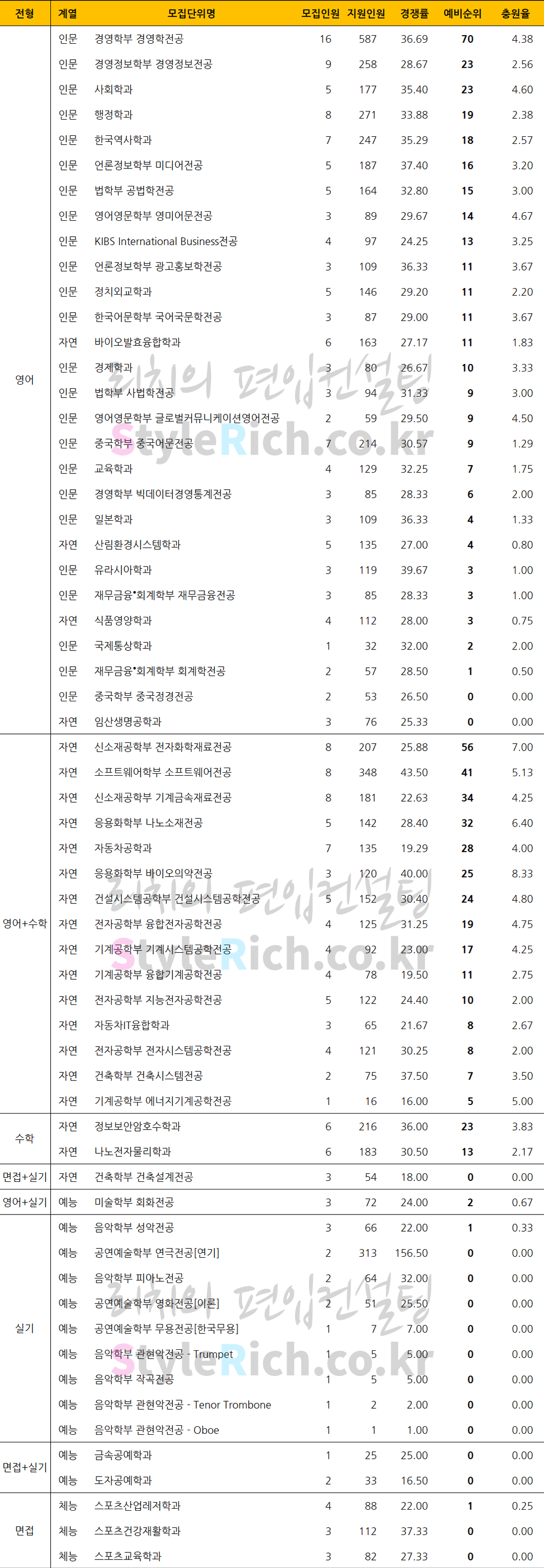영어전형 추가합격 TOP3 학과: 경영학부 경영학전공, 경영정보학부 경영정보전공, 사회학과