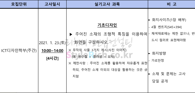 2021학년도 한성대 ICT디자인학부(주간) 실기고사는 기초 디자인으로 4시간동안 진행합니다.