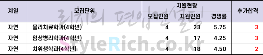 * 임상병리학, 물리치료학과, 치위생학과, 간호학과는 지원자격에 제한이 있으므로 별도로 분류