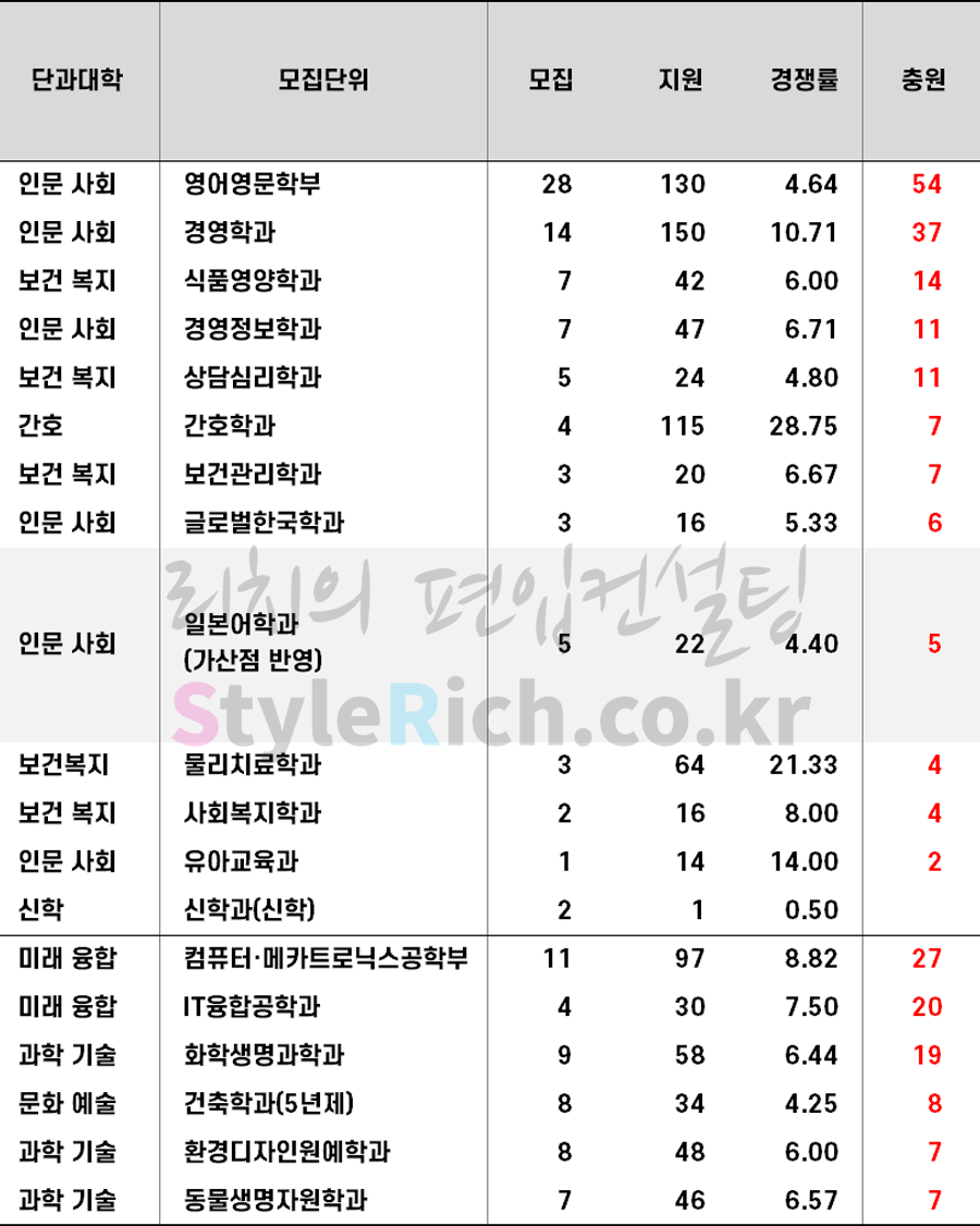 인문사회(보건 포함) 추가합격 TOP3 학과: 영어영문학부, 경영학과, 식품영양학과