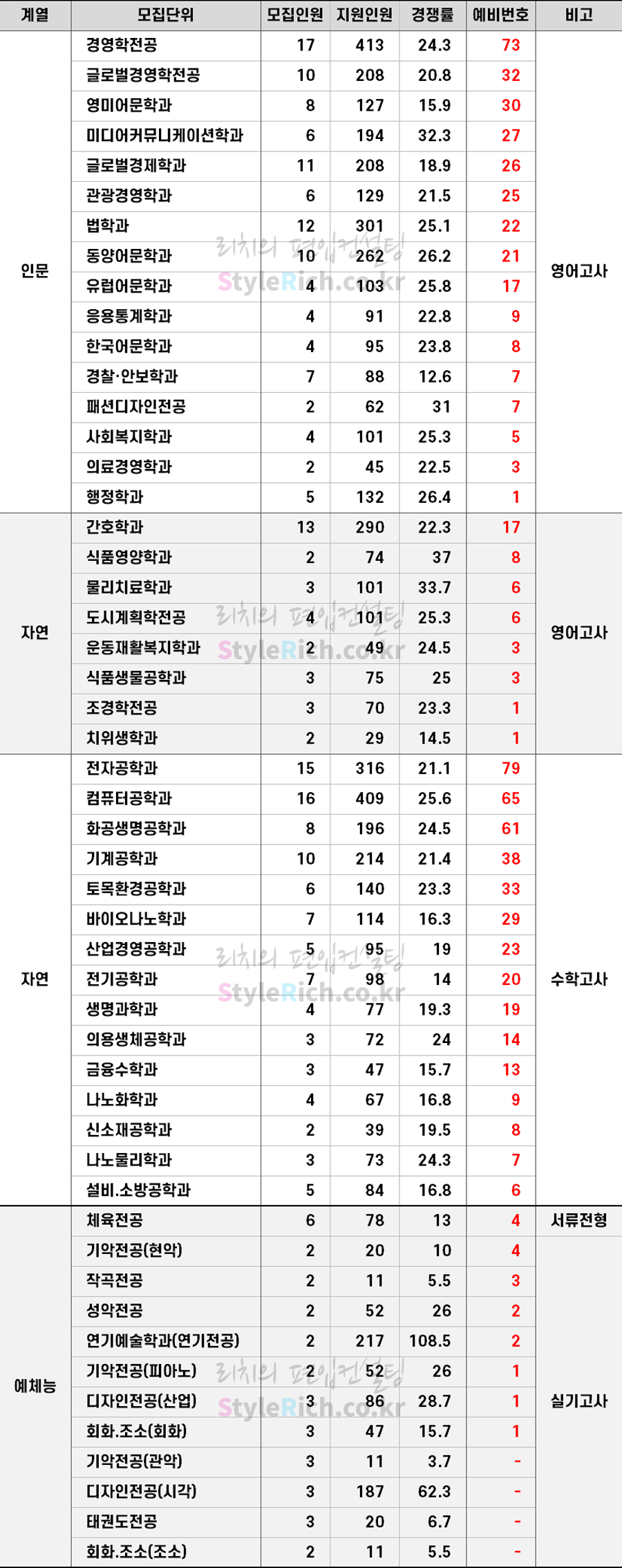 인문(영어) 추가합격 예비번호 TOP3 학과: 경영학전공, 글로벌경영학전공, 영미어문학과