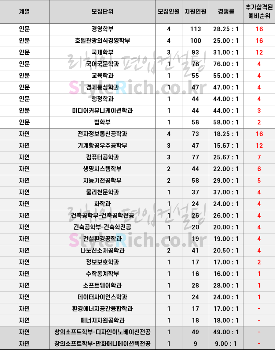 인문 추가합격 TOP3 학과: 경영학부, 호텔관광외식경영학부, 국제학부