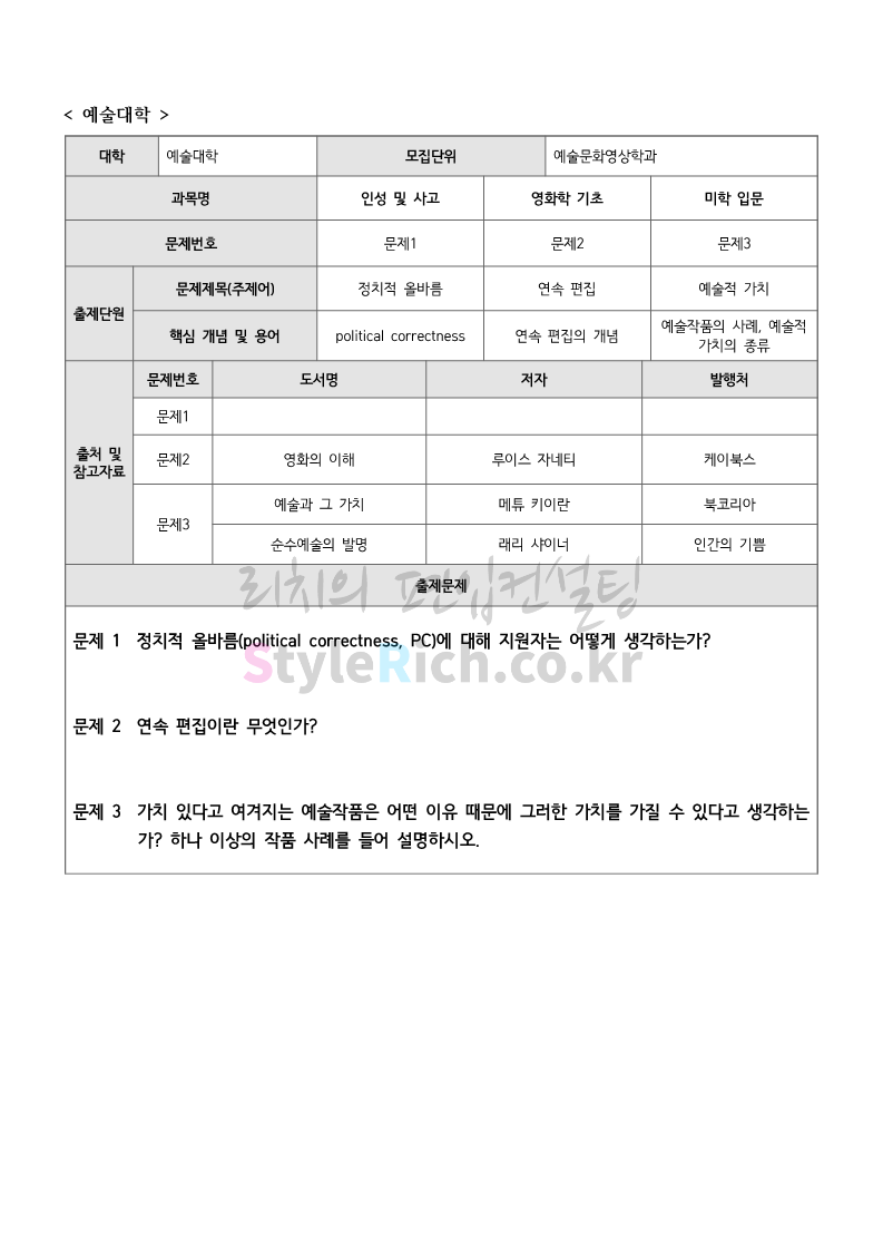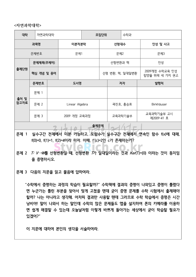 2021학년도 부산대 편입 기출문제가 궁금하다면? 2021.11.27 18:02 편입 기출문제/2021학년도 기출문제 2021학년도 부산대 편입 기출문제를 살펴보겠습니다. * 해당 이미지는 일부학과의 기출문제 일부이며, 전체 내용은 아래 링크를 통해 확인 하세요. <출처: 부산대> 2021학년도 부산대 편입 기출문제 다운받기 부산대학교 LINC+ 4차 산업혁명 혁신선도대학 홍보영상 공유하기 게시글 관리 리치의 편입컨설팅 저작자표시 비영리 변경금지 (새창열림) '편입 기출문제 > 2021학년도 기출문제' 카테고리의 다른 글 2021학년도 제주대 편입 면접 기출문제가 궁금하다면? (0) 2021.11.28 2021학년도 강원대 편입 면접 기출문제가 궁금하다면? (0) 2021.11.28 2021학년도 경북대 편입 면접 기출문제가 궁금하다면? (0) 2021.11.24 2021학년도 영남대 편입 기출문제가 궁금하다면? (0) 2021.11.24 2021학년도 광운대 편입 기출문제가 궁금하다면? (0) 2021.10.31 댓글 공유하기 다른 글 댓글 이 글 공유하기 구독하기 구독하기 카카오톡 카카오톡 라인 라인 트위터 트위터 Facebook Facebook 카카오스토리 카카오스토리 밴드 밴드 네이버 블로그 네이버 블로그 Pocket Pocket Evernote Evernote 다른 글 2021학년도 제주대 편입 면접 기출문제가 궁금하다면? 2021학년도 제주대 편입 면접 기출문제가 궁금하다면? 2021.11.28 2021학년도 강원대 편입 면접 기출문제가 궁금하다면? 2021학년도 강원대 편입 면접 기출문제가 궁금하다면? 2021.11.28 2021학년도 경북대 편입 면접 기출문제가 궁금하다면? 2021학년도 경북대 편입 면접 기출문제가 궁금하다면? 2021.11.24 2021학년도 영남대 편입 기출문제가 궁금하다면? 2021학년도 영남대 편입 기출문제가 궁금하다면? 2021.11.24 다른 글 더 둘러보기