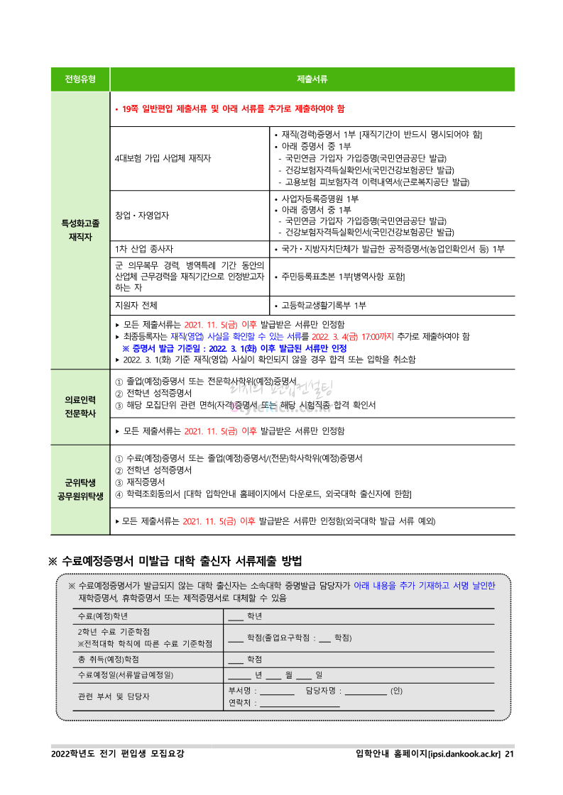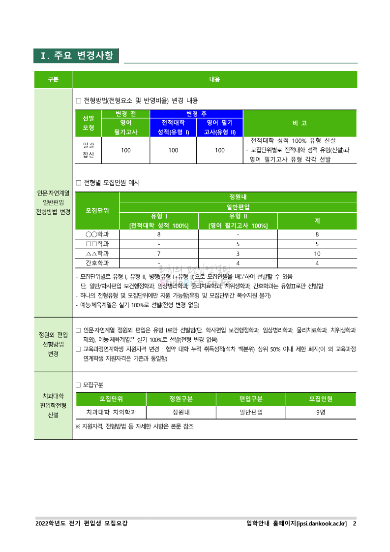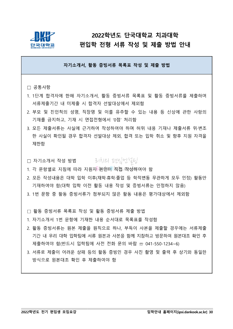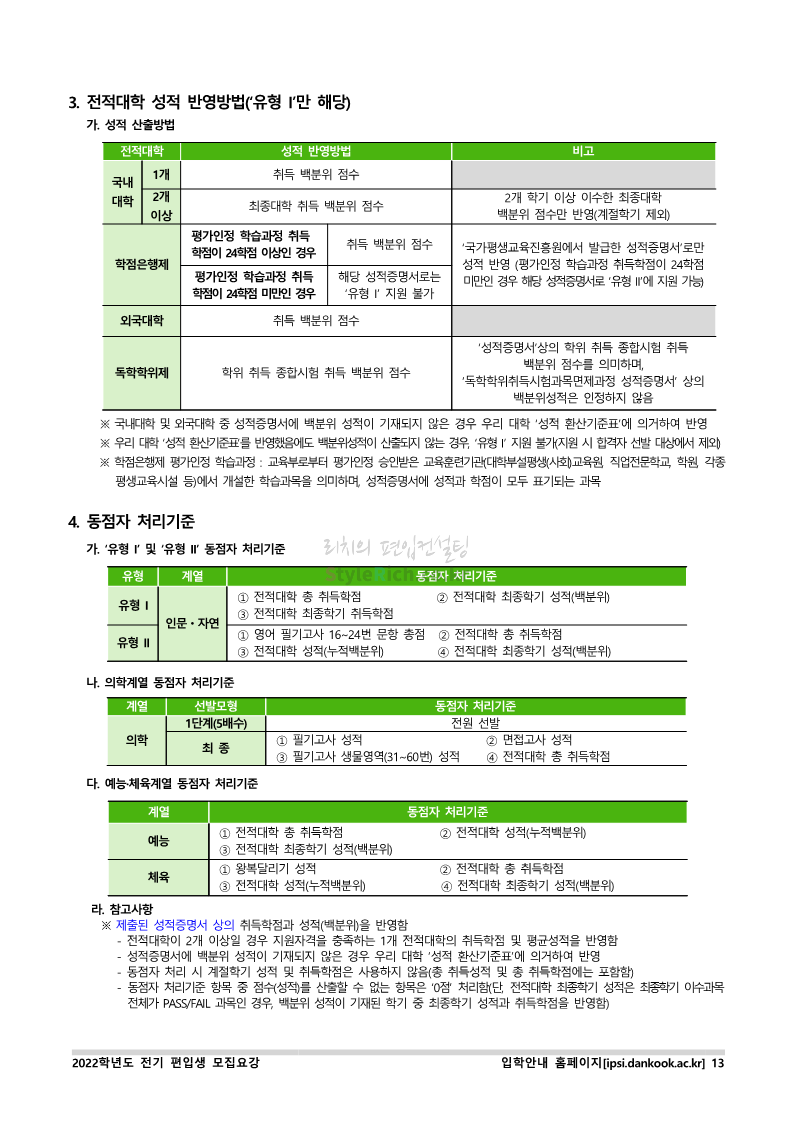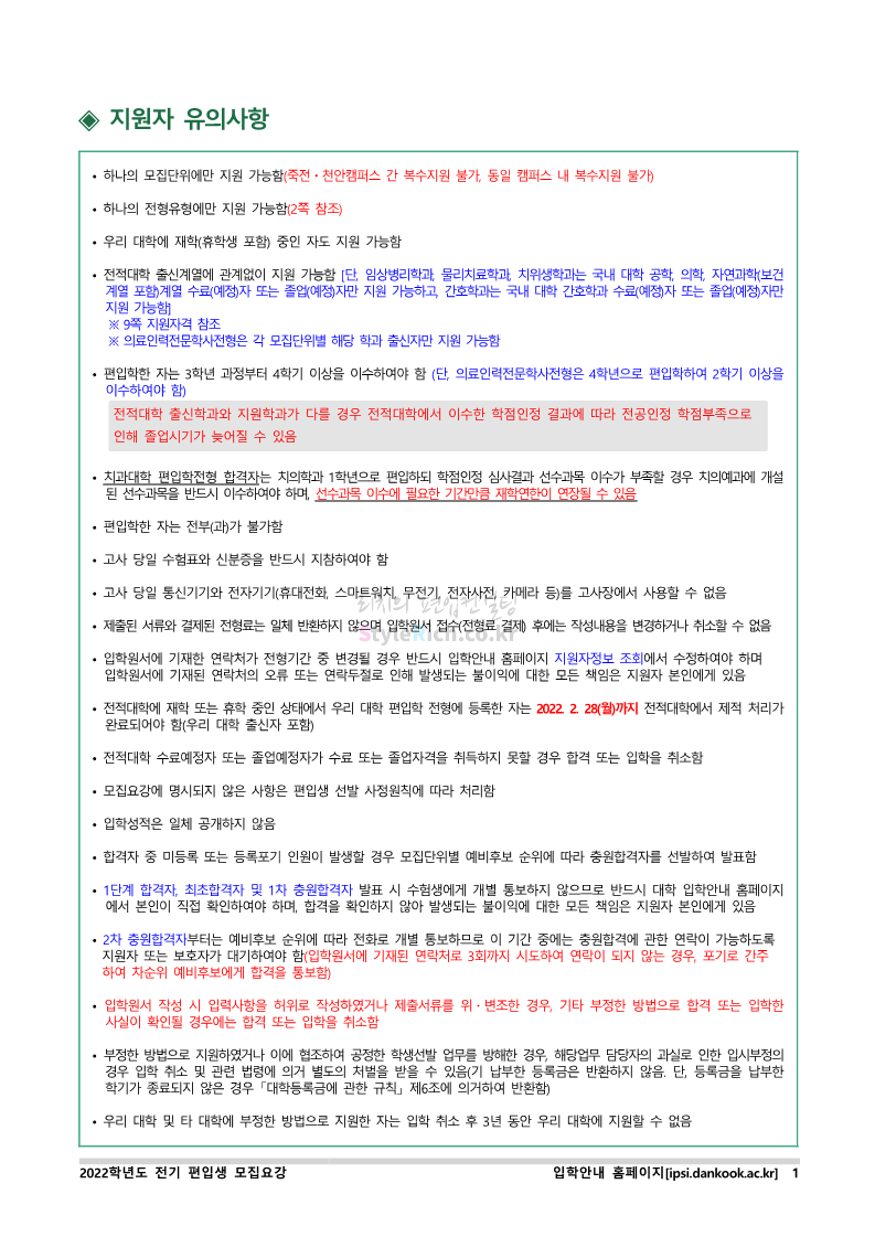 단국대(천안) 편입 2022학년도 모집요강 간편하게 보자! 2021.11.28 17:50 편입 모집요강/2022학년도 모집요강 2022학년도 단국대(천안) 모집요강(2021.11.26 기준)을 간편하게 확인하세요. * 최종 모집요강 발표 이후에도 내용의 일부가 변경될 수 있으니 지원 전 반드시 단국대 입학처의 모집요강을 확인 바랍니다. 2022학년도 단국대(천안) 편입 모집요강 다운받기 <출처: 단국대> 단꿀 라이브 19회 : "단꿀블렌드와 함께 따뜻한 겨울나기" 특집 공유하기 게시글 관리 리치의 편입컨설팅 저작자표시 비영리 변경금지 (새창열림) '편입 모집요강 > 2022학년도 모집요강' 카테고리의 다른 글 가천대 편입 2022학년도 모집요강 간편하게 보자 (0) 2021.11.29 서울대 편입 2022학년도 모집요강 간편하게 보자! (0) 2021.11.28 단국대(죽전) 편입 2022학년도 모집요강 간편하게 보자! (0) 2021.11.28 국민대 편입 2022학년도 모집요강 간편하게 보자! (0) 2021.11.28 고려대 편입 2022학년도 필기고사 출제범위 및 참고도서를 알아보자! (0) 2021.11.07 댓글 공유하기 다른 글 댓글 이 글 공유하기 구독하기 구독하기 카카오톡 카카오톡 라인 라인 트위터 트위터 Facebook Facebook 카카오스토리 카카오스토리 밴드 밴드 네이버 블로그 네이버 블로그 Pocket Pocket Evernote Evernote 다른 글 가천대 편입 2022학년도 모집요강 간편하게 보자 가천대 편입 2022학년도 모집요강 간편하게 보자 2021.11.29 서울대 편입 2022학년도 모집요강 간편하게 보자! 서울대 편입 2022학년도 모집요강 간편하게 보자! 2021.11.28 단국대(죽전) 편입 2022학년도 모집요강 간편하게 보자! 단국대(죽전) 편입 2022학년도 모집요강 간편하게 보자! 2021.11.28 국민대 편입 2022학년도 모집요강 간편하게 보자! 국민대 편입 2022학년도 모집요강 간편하게 보자! 2021.11.28 다른 글 더 둘러보기