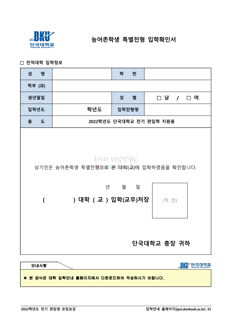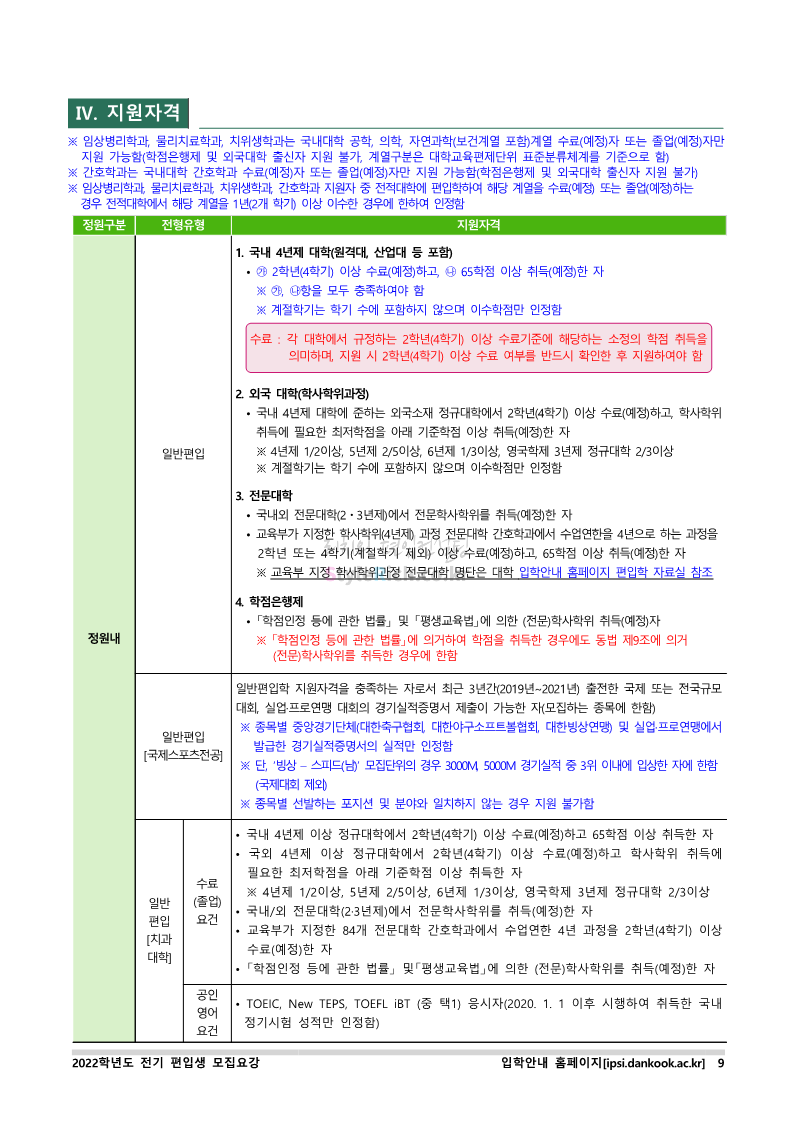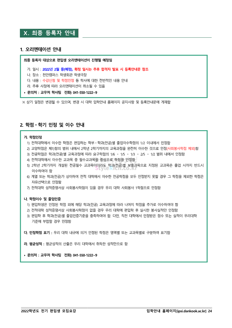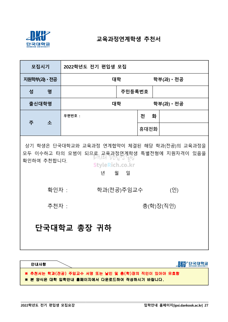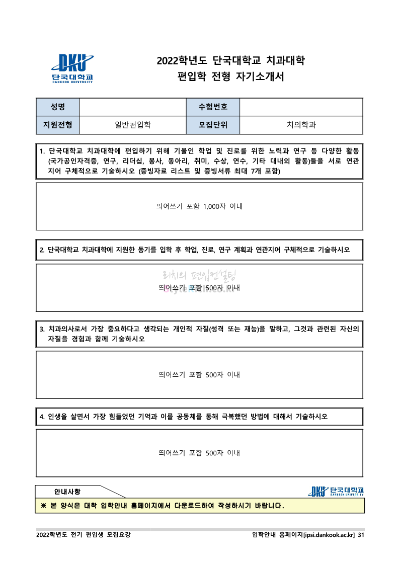 단국대(천안) 편입 2022학년도 모집요강 간편하게 보자! 2021.11.28 17:50 편입 모집요강/2022학년도 모집요강 2022학년도 단국대(천안) 모집요강(2021.11.26 기준)을 간편하게 확인하세요. * 최종 모집요강 발표 이후에도 내용의 일부가 변경될 수 있으니 지원 전 반드시 단국대 입학처의 모집요강을 확인 바랍니다. 2022학년도 단국대(천안) 편입 모집요강 다운받기 <출처: 단국대> 단꿀 라이브 19회 : "단꿀블렌드와 함께 따뜻한 겨울나기" 특집 공유하기 게시글 관리 리치의 편입컨설팅 저작자표시 비영리 변경금지 (새창열림) '편입 모집요강 > 2022학년도 모집요강' 카테고리의 다른 글 가천대 편입 2022학년도 모집요강 간편하게 보자 (0) 2021.11.29 서울대 편입 2022학년도 모집요강 간편하게 보자! (0) 2021.11.28 단국대(죽전) 편입 2022학년도 모집요강 간편하게 보자! (0) 2021.11.28 국민대 편입 2022학년도 모집요강 간편하게 보자! (0) 2021.11.28 고려대 편입 2022학년도 필기고사 출제범위 및 참고도서를 알아보자! (0) 2021.11.07 댓글 공유하기 다른 글 댓글 이 글 공유하기 구독하기 구독하기 카카오톡 카카오톡 라인 라인 트위터 트위터 Facebook Facebook 카카오스토리 카카오스토리 밴드 밴드 네이버 블로그 네이버 블로그 Pocket Pocket Evernote Evernote 다른 글 가천대 편입 2022학년도 모집요강 간편하게 보자 가천대 편입 2022학년도 모집요강 간편하게 보자 2021.11.29 서울대 편입 2022학년도 모집요강 간편하게 보자! 서울대 편입 2022학년도 모집요강 간편하게 보자! 2021.11.28 단국대(죽전) 편입 2022학년도 모집요강 간편하게 보자! 단국대(죽전) 편입 2022학년도 모집요강 간편하게 보자! 2021.11.28 국민대 편입 2022학년도 모집요강 간편하게 보자! 국민대 편입 2022학년도 모집요강 간편하게 보자! 2021.11.28 다른 글 더 둘러보기