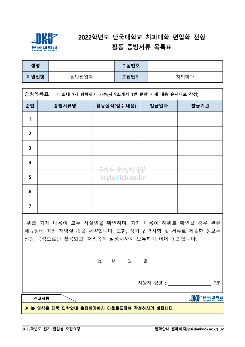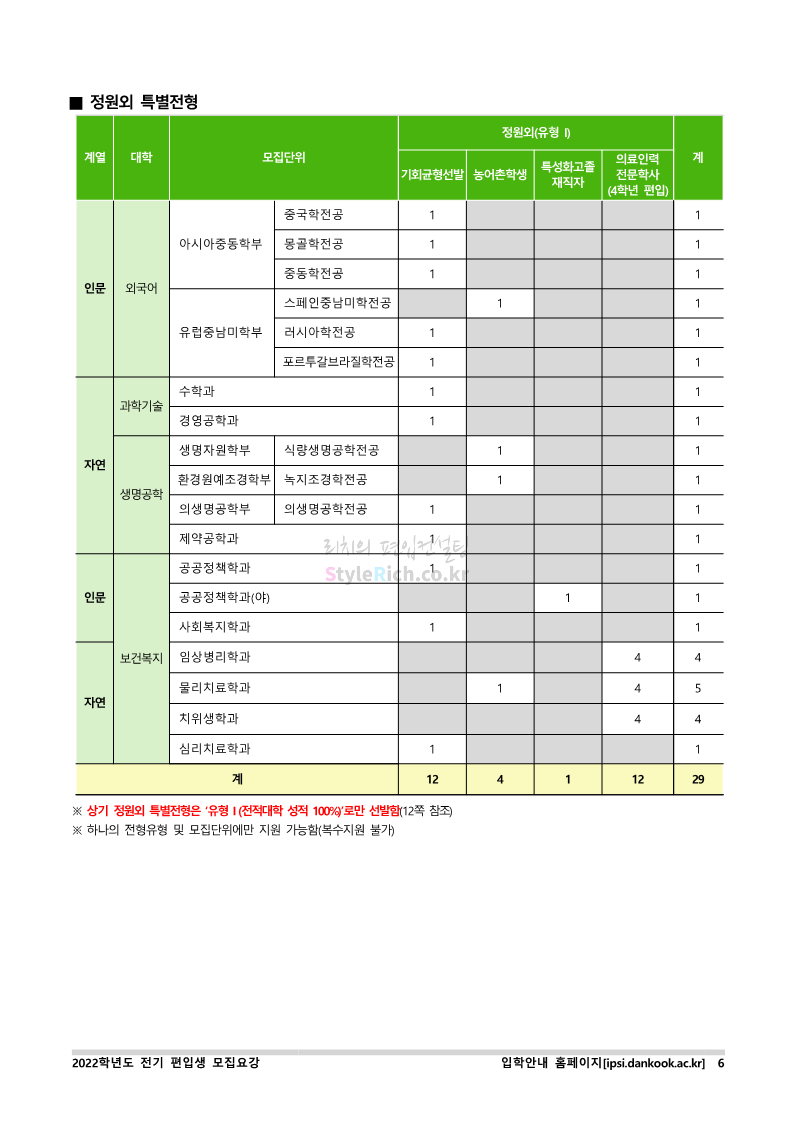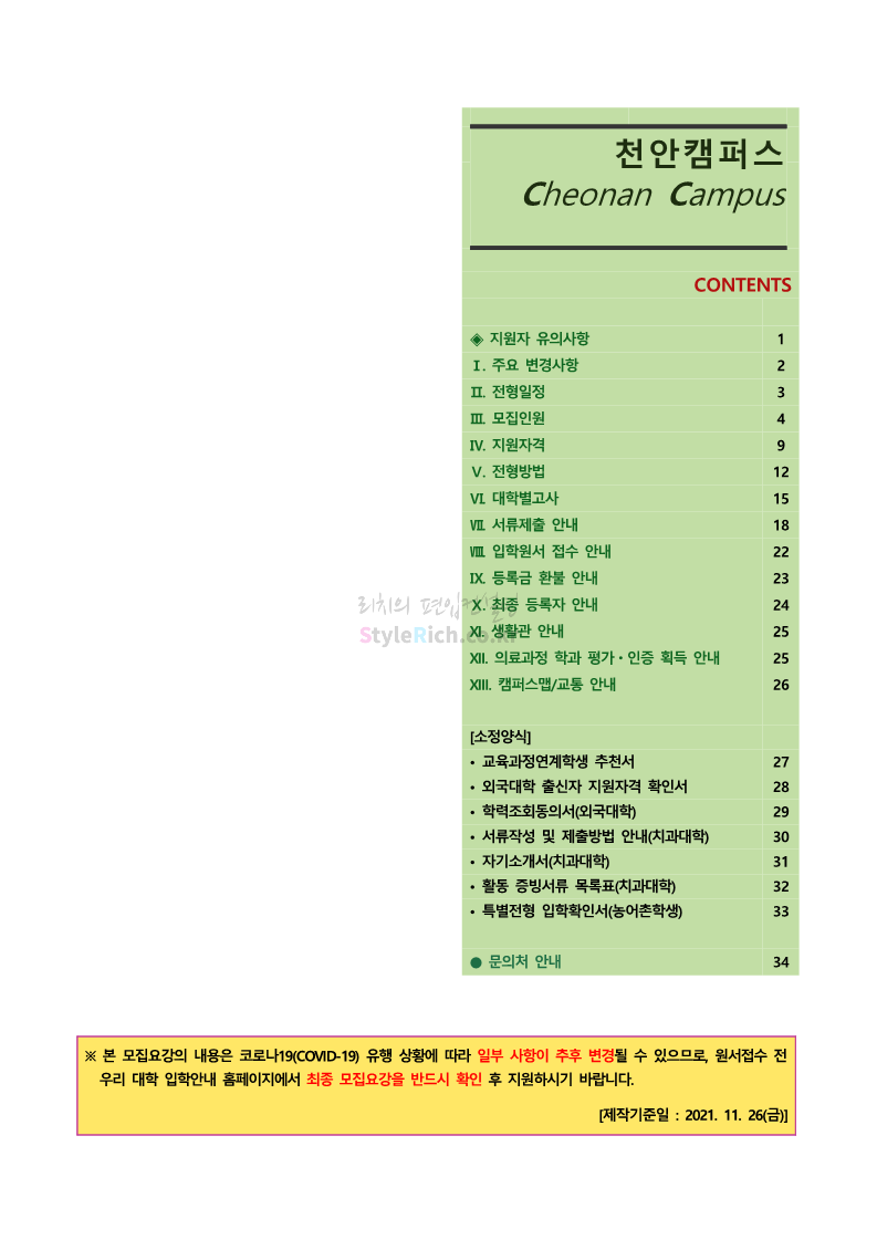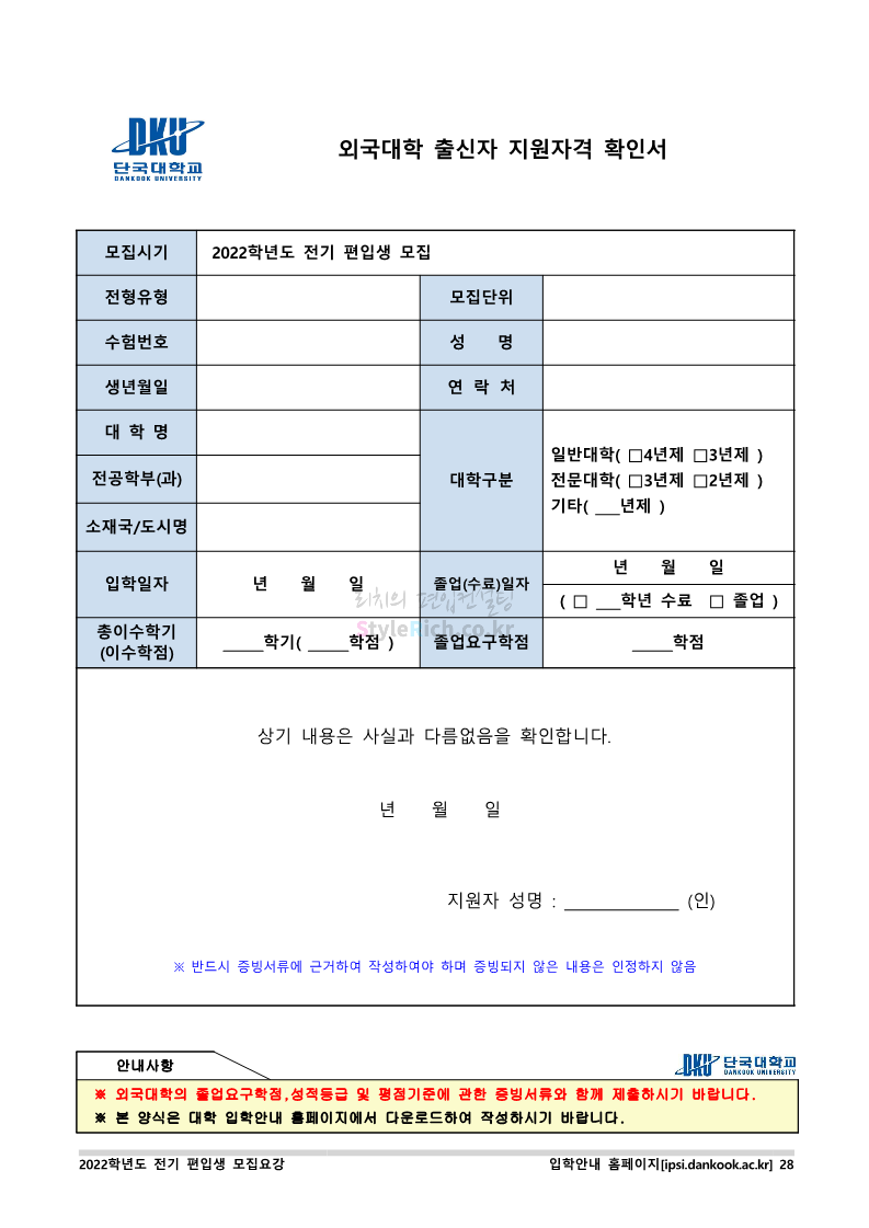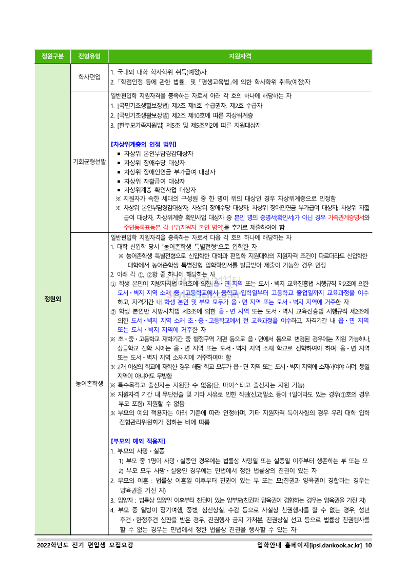 단국대(천안) 편입 2022학년도 모집요강 간편하게 보자! 2021.11.28 17:50 편입 모집요강/2022학년도 모집요강 2022학년도 단국대(천안) 모집요강(2021.11.26 기준)을 간편하게 확인하세요. * 최종 모집요강 발표 이후에도 내용의 일부가 변경될 수 있으니 지원 전 반드시 단국대 입학처의 모집요강을 확인 바랍니다. 2022학년도 단국대(천안) 편입 모집요강 다운받기 <출처: 단국대> 단꿀 라이브 19회 : "단꿀블렌드와 함께 따뜻한 겨울나기" 특집 공유하기 게시글 관리 리치의 편입컨설팅 저작자표시 비영리 변경금지 (새창열림) '편입 모집요강 > 2022학년도 모집요강' 카테고리의 다른 글 가천대 편입 2022학년도 모집요강 간편하게 보자 (0) 2021.11.29 서울대 편입 2022학년도 모집요강 간편하게 보자! (0) 2021.11.28 단국대(죽전) 편입 2022학년도 모집요강 간편하게 보자! (0) 2021.11.28 국민대 편입 2022학년도 모집요강 간편하게 보자! (0) 2021.11.28 고려대 편입 2022학년도 필기고사 출제범위 및 참고도서를 알아보자! (0) 2021.11.07 댓글 공유하기 다른 글 댓글 이 글 공유하기 구독하기 구독하기 카카오톡 카카오톡 라인 라인 트위터 트위터 Facebook Facebook 카카오스토리 카카오스토리 밴드 밴드 네이버 블로그 네이버 블로그 Pocket Pocket Evernote Evernote 다른 글 가천대 편입 2022학년도 모집요강 간편하게 보자 가천대 편입 2022학년도 모집요강 간편하게 보자 2021.11.29 서울대 편입 2022학년도 모집요강 간편하게 보자! 서울대 편입 2022학년도 모집요강 간편하게 보자! 2021.11.28 단국대(죽전) 편입 2022학년도 모집요강 간편하게 보자! 단국대(죽전) 편입 2022학년도 모집요강 간편하게 보자! 2021.11.28 국민대 편입 2022학년도 모집요강 간편하게 보자! 국민대 편입 2022학년도 모집요강 간편하게 보자! 2021.11.28 다른 글 더 둘러보기