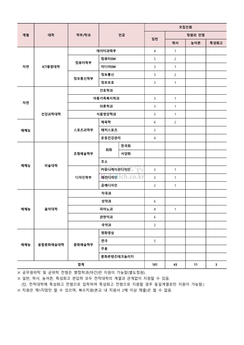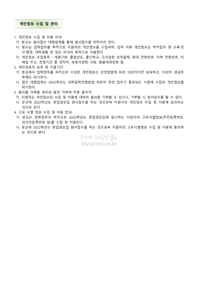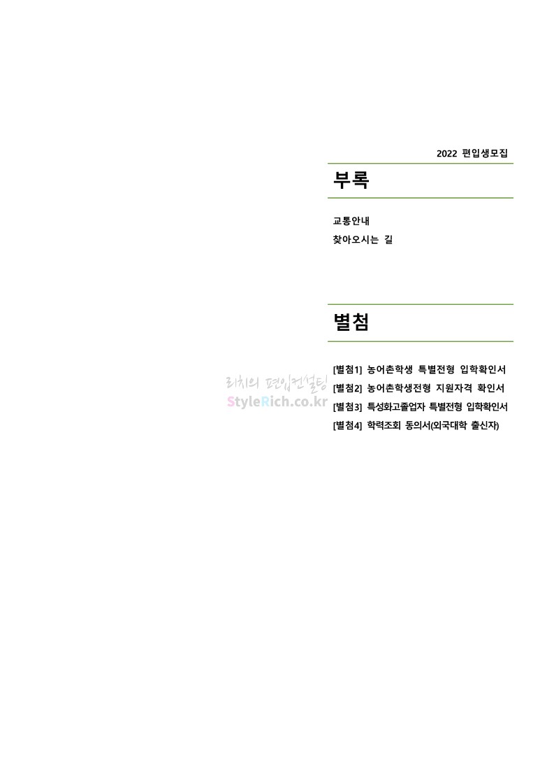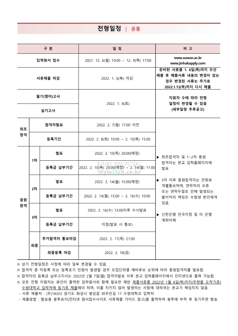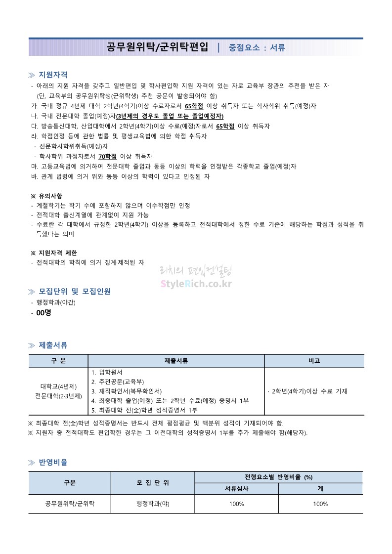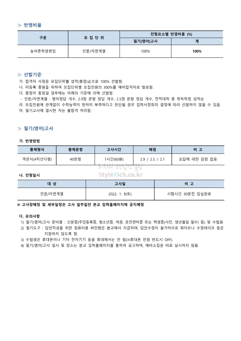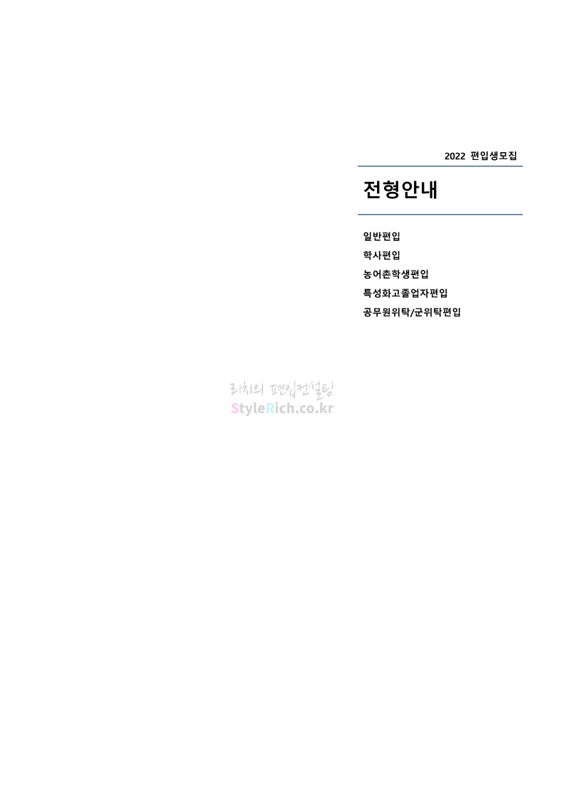 수원대 편입 2022학년도 모집요강 간편하게 보자! 2021.11.29 21:18 편입 모집요강/2022학년도 모집요강 2022학년도 수원대 편입 모집요강(2021.11.29 기준)을 간편하게 확인하세요. * 최종 모집요강 발표 이후에도 내용의 일부가 변경될 수 있으니 지원 전 반드시 수원대 입학처의 모집요강을 확인 바랍니다. 2022학년도 수원대 편입 모집요강 다운받기 <출처: 수원대> [썹프라이즈] 넷플 왓챠 고민 그만! 썹스의 추천작 보고 선택해! 공유하기 게시글 관리 리치의 편입컨설팅 저작자표시 비영리 변경금지 (새창열림) '편입 모집요강 > 2022학년도 모집요강' 카테고리의 다른 글 건국대 편입 2022학년도 모집요강 간편하게 보자! (0) 2021.11.30 한국항공대 편입 2022학년도 모집요강 간편하게 보자! (0) 2021.11.29 가천대 편입 2022학년도 모집요강 간편하게 보자 (0) 2021.11.29 서울대 편입 2022학년도 모집요강 간편하게 보자! (0) 2021.11.28 단국대(천안) 편입 2022학년도 모집요강 간편하게 보자! (0) 2021.11.28 댓글 공유하기 다른 글 댓글 이 글 공유하기 구독하기 구독하기 카카오톡 카카오톡 라인 라인 트위터 트위터 Facebook Facebook 카카오스토리 카카오스토리 밴드 밴드 네이버 블로그 네이버 블로그 Pocket Pocket Evernote Evernote 다른 글 건국대 편입 2022학년도 모집요강 간편하게 보자! 건국대 편입 2022학년도 모집요강 간편하게 보자! 2021.11.30 한국항공대 편입 2022학년도 모집요강 간편하게 보자! 한국항공대 편입 2022학년도 모집요강 간편하게 보자! 2021.11.29 가천대 편입 2022학년도 모집요강 간편하게 보자 가천대 편입 2022학년도 모집요강 간편하게 보자 2021.11.29 서울대 편입 2022학년도 모집요강 간편하게 보자! 서울대 편입 2022학년도 모집요강 간편하게 보자! 2021.11.28 다른 글 더 둘러보기