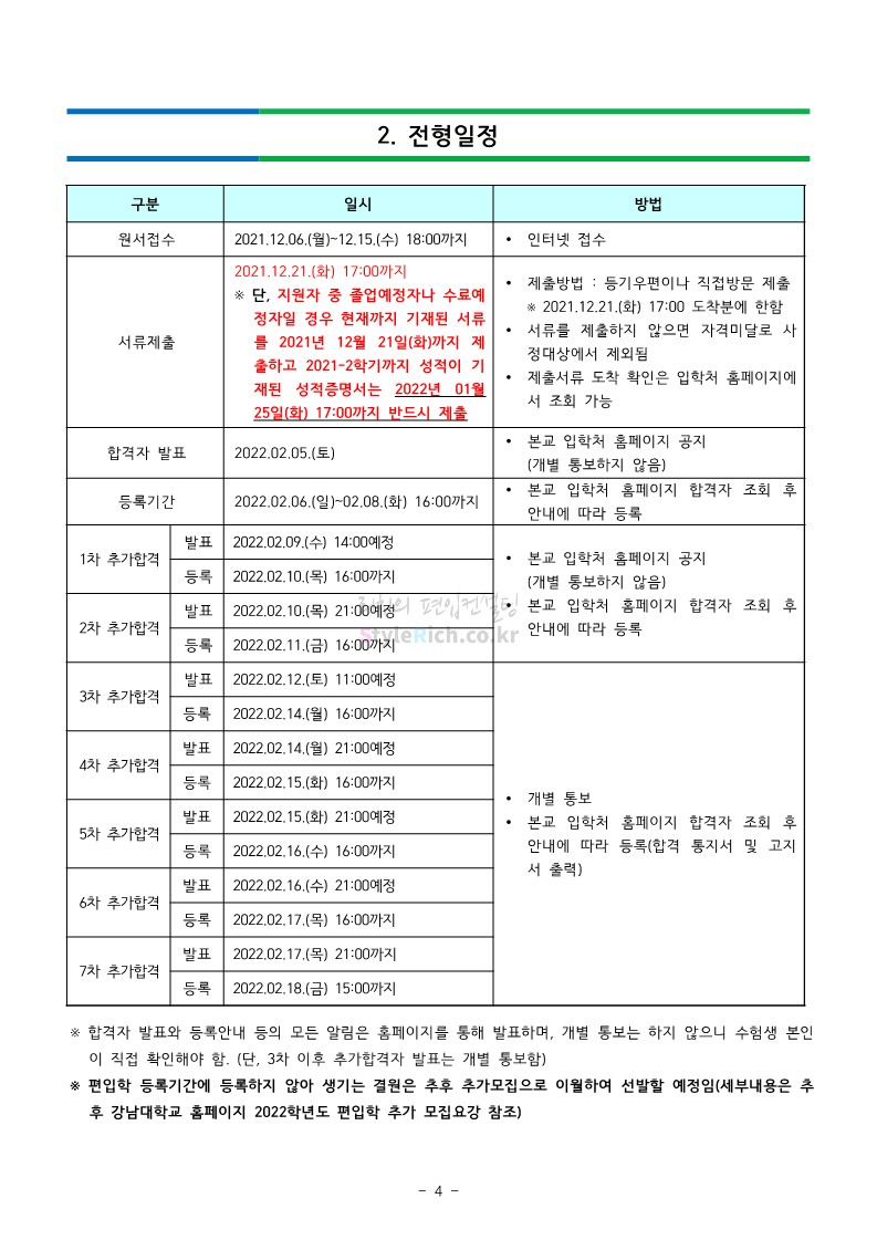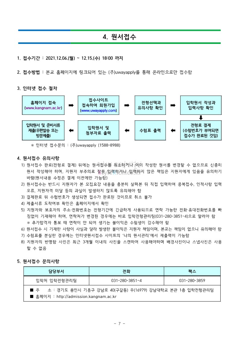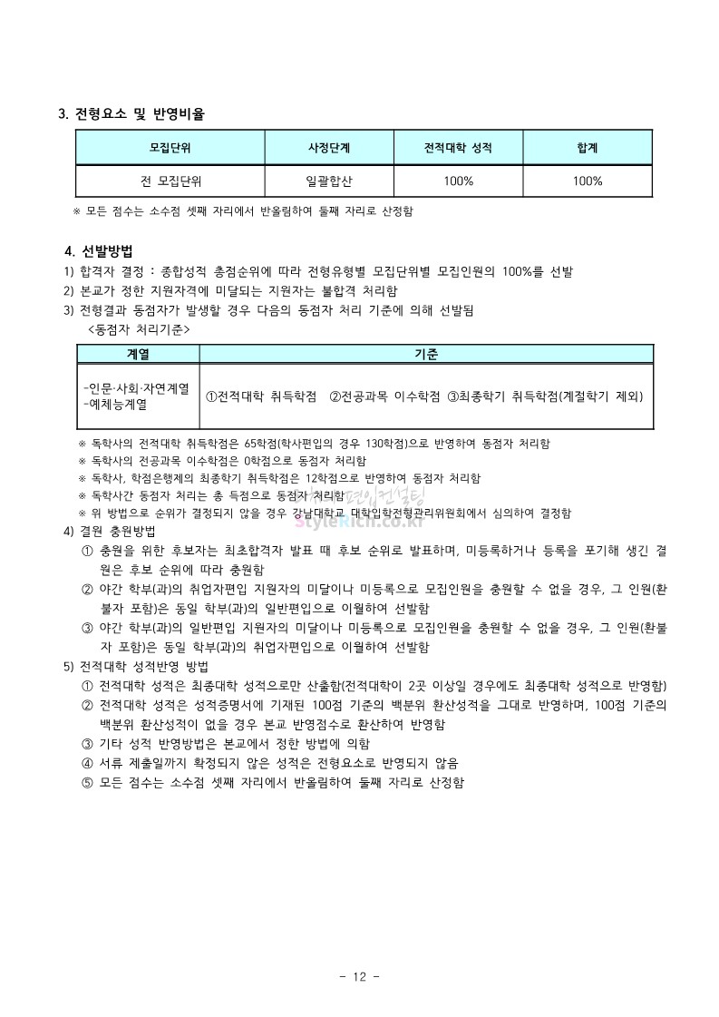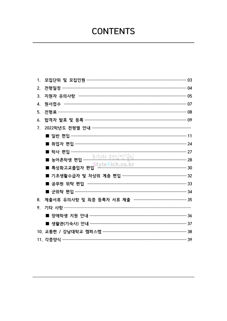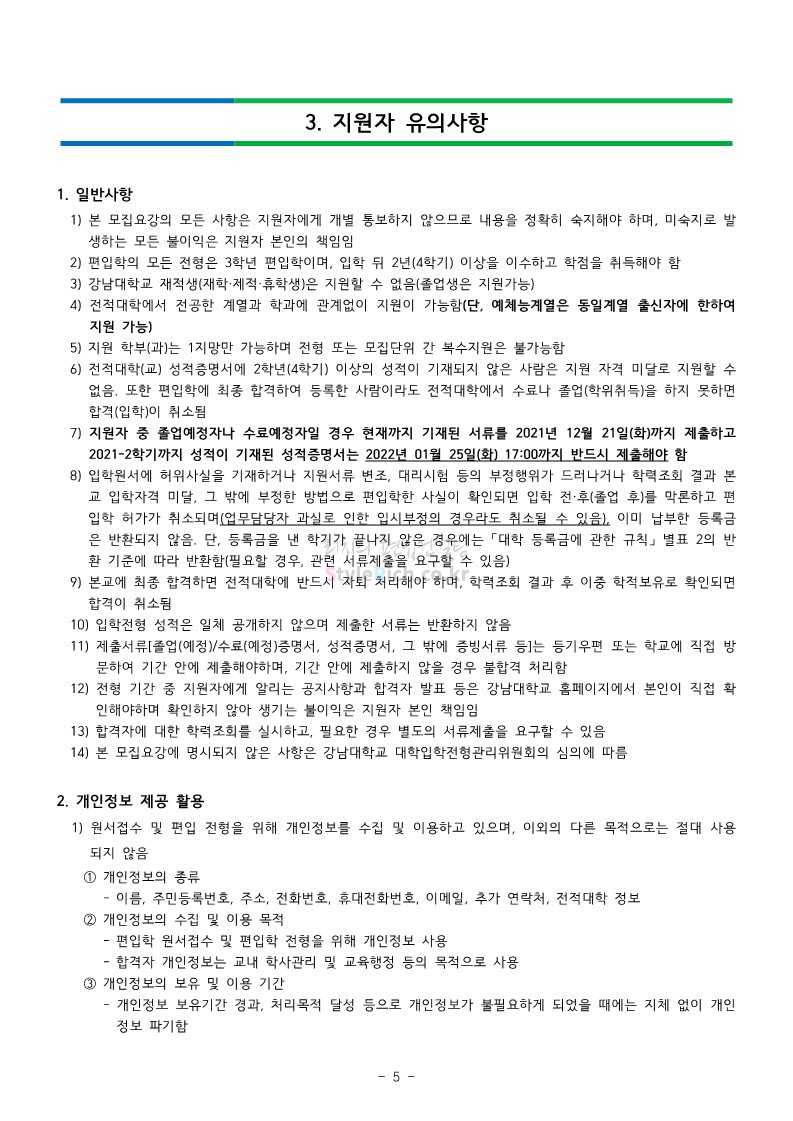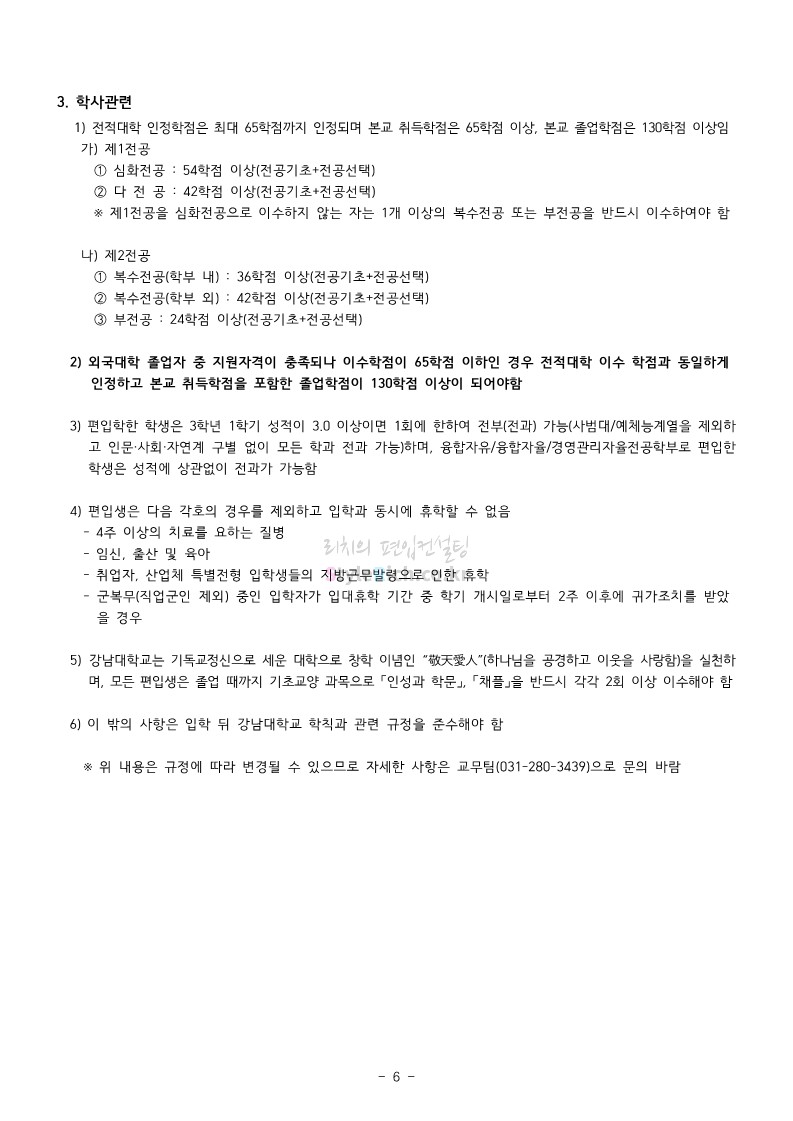 강남대 편입 2022학년도 모집요강을 간편하게 보자! 2021.12.01 00:38 편입 모집요강/2022학년도 모집요강 2022학년도 강남대 편입 모집요강(2021.11.29 기준)을 간편하게 확인하세요. * 최종 모집요강 발표 이후에도 내용의 일부가 변경될 수 있으니 지원 전 반드시 강남대 입학처의 모집요강을 확인 바랍니다. 2022학년도 강남대 편입 모집요강 다운받기 <출처: 강남대> 2022학년도 강남대학교 학교소개 공유하기 게시글 관리 리치의 편입컨설팅 저작자표시 비영리 변경금지 (새창열림) '편입 모집요강 > 2022학년도 모집요강' 카테고리의 다른 글 고려대 편입 2022학년도 모집요강을 간편하게 보자! (0) 2021.12.01 경기대 편입 2022학년도 모집요강을 간편하게 보자! (0) 2021.12.01 연세대 편입 2022학년도 모집요강 간편하게 보자! (0) 2021.11.30 건국대 편입 2022학년도 모집요강 간편하게 보자! (0) 2021.11.30 한국항공대 편입 2022학년도 모집요강 간편하게 보자! (0) 2021.11.29 댓글 공유하기 다른 글 댓글 이 글 공유하기 구독하기 구독하기 카카오톡 카카오톡 라인 라인 트위터 트위터 Facebook Facebook 카카오스토리 카카오스토리 밴드 밴드 네이버 블로그 네이버 블로그 Pocket Pocket Evernote Evernote 다른 글 고려대 편입 2022학년도 모집요강을 간편하게 보자! 고려대 편입 2022학년도 모집요강을 간편하게 보자! 2021.12.01 경기대 편입 2022학년도 모집요강을 간편하게 보자! 경기대 편입 2022학년도 모집요강을 간편하게 보자! 2021.12.01 연세대 편입 2022학년도 모집요강 간편하게 보자! 연세대 편입 2022학년도 모집요강 간편하게 보자! 2021.11.30 건국대 편입 2022학년도 모집요강 간편하게 보자! 건국대 편입 2022학년도 모집요강 간편하게 보자! 2021.11.30 다른 글 더 둘러보기