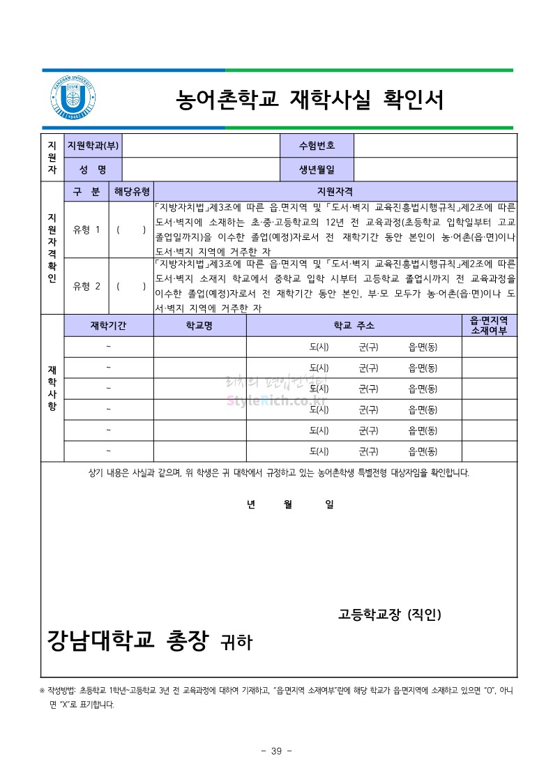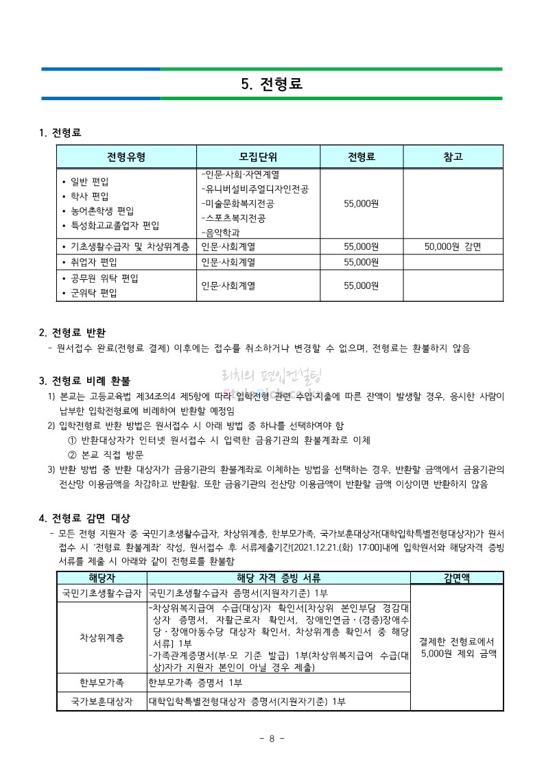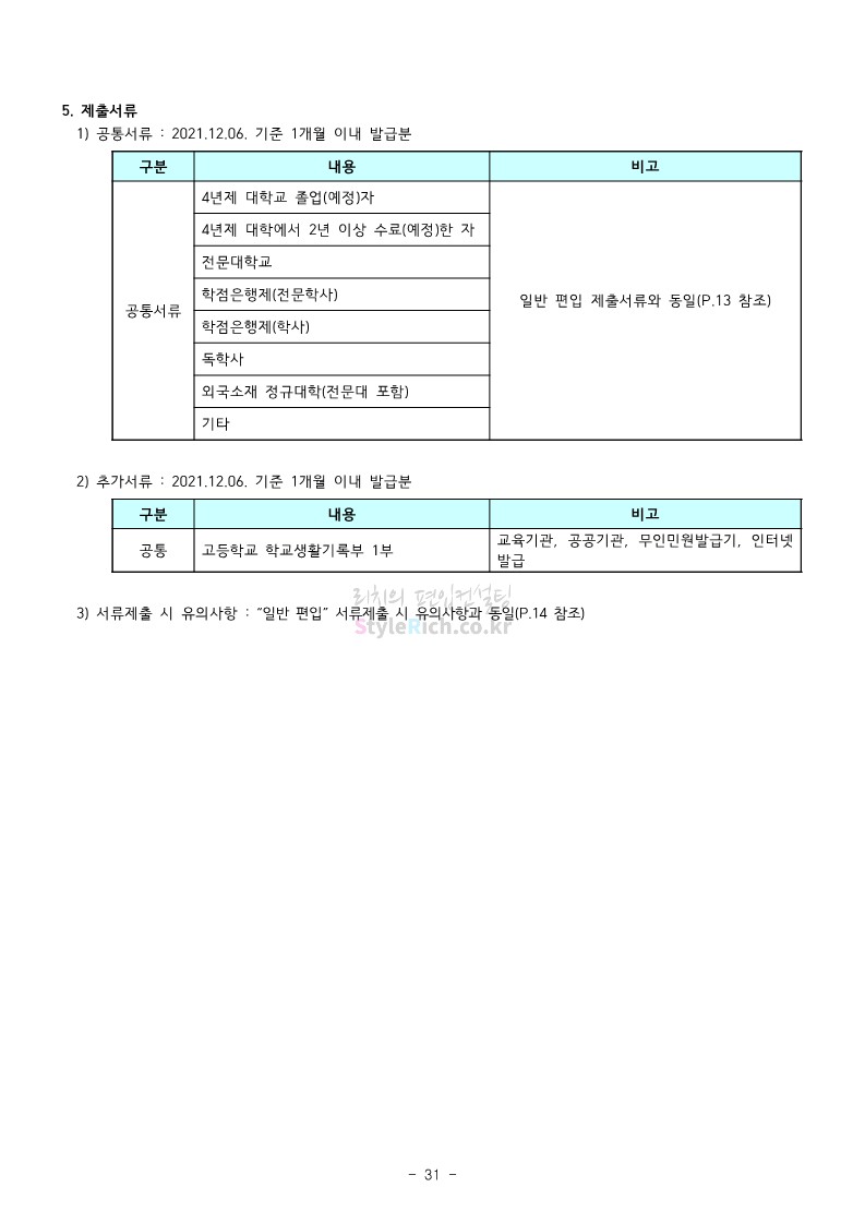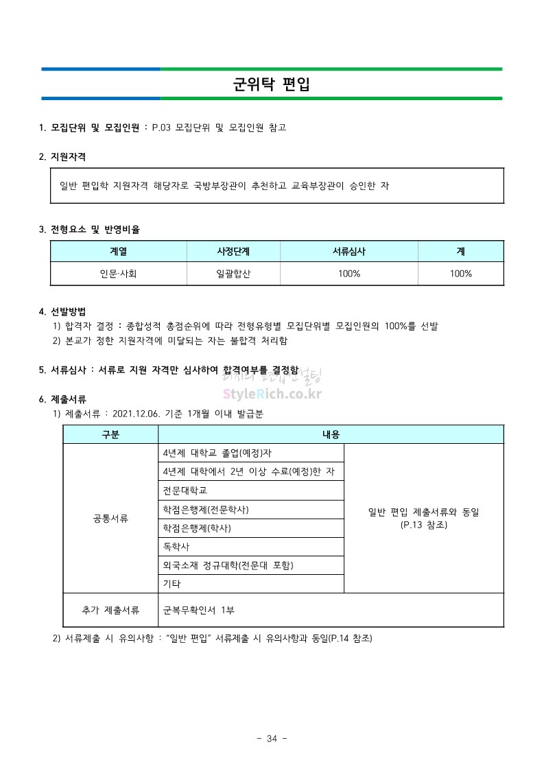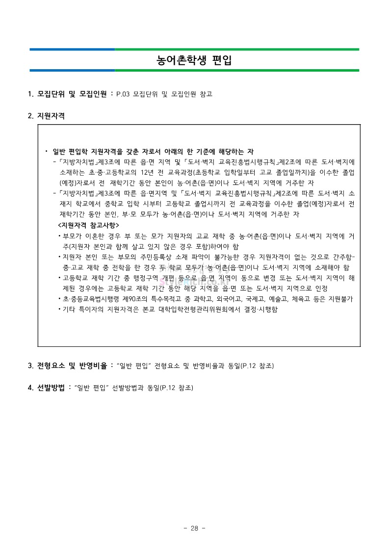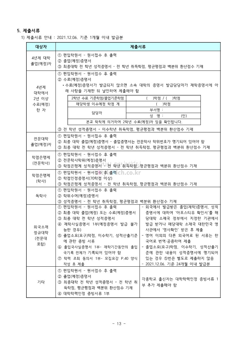 강남대 편입 2022학년도 모집요강을 간편하게 보자! 2021.12.01 00:38 편입 모집요강/2022학년도 모집요강 2022학년도 강남대 편입 모집요강(2021.11.29 기준)을 간편하게 확인하세요. * 최종 모집요강 발표 이후에도 내용의 일부가 변경될 수 있으니 지원 전 반드시 강남대 입학처의 모집요강을 확인 바랍니다. 2022학년도 강남대 편입 모집요강 다운받기 <출처: 강남대> 2022학년도 강남대학교 학교소개 공유하기 게시글 관리 리치의 편입컨설팅 저작자표시 비영리 변경금지 (새창열림) '편입 모집요강 > 2022학년도 모집요강' 카테고리의 다른 글 고려대 편입 2022학년도 모집요강을 간편하게 보자! (0) 2021.12.01 경기대 편입 2022학년도 모집요강을 간편하게 보자! (0) 2021.12.01 연세대 편입 2022학년도 모집요강 간편하게 보자! (0) 2021.11.30 건국대 편입 2022학년도 모집요강 간편하게 보자! (0) 2021.11.30 한국항공대 편입 2022학년도 모집요강 간편하게 보자! (0) 2021.11.29 댓글 공유하기 다른 글 댓글 이 글 공유하기 구독하기 구독하기 카카오톡 카카오톡 라인 라인 트위터 트위터 Facebook Facebook 카카오스토리 카카오스토리 밴드 밴드 네이버 블로그 네이버 블로그 Pocket Pocket Evernote Evernote 다른 글 고려대 편입 2022학년도 모집요강을 간편하게 보자! 고려대 편입 2022학년도 모집요강을 간편하게 보자! 2021.12.01 경기대 편입 2022학년도 모집요강을 간편하게 보자! 경기대 편입 2022학년도 모집요강을 간편하게 보자! 2021.12.01 연세대 편입 2022학년도 모집요강 간편하게 보자! 연세대 편입 2022학년도 모집요강 간편하게 보자! 2021.11.30 건국대 편입 2022학년도 모집요강 간편하게 보자! 건국대 편입 2022학년도 모집요강 간편하게 보자! 2021.11.30 다른 글 더 둘러보기