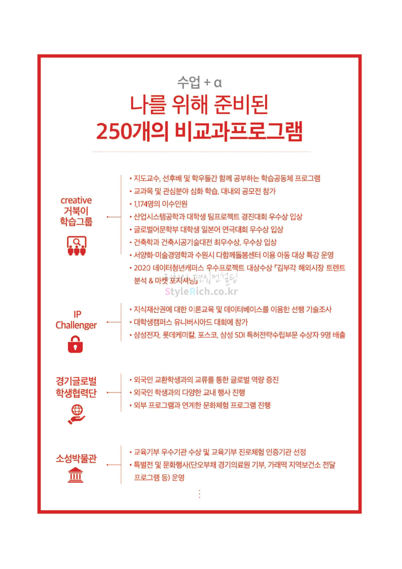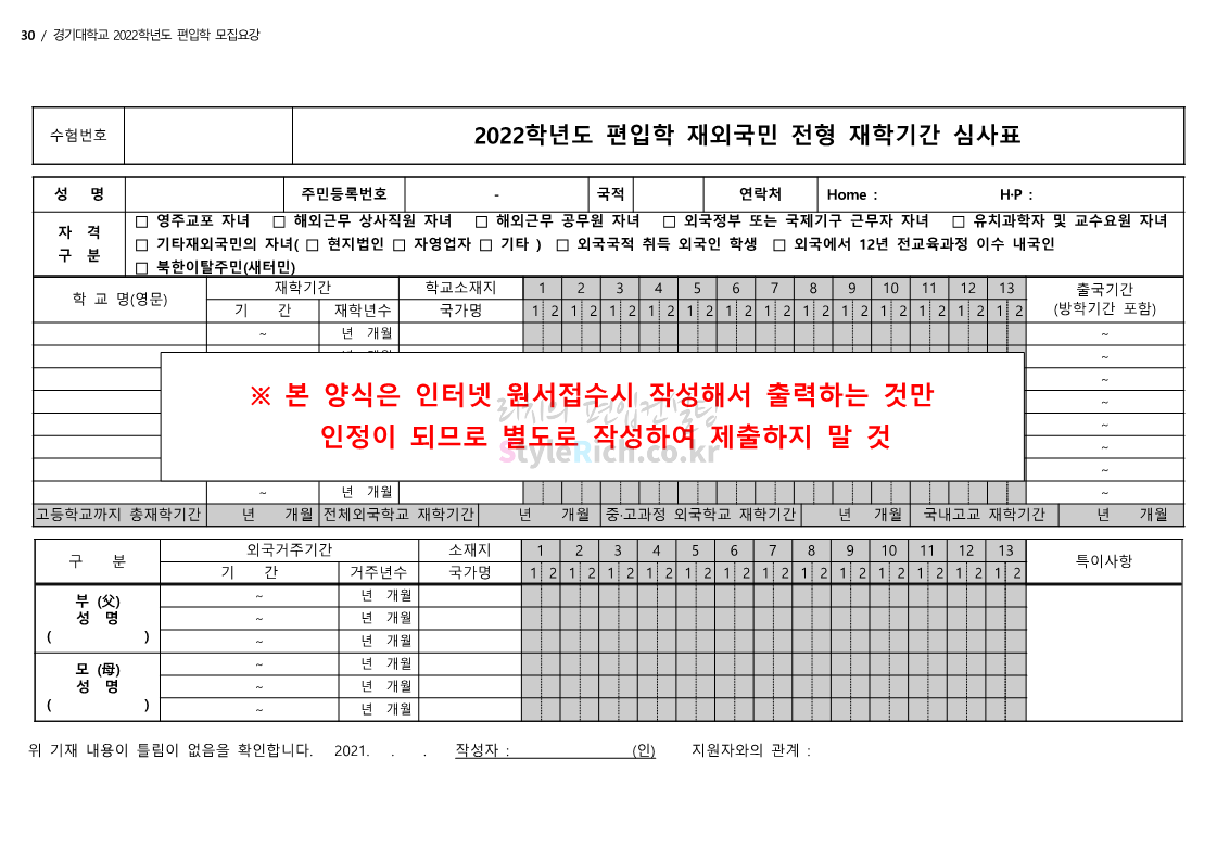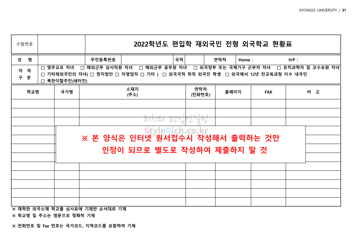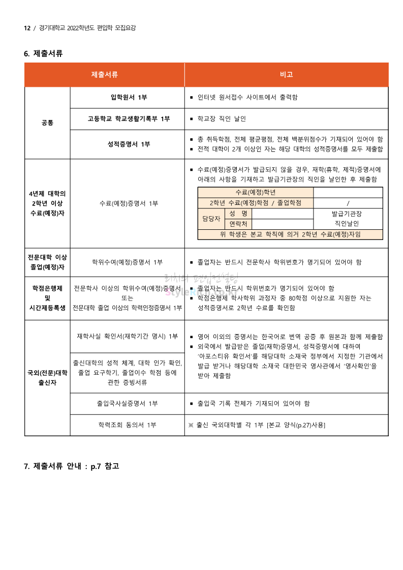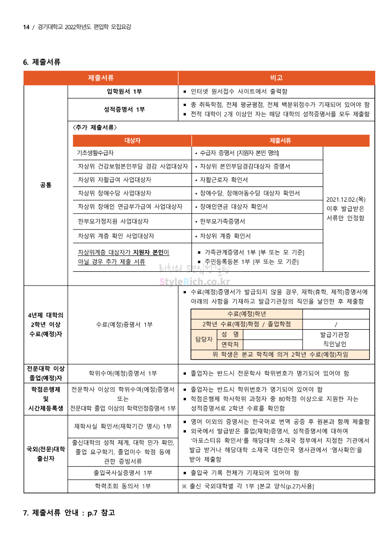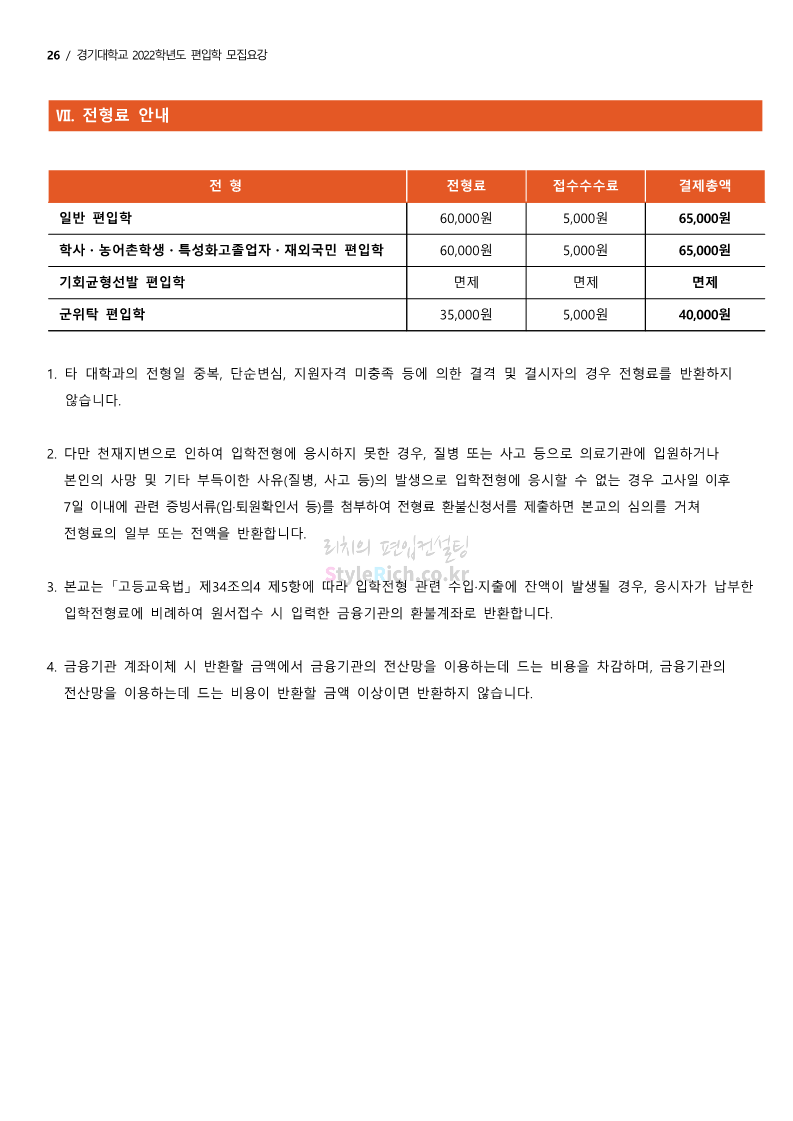 경기대 편입 2022학년도 모집요강을 간편하게 보자! 2021.12.01 21:52 편입 모집요강/2022학년도 모집요강 2022학년도 경기대 편입 모집요강(2021.12.01 기준)을 간편하게 확인하세요. * 최종 모집요강 발표 이후에도 내용의 일부가 변경될 수 있으니 지원 전 반드시 경기대 입학처의 모집요강을 확인 바랍니다. 2022학년도 경기대 편입 모집요강 다운받기 <출처: 경기대> [거북이라이프 - 동아리 체험편 EP.1 태풍] 공유하기 게시글 관리 리치의 편입컨설팅 저작자표시 비영리 변경금지 (새창열림) '편입 모집요강 > 2022학년도 모집요강' 카테고리의 다른 글 명지대 편입 2022학년도 모집요강 간편하게 보자! (0) 2021.12.01 고려대 편입 2022학년도 모집요강을 간편하게 보자! (0) 2021.12.01 강남대 편입 2022학년도 모집요강을 간편하게 보자! (0) 2021.12.01 연세대 편입 2022학년도 모집요강 간편하게 보자! (0) 2021.11.30 건국대 편입 2022학년도 모집요강 간편하게 보자! (0) 2021.11.30 댓글 공유하기 다른 글 댓글 이 글 공유하기 구독하기 구독하기 카카오톡 카카오톡 라인 라인 트위터 트위터 Facebook Facebook 카카오스토리 카카오스토리 밴드 밴드 네이버 블로그 네이버 블로그 Pocket Pocket Evernote Evernote 다른 글 명지대 편입 2022학년도 모집요강 간편하게 보자! 명지대 편입 2022학년도 모집요강 간편하게 보자! 2021.12.01 고려대 편입 2022학년도 모집요강을 간편하게 보자! 고려대 편입 2022학년도 모집요강을 간편하게 보자! 2021.12.01 강남대 편입 2022학년도 모집요강을 간편하게 보자! 강남대 편입 2022학년도 모집요강을 간편하게 보자! 2021.12.01 연세대 편입 2022학년도 모집요강 간편하게 보자! 연세대 편입 2022학년도 모집요강 간편하게 보자! 2021.11.30 다른 글 더 둘러보기