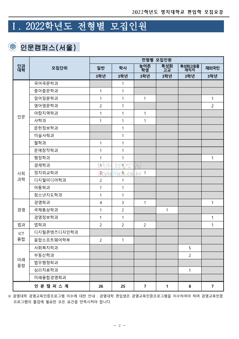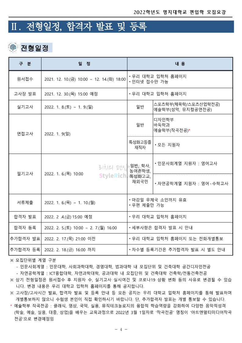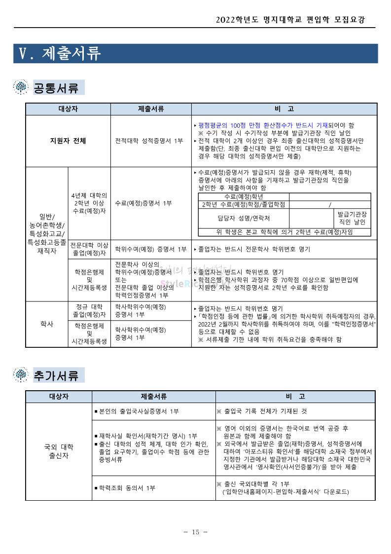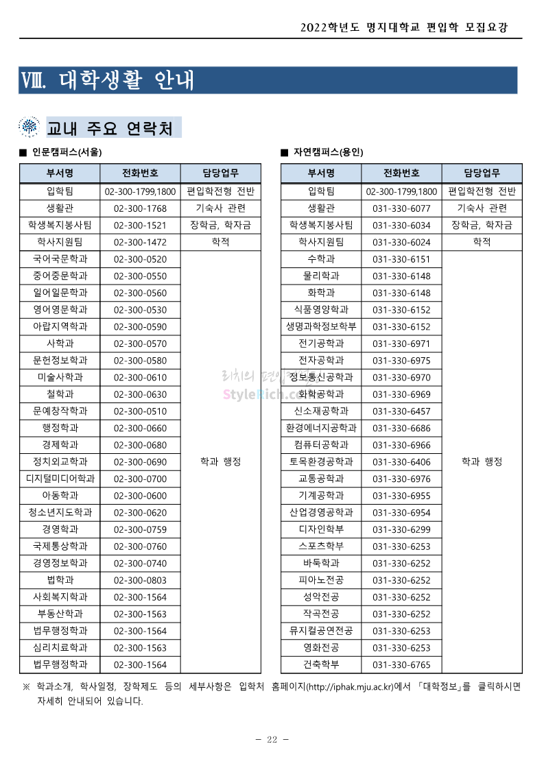 명지대 편입 2022학년도 모집요강 간편하게 보자! 2021.12.01 22:33 편입 모집요강/2022학년도 모집요강 2022학년도 명지대 편입 모집요강(2021.12.01 기준)을 간편하게 확인하세요. * 최종 모집요강 발표 이후에도 내용의 일부가 변경될 수 있으니 지원 전 반드시 명지대 입학처의 모집요강을 확인 바랍니다. 2022학년도 명지대 편입 모집요강 다운받기 <출처: 명지대> [홍보기자단] 명지대학교 자연캠퍼스 단풍길 Vlog🍁(feat.면접시즌) | 명지대에는 한옥이 있다?! | 자캠의 포토스팟📷 공유하기 게시글 관리 리치의 편입컨설팅 저작자표시 비영리 변경금지 (새창열림) '편입 모집요강 > 2022학년도 모집요강' 카테고리의 다른 글 가톨릭대 편입 2022학년도 모집요강 간편하게 보자! (0) 2021.12.02 홍익대 편입 2022학년도 모집요강 간편하게 보자! (0) 2021.12.01 고려대 편입 2022학년도 모집요강을 간편하게 보자! (0) 2021.12.01 경기대 편입 2022학년도 모집요강을 간편하게 보자! (0) 2021.12.01 강남대 편입 2022학년도 모집요강을 간편하게 보자! (0) 2021.12.01 댓글 공유하기 다른 글 댓글 이 글 공유하기 구독하기 구독하기 카카오톡 카카오톡 라인 라인 트위터 트위터 Facebook Facebook 카카오스토리 카카오스토리 밴드 밴드 네이버 블로그 네이버 블로그 Pocket Pocket Evernote Evernote 다른 글 가톨릭대 편입 2022학년도 모집요강 간편하게 보자! 가톨릭대 편입 2022학년도 모집요강 간편하게 보자! 2021.12.02 홍익대 편입 2022학년도 모집요강 간편하게 보자! 홍익대 편입 2022학년도 모집요강 간편하게 보자! 2021.12.01 고려대 편입 2022학년도 모집요강을 간편하게 보자! 고려대 편입 2022학년도 모집요강을 간편하게 보자! 2021.12.01 경기대 편입 2022학년도 모집요강을 간편하게 보자! 경기대 편입 2022학년도 모집요강을 간편하게 보자! 2021.12.01 다른 글 더 둘러보기