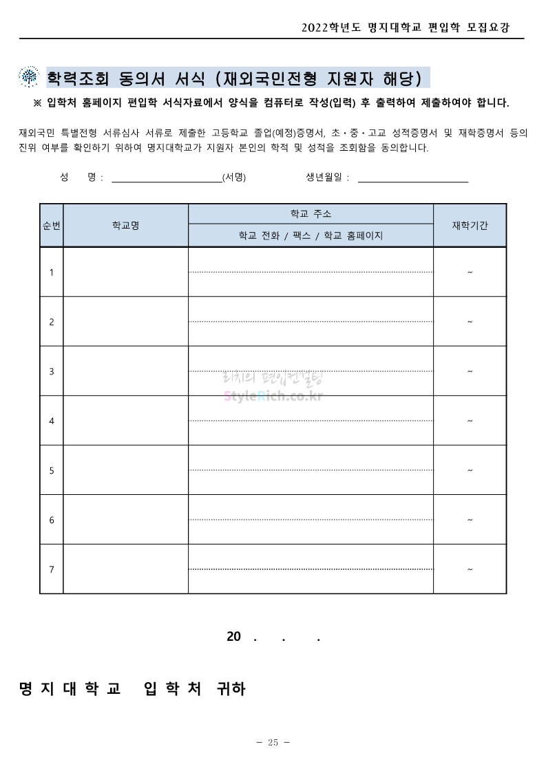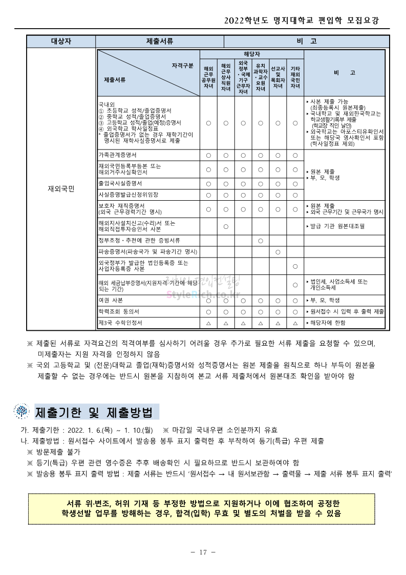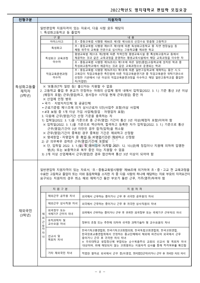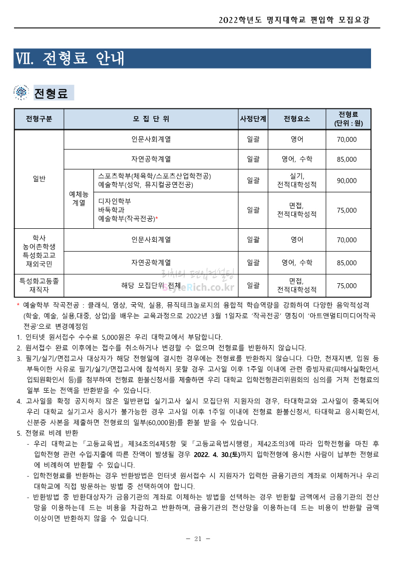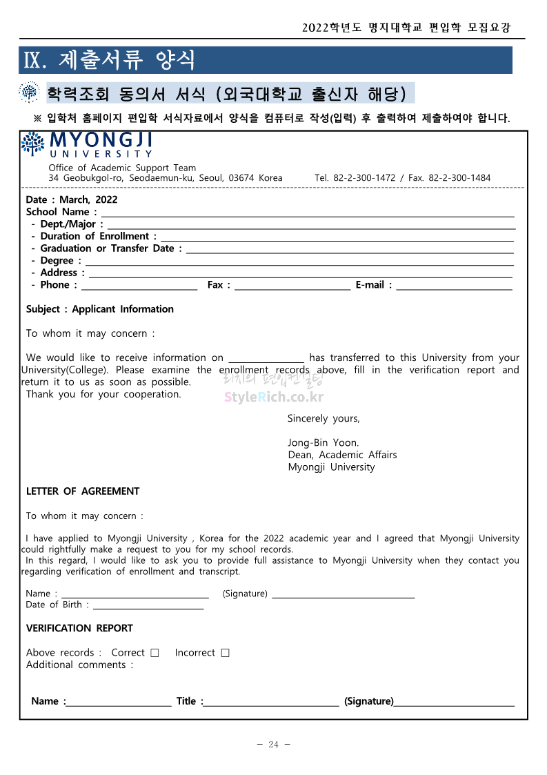 명지대 편입 2022학년도 모집요강 간편하게 보자! 2021.12.01 22:33 편입 모집요강/2022학년도 모집요강 2022학년도 명지대 편입 모집요강(2021.12.01 기준)을 간편하게 확인하세요. * 최종 모집요강 발표 이후에도 내용의 일부가 변경될 수 있으니 지원 전 반드시 명지대 입학처의 모집요강을 확인 바랍니다. 2022학년도 명지대 편입 모집요강 다운받기 <출처: 명지대> [홍보기자단] 명지대학교 자연캠퍼스 단풍길 Vlog🍁(feat.면접시즌) | 명지대에는 한옥이 있다?! | 자캠의 포토스팟📷 공유하기 게시글 관리 리치의 편입컨설팅 저작자표시 비영리 변경금지 (새창열림) '편입 모집요강 > 2022학년도 모집요강' 카테고리의 다른 글 가톨릭대 편입 2022학년도 모집요강 간편하게 보자! (0) 2021.12.02 홍익대 편입 2022학년도 모집요강 간편하게 보자! (0) 2021.12.01 고려대 편입 2022학년도 모집요강을 간편하게 보자! (0) 2021.12.01 경기대 편입 2022학년도 모집요강을 간편하게 보자! (0) 2021.12.01 강남대 편입 2022학년도 모집요강을 간편하게 보자! (0) 2021.12.01 댓글 공유하기 다른 글 댓글 이 글 공유하기 구독하기 구독하기 카카오톡 카카오톡 라인 라인 트위터 트위터 Facebook Facebook 카카오스토리 카카오스토리 밴드 밴드 네이버 블로그 네이버 블로그 Pocket Pocket Evernote Evernote 다른 글 가톨릭대 편입 2022학년도 모집요강 간편하게 보자! 가톨릭대 편입 2022학년도 모집요강 간편하게 보자! 2021.12.02 홍익대 편입 2022학년도 모집요강 간편하게 보자! 홍익대 편입 2022학년도 모집요강 간편하게 보자! 2021.12.01 고려대 편입 2022학년도 모집요강을 간편하게 보자! 고려대 편입 2022학년도 모집요강을 간편하게 보자! 2021.12.01 경기대 편입 2022학년도 모집요강을 간편하게 보자! 경기대 편입 2022학년도 모집요강을 간편하게 보자! 2021.12.01 다른 글 더 둘러보기
