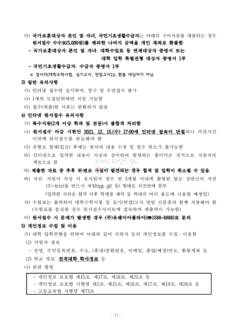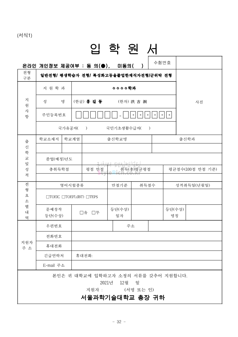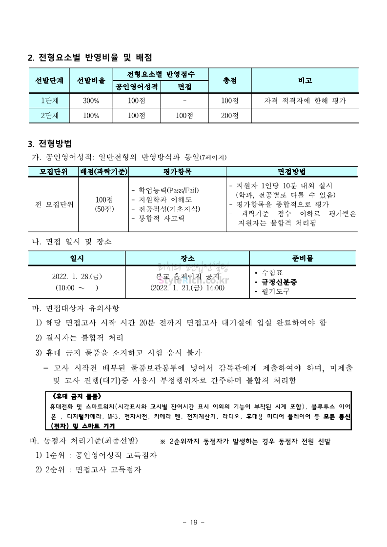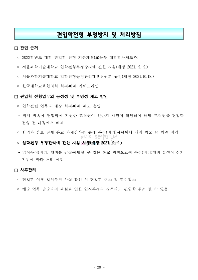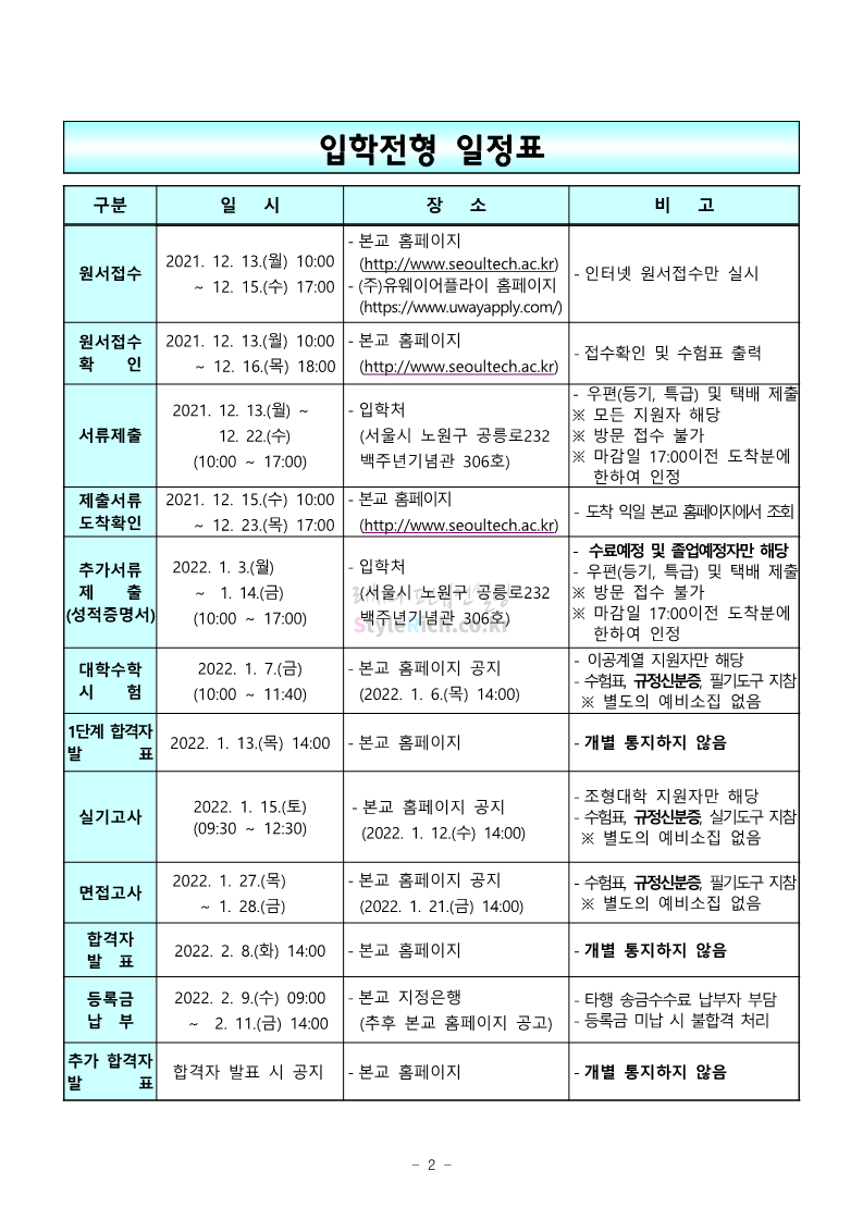 서울과학기술대 편입 2022학년도 모집요강 간편하게 보자! 2021.12.04 00:22 편입 모집요강/2022학년도 모집요강 2022학년도 서울과학기술대 편입 모집요강(2021.12.03 기준)을 간편하게 확인하세요. * 최종 모집요강 발표 이후에도 내용의 일부가 변경될 수 있으니 지원 전 반드시 서울과학기술대 입학처의 모집요강을 확인 바랍니다. 2022학년도 서울과학기술대 편입 모집요강 다운받기 <출처: 서울과학기술대> 2021년 서울과학기술대학교 홍보영상 공유하기 게시글 관리 리치의 편입컨설팅 저작자표시 비영리 변경금지 (새창열림) '편입 모집요강 > 2022학년도 모집요강' 카테고리의 다른 글 연세대(미래) 편입 2022학년도 모집요강 간편하게 보자! (0) 2021.12.04 숙명여대 편입 2022학년도 모집요강을 확인해 보자! (0) 2021.12.04 광운대 편입 2022학년도 모집요강 간편하게 보자 (0) 2021.12.02 가톨릭대 편입 2022학년도 모집요강 간편하게 보자! (0) 2021.12.02 홍익대 편입 2022학년도 모집요강 간편하게 보자! (0) 2021.12.01 댓글 공유하기 다른 글 댓글 이 글 공유하기 구독하기 구독하기 카카오톡 카카오톡 라인 라인 트위터 트위터 Facebook Facebook 카카오스토리 카카오스토리 밴드 밴드 네이버 블로그 네이버 블로그 Pocket Pocket Evernote Evernote 다른 글 연세대(미래) 편입 2022학년도 모집요강 간편하게 보자! 연세대(미래) 편입 2022학년도 모집요강 간편하게 보자! 2021.12.04 숙명여대 편입 2022학년도 모집요강을 확인해 보자! 숙명여대 편입 2022학년도 모집요강을 확인해 보자! 2021.12.04 광운대 편입 2022학년도 모집요강 간편하게 보자 광운대 편입 2022학년도 모집요강 간편하게 보자 2021.12.02 가톨릭대 편입 2022학년도 모집요강 간편하게 보자! 가톨릭대 편입 2022학년도 모집요강 간편하게 보자! 2021.12.02 다른 글 더 둘러보기
