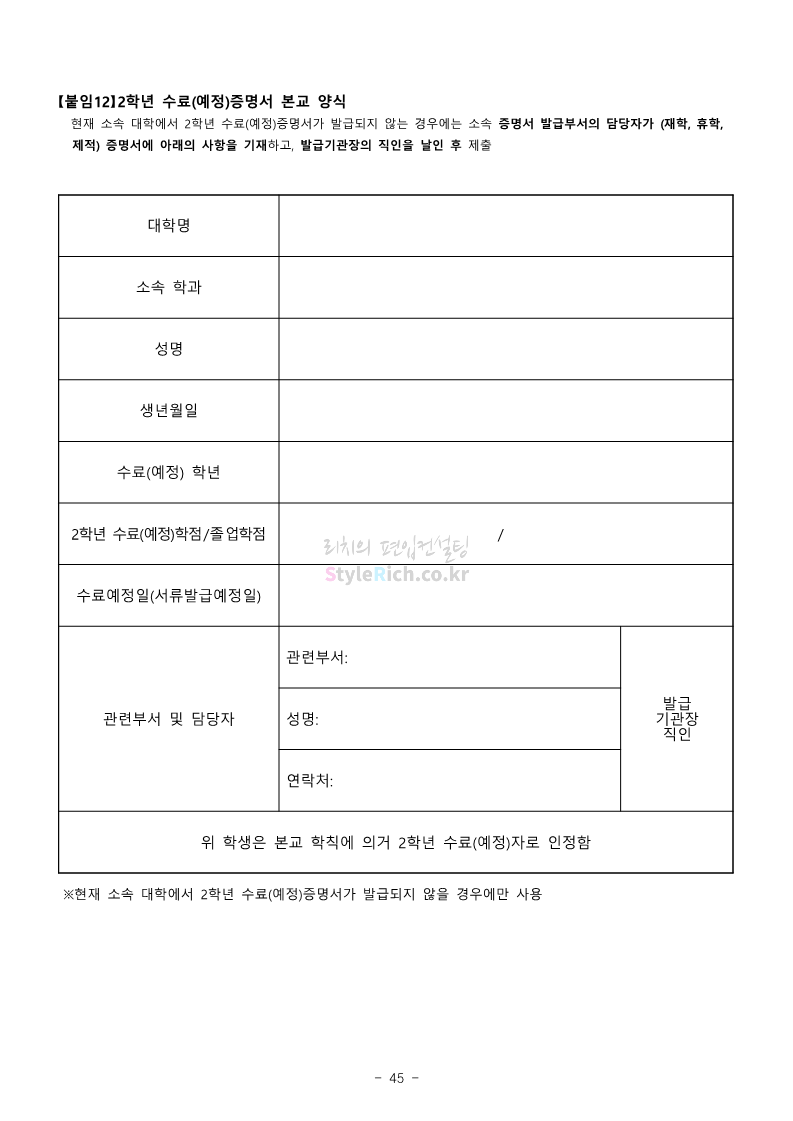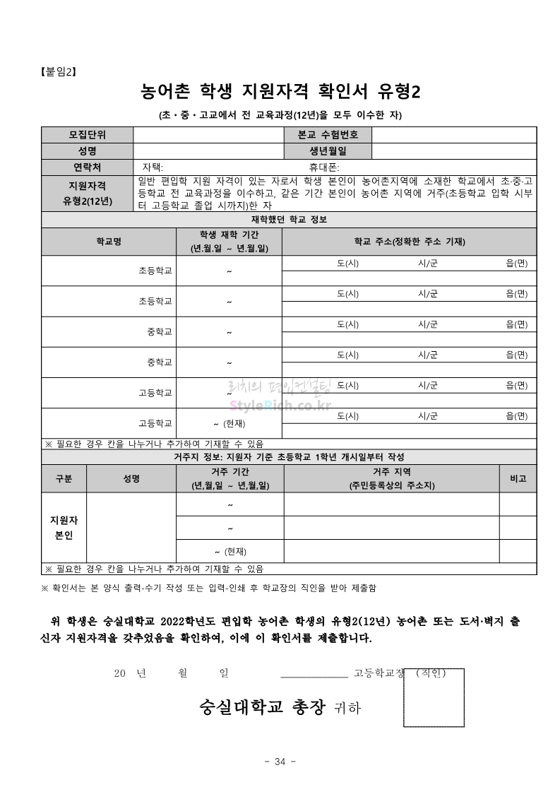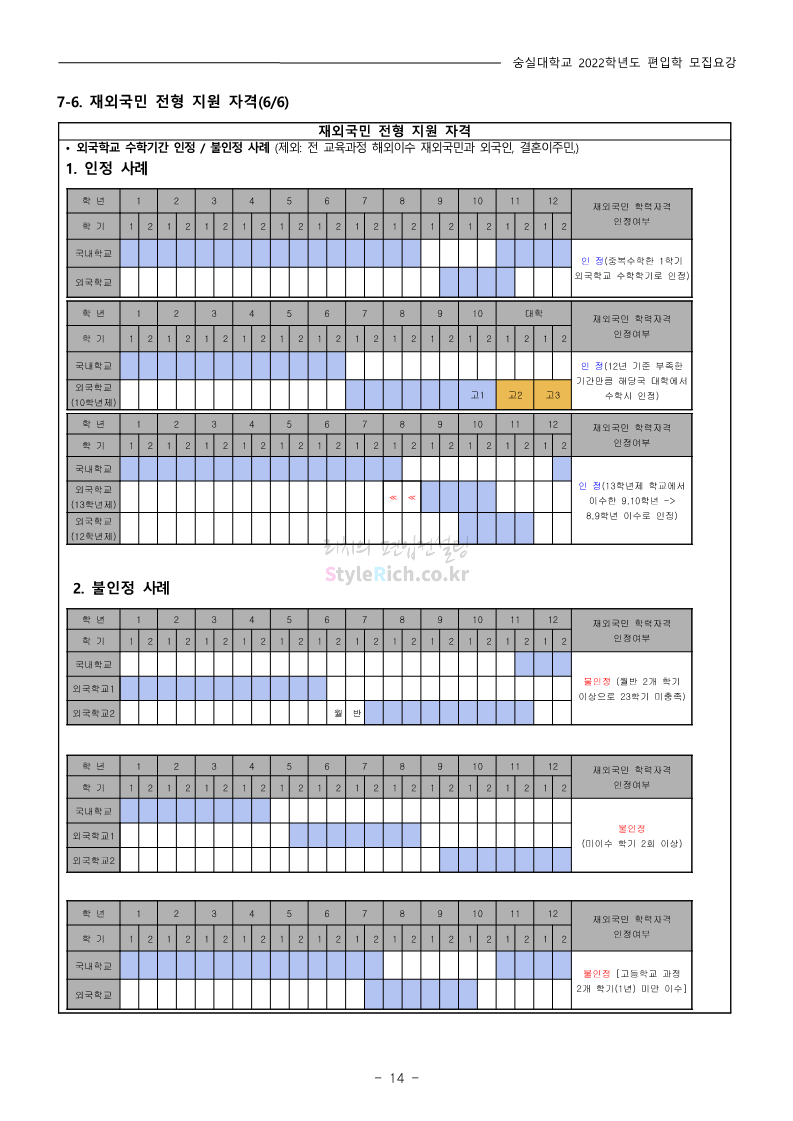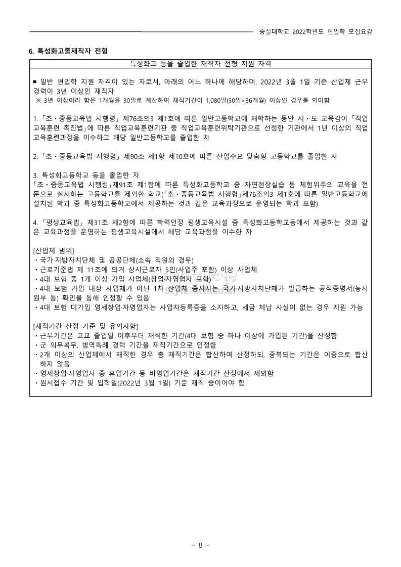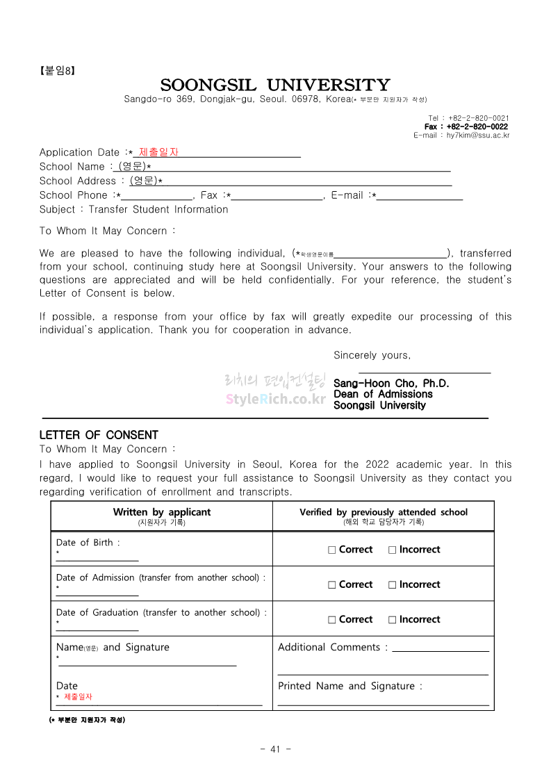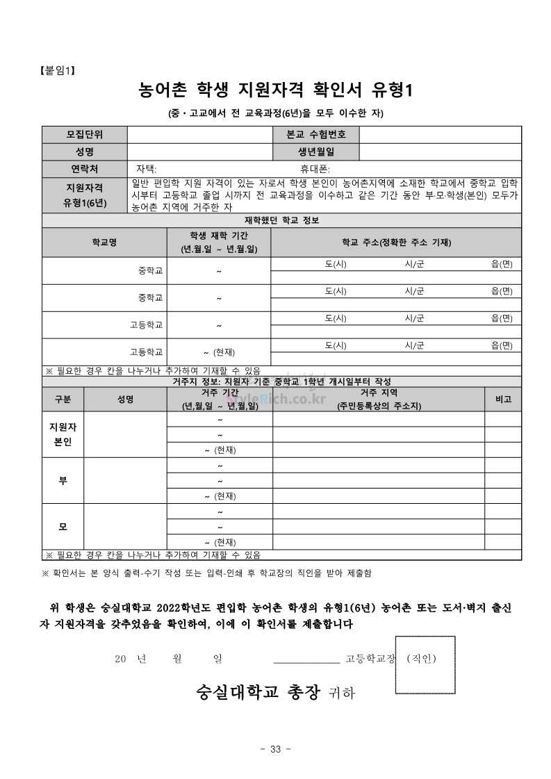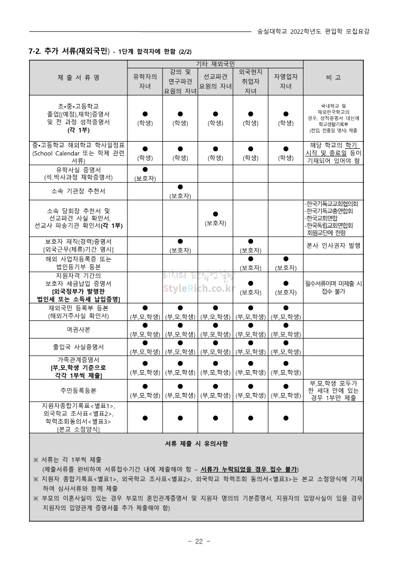 숭실대 편입 2022학년도 모집요강 간편하게 보자! 2021.12.06 23:01 편입 모집요강/2022학년도 모집요강 2022학년도 숭실대 편입 모집요강(2021.12.06 기준)을 간편하게 확인하세요. * 최종 모집요강 발표 이후에도 내용의 일부가 변경될 수 있으니 지원 전 반드시 숭실대 입학처의 모집요강을 확인 바랍니다. 2022학년도 숭실대 편입 모집요강 다운받기 <출처: 숭실대> 🍁숭실의 가을 “가을의 시(詩)기” 🍁 공유하기 게시글 관리 리치의 편입컨설팅 저작자표시 비영리 변경금지 (새창열림) '편입 모집요강 > 2022학년도 모집요강' 카테고리의 다른 글 용인대 편입 2022학년도 모집요강 간편하게 보자! (0) 2021.12.06 한국산업기술대 편입 2022학년도 모집요강 간편하게 보자! (0) 2021.12.06 경희대 편입 2022학년도 모집요강 간편하게 보자! (0) 2021.12.06 영남대 편입 2022학년도 모집요강 간편하게 보자! (0) 2021.12.04 인하대 편입 2022학년도 모집요강 간편하게 보자! (0) 2021.12.04 댓글 공유하기 다른 글 댓글 이 글 공유하기 구독하기 구독하기 카카오톡 카카오톡 라인 라인 트위터 트위터 Facebook Facebook 카카오스토리 카카오스토리 밴드 밴드 네이버 블로그 네이버 블로그 Pocket Pocket Evernote Evernote 다른 글 용인대 편입 2022학년도 모집요강 간편하게 보자! 용인대 편입 2022학년도 모집요강 간편하게 보자! 2021.12.06 한국산업기술대 편입 2022학년도 모집요강 간편하게 보자! 한국산업기술대 편입 2022학년도 모집요강 간편하게 보자! 2021.12.06 경희대 편입 2022학년도 모집요강 간편하게 보자! 경희대 편입 2022학년도 모집요강 간편하게 보자! 2021.12.06 영남대 편입 2022학년도 모집요강 간편하게 보자! 영남대 편입 2022학년도 모집요강 간편하게 보자! 2021.12.04 다른 글 더 둘러보기