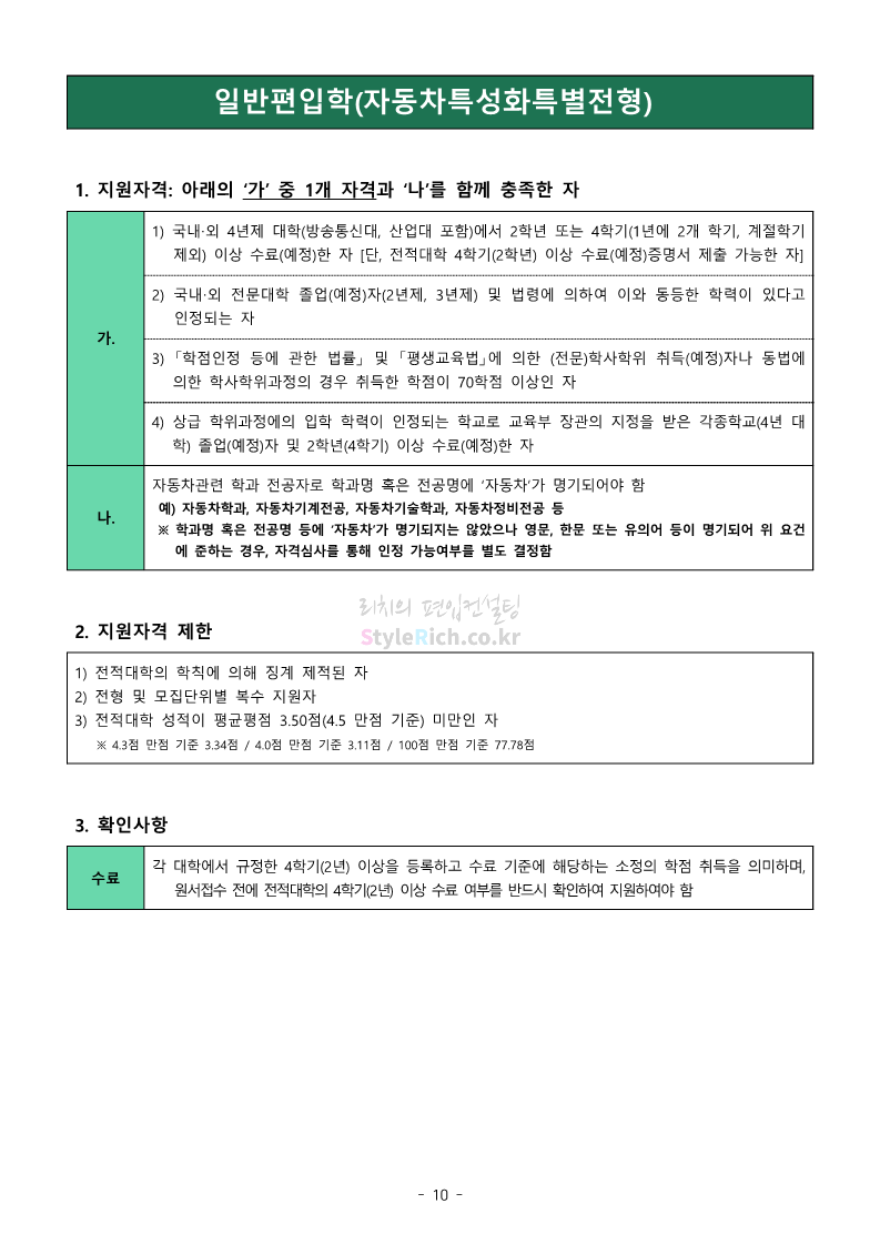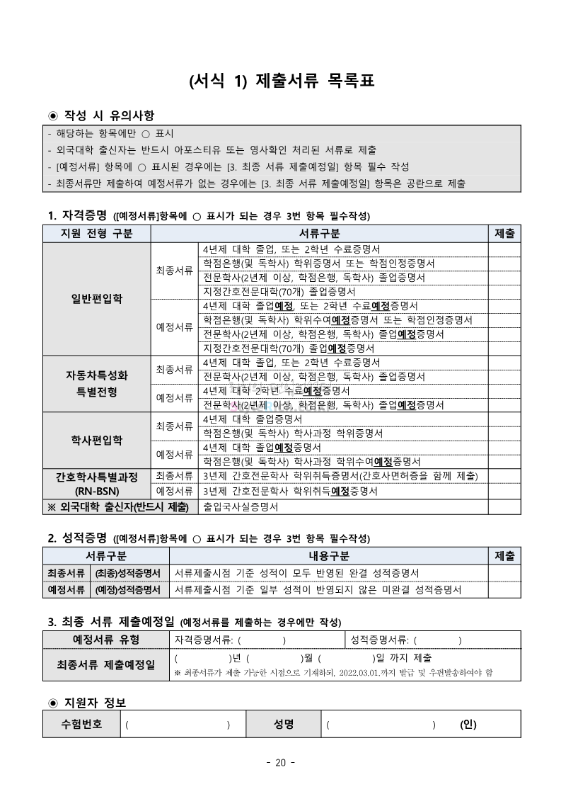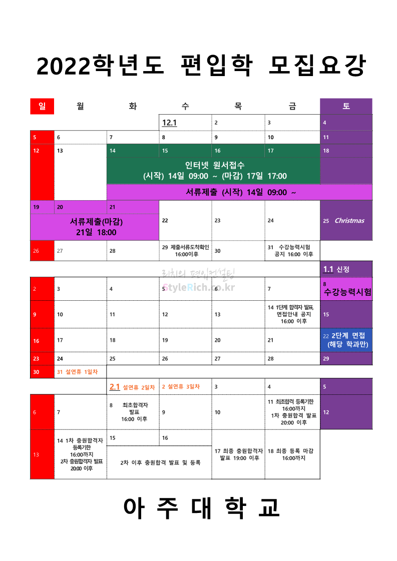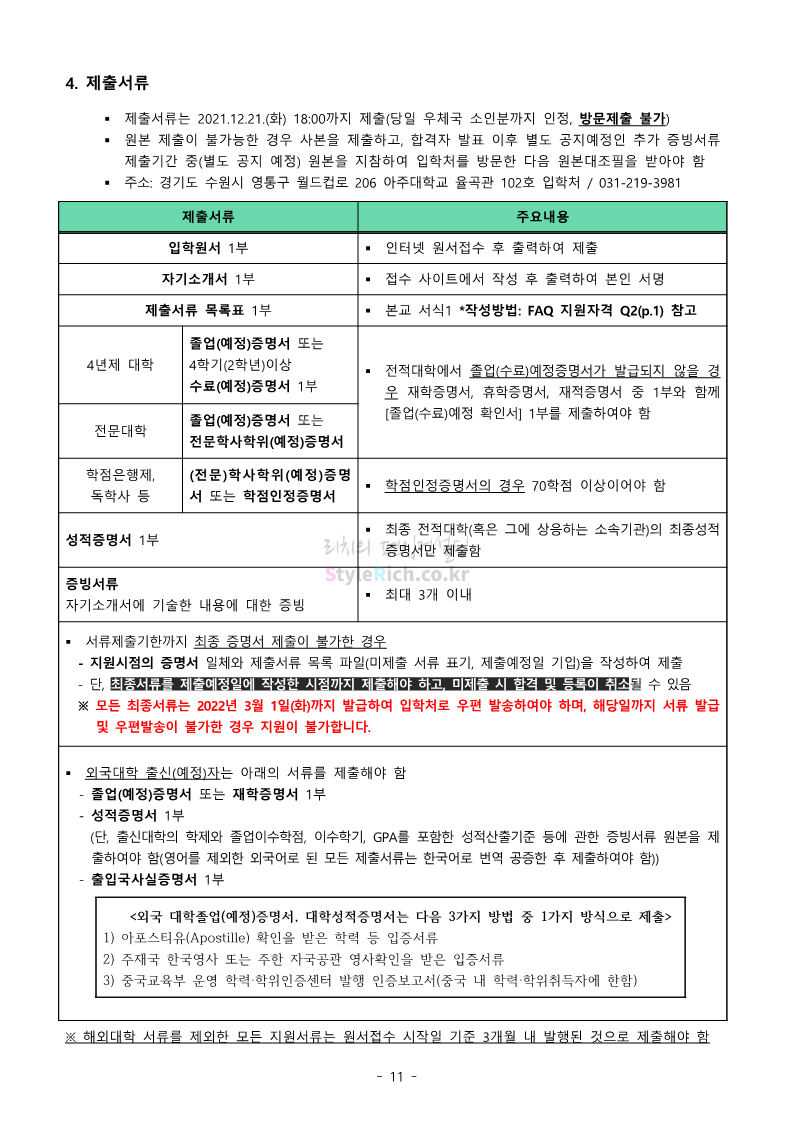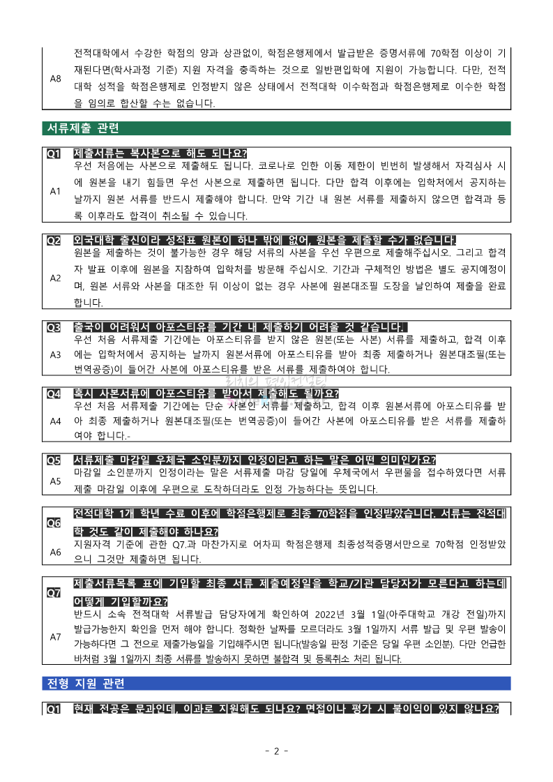아주대 편입 2022학년도 모집요강 간편하게 보자! 2021.12.07 22:07 편입 모집요강/2022학년도 모집요강 2022학년도 아주대 편입 모집요강(2021.12.07 기준)을 간편하게 확인하세요. * 최종 모집요강 발표 이후에도 내용의 일부가 변경될 수 있으니 지원 전 반드시 아주대 입학처의 모집요강을 확인 바랍니다. 2022학년도 아주대 편입 모집요강 다운받기 <출처: 아주대> [📌면접안내영상] 2022학년도 면접전형 유의사항 안내(오징어게임ver.) 공유하기 게시글 관리 리치의 편입컨설팅 저작자표시 비영리 변경금지 (새창열림) '편입 모집요강 > 2022학년도 모집요강' 카테고리의 다른 글 안양대 편입 2022학년도 모집요강 간편하게 보자! (0) 2021.12.07 중앙대 편입 2022학년도 모집요강 간편하게 보자! (0) 2021.12.07 세종대 편입 2022학년도 모집요강 간편하게 보자! (0) 2021.12.07 충남대 편입 2022학년도 모집요강 간편하게 보자! (0) 2021.12.07 부산대 편입 2022학년도 모집요강 간편하게 보자! (0) 2021.12.07 댓글 공유하기 다른 글 댓글 이 글 공유하기 구독하기 구독하기 카카오톡 카카오톡 라인 라인 트위터 트위터 Facebook Facebook 카카오스토리 카카오스토리 밴드 밴드 네이버 블로그 네이버 블로그 Pocket Pocket Evernote Evernote 다른 글 안양대 편입 2022학년도 모집요강 간편하게 보자! 안양대 편입 2022학년도 모집요강 간편하게 보자! 2021.12.07 중앙대 편입 2022학년도 모집요강 간편하게 보자! 중앙대 편입 2022학년도 모집요강 간편하게 보자! 2021.12.07 세종대 편입 2022학년도 모집요강 간편하게 보자! 세종대 편입 2022학년도 모집요강 간편하게 보자! 2021.12.07 충남대 편입 2022학년도 모집요강 간편하게 보자! 충남대 편입 2022학년도 모집요강 간편하게 보자! 2021.12.07 다른 글 더 둘러보기