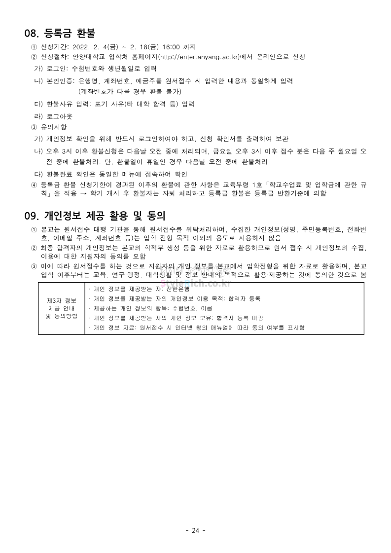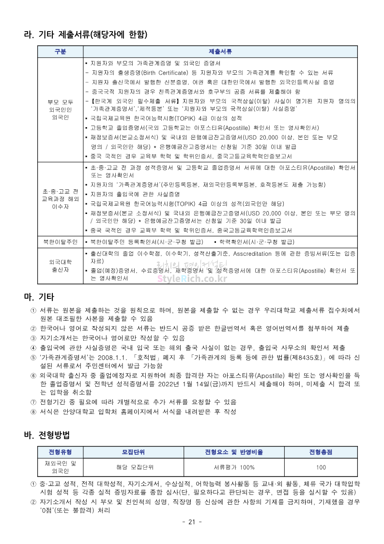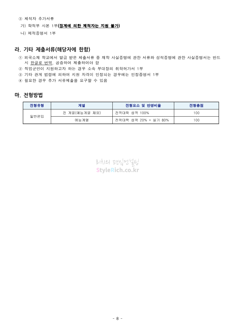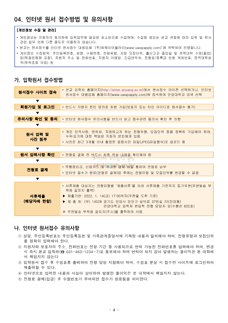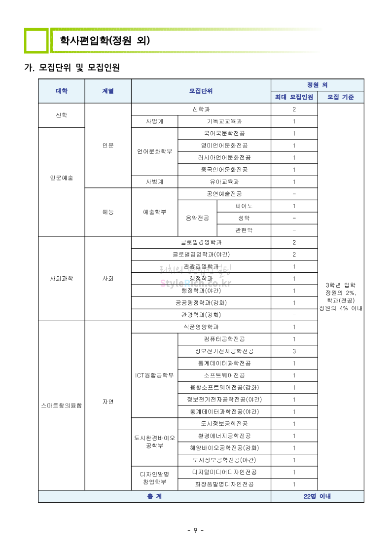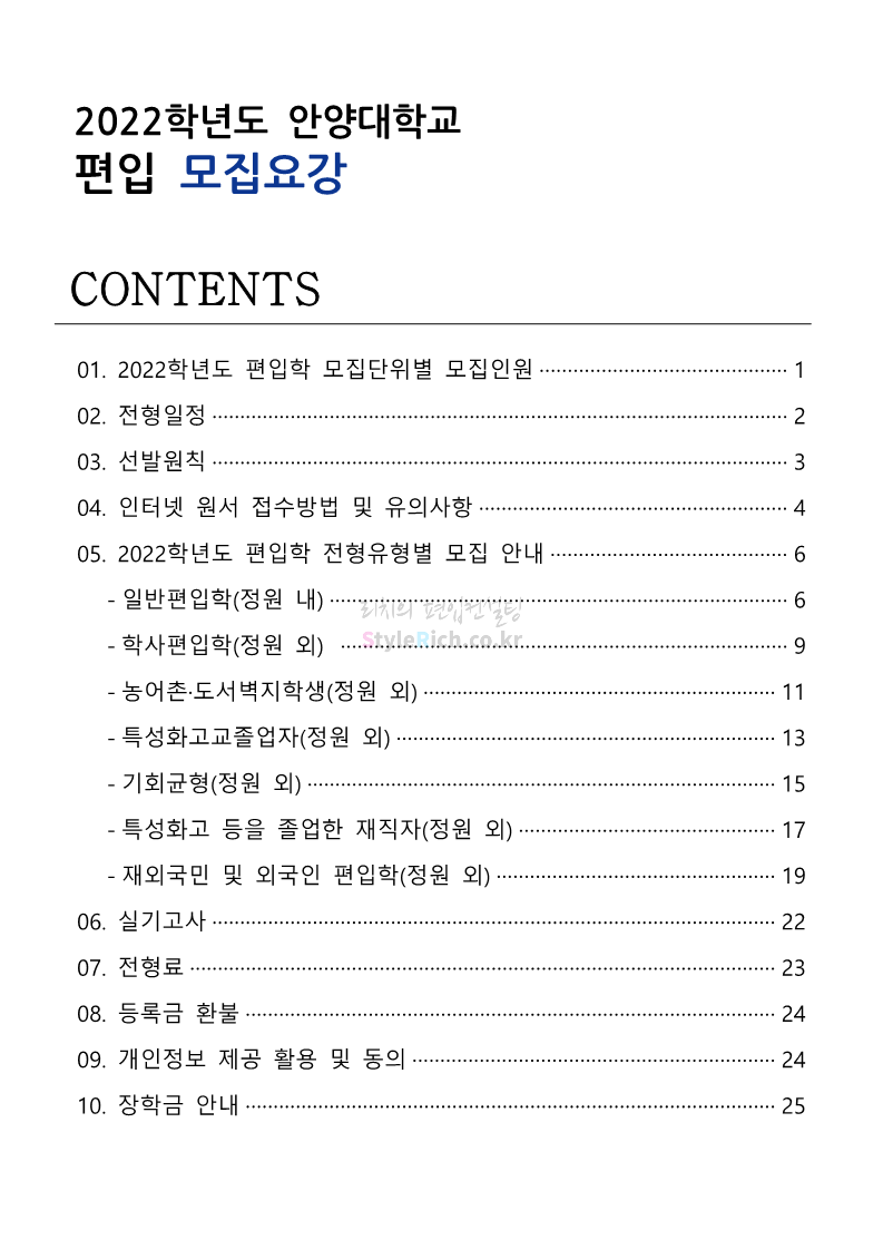 안양대 편입 2022학년도 모집요강 간편하게 보자! 2021.12.07 23:15 편입 모집요강/2022학년도 모집요강 2022학년도 안양대 편입 모집요강(2021.12.07 기준)을 간편하게 확인하세요. * 최종 모집요강 발표 이후에도 내용의 일부가 변경될 수 있으니 지원 전 반드시 안양대 입학처의 모집요강을 확인 바랍니다. 2022학년도 안양대 편입 모집요강 다운받기 <출처: 안양대> [Q&A] HIMM이 알려주는 MBTI별 대학생활 | 안양대학교 홍보대사 HIMM 공유하기 게시글 관리 리치의 편입컨설팅 저작자표시 비영리 변경금지 (새창열림) '편입 모집요강 > 2022학년도 모집요강' 카테고리의 다른 글 충북대 편입 2022학년도 모집요강 간편하게 보자! (0) 2021.12.08 전남대 편입 2022학년도 모집요강 간편하게 보자! (0) 2021.12.07 중앙대 편입 2022학년도 모집요강 간편하게 보자! (0) 2021.12.07 아주대 편입 2022학년도 모집요강 간편하게 보자! (0) 2021.12.07 세종대 편입 2022학년도 모집요강 간편하게 보자! (0) 2021.12.07 댓글 공유하기 다른 글 댓글 이 글 공유하기 구독하기 구독하기 카카오톡 카카오톡 라인 라인 트위터 트위터 Facebook Facebook 카카오스토리 카카오스토리 밴드 밴드 네이버 블로그 네이버 블로그 Pocket Pocket Evernote Evernote 다른 글 충북대 편입 2022학년도 모집요강 간편하게 보자! 충북대 편입 2022학년도 모집요강 간편하게 보자! 2021.12.08 전남대 편입 2022학년도 모집요강 간편하게 보자! 전남대 편입 2022학년도 모집요강 간편하게 보자! 2021.12.07 중앙대 편입 2022학년도 모집요강 간편하게 보자! 중앙대 편입 2022학년도 모집요강 간편하게 보자! 2021.12.07 아주대 편입 2022학년도 모집요강 간편하게 보자! 아주대 편입 2022학년도 모집요강 간편하게 보자! 2021.12.07 다른 글 더 둘러보기