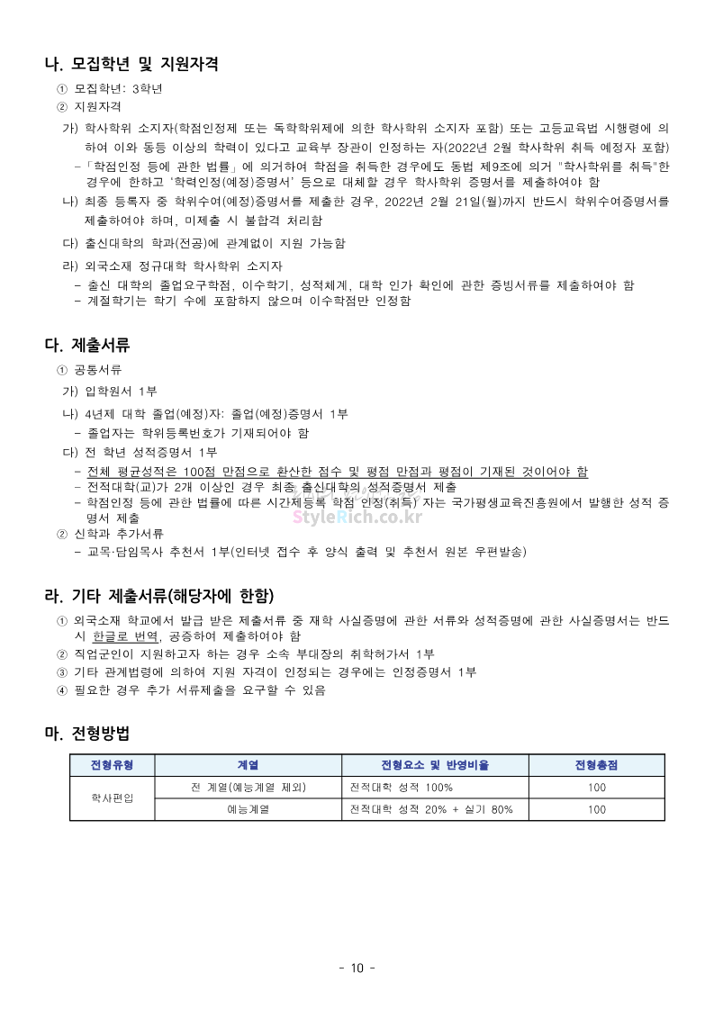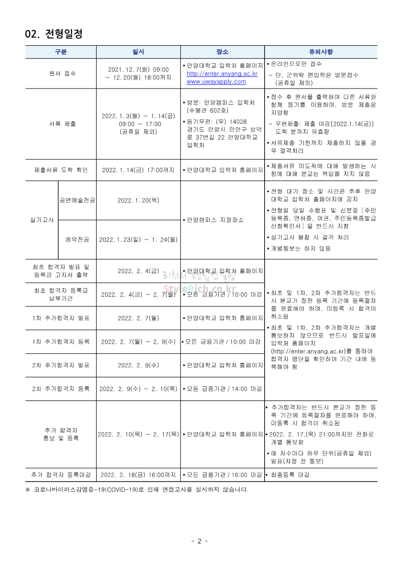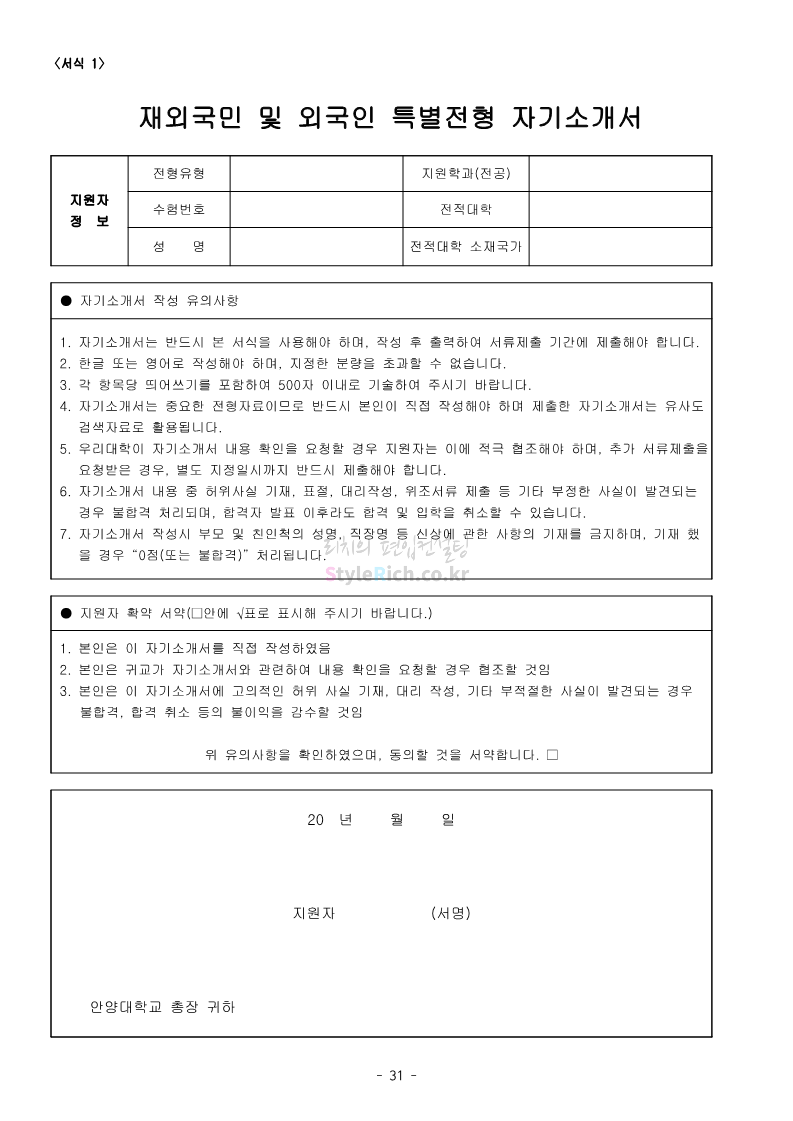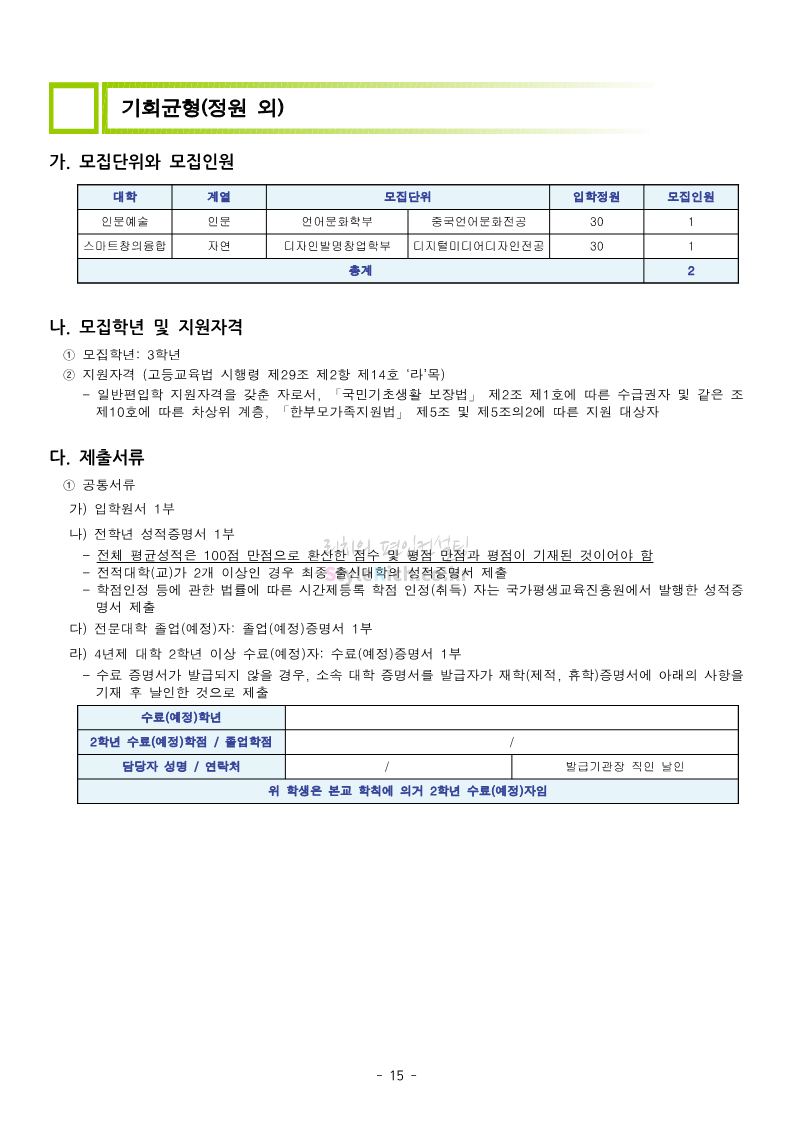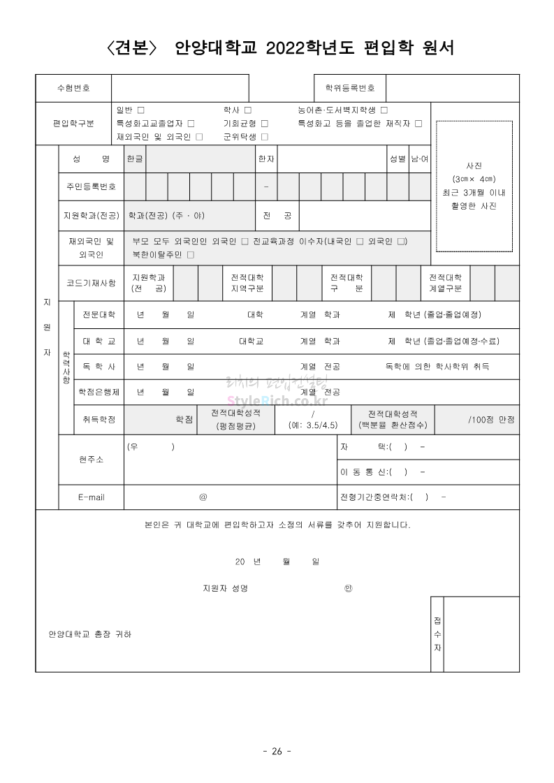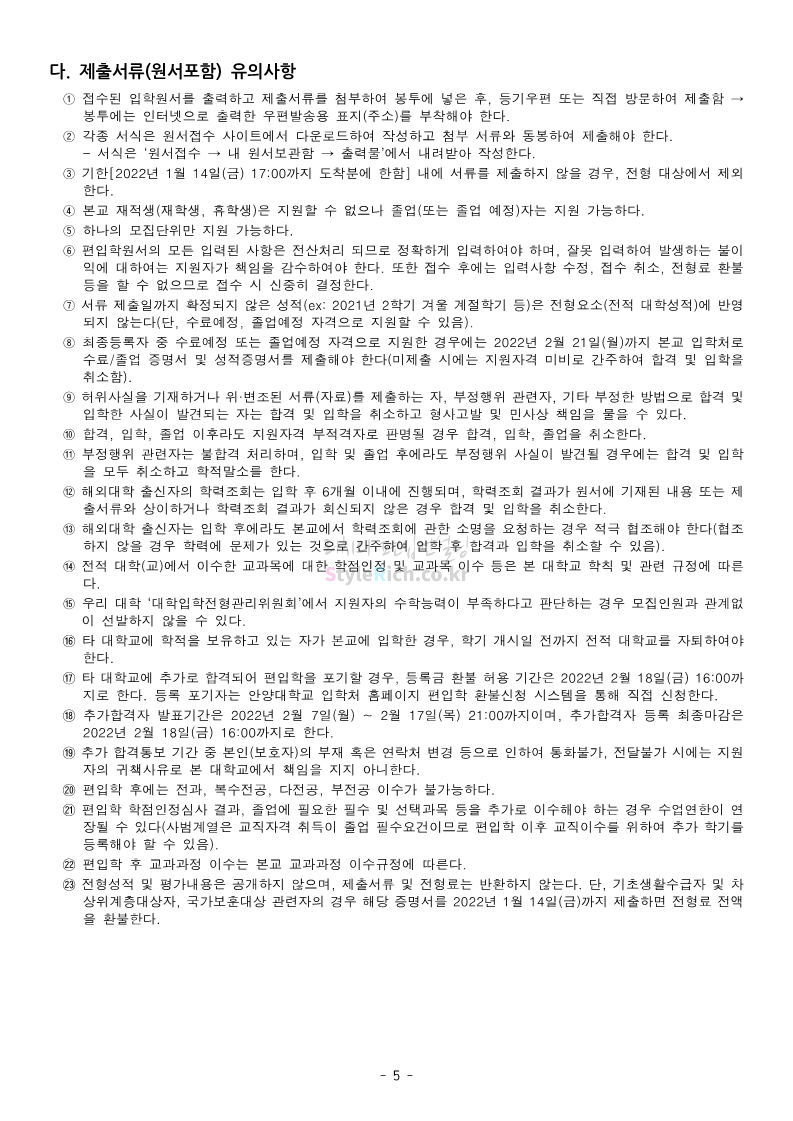 안양대 편입 2022학년도 모집요강 간편하게 보자! 2021.12.07 23:15 편입 모집요강/2022학년도 모집요강 2022학년도 안양대 편입 모집요강(2021.12.07 기준)을 간편하게 확인하세요. * 최종 모집요강 발표 이후에도 내용의 일부가 변경될 수 있으니 지원 전 반드시 안양대 입학처의 모집요강을 확인 바랍니다. 2022학년도 안양대 편입 모집요강 다운받기 <출처: 안양대> [Q&A] HIMM이 알려주는 MBTI별 대학생활 | 안양대학교 홍보대사 HIMM 공유하기 게시글 관리 리치의 편입컨설팅 저작자표시 비영리 변경금지 (새창열림) '편입 모집요강 > 2022학년도 모집요강' 카테고리의 다른 글 충북대 편입 2022학년도 모집요강 간편하게 보자! (0) 2021.12.08 전남대 편입 2022학년도 모집요강 간편하게 보자! (0) 2021.12.07 중앙대 편입 2022학년도 모집요강 간편하게 보자! (0) 2021.12.07 아주대 편입 2022학년도 모집요강 간편하게 보자! (0) 2021.12.07 세종대 편입 2022학년도 모집요강 간편하게 보자! (0) 2021.12.07 댓글 공유하기 다른 글 댓글 이 글 공유하기 구독하기 구독하기 카카오톡 카카오톡 라인 라인 트위터 트위터 Facebook Facebook 카카오스토리 카카오스토리 밴드 밴드 네이버 블로그 네이버 블로그 Pocket Pocket Evernote Evernote 다른 글 충북대 편입 2022학년도 모집요강 간편하게 보자! 충북대 편입 2022학년도 모집요강 간편하게 보자! 2021.12.08 전남대 편입 2022학년도 모집요강 간편하게 보자! 전남대 편입 2022학년도 모집요강 간편하게 보자! 2021.12.07 중앙대 편입 2022학년도 모집요강 간편하게 보자! 중앙대 편입 2022학년도 모집요강 간편하게 보자! 2021.12.07 아주대 편입 2022학년도 모집요강 간편하게 보자! 아주대 편입 2022학년도 모집요강 간편하게 보자! 2021.12.07 다른 글 더 둘러보기