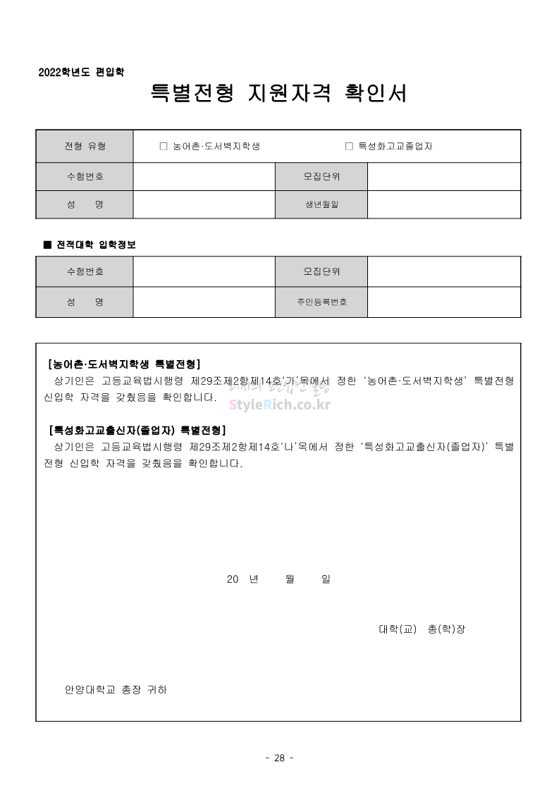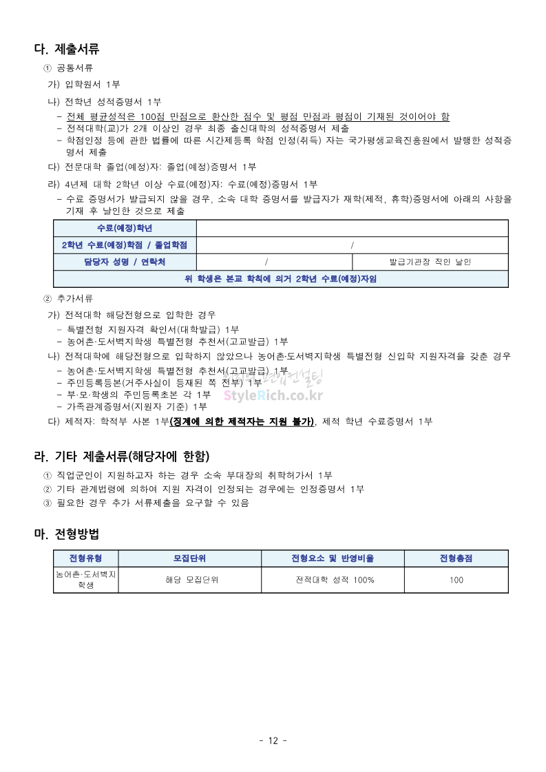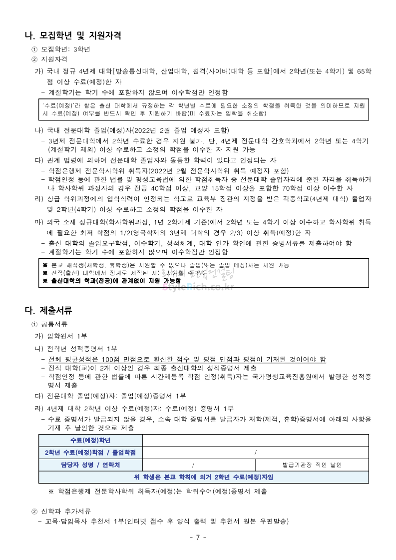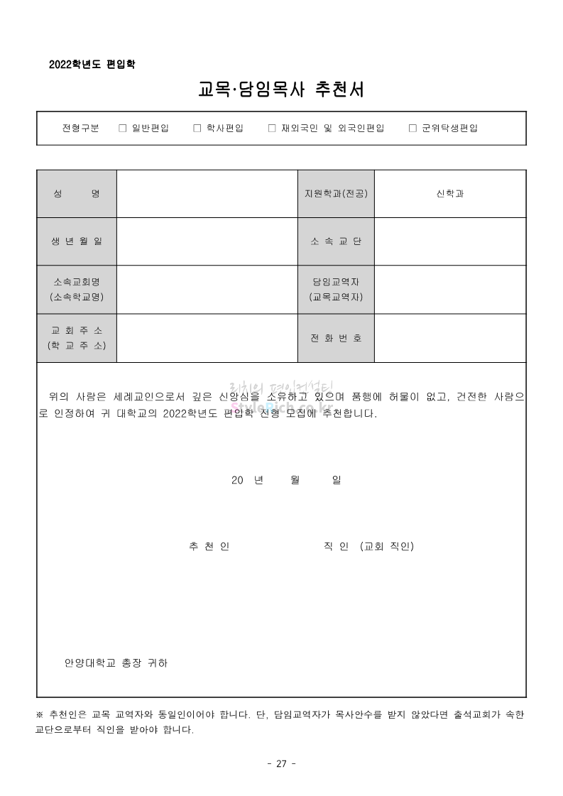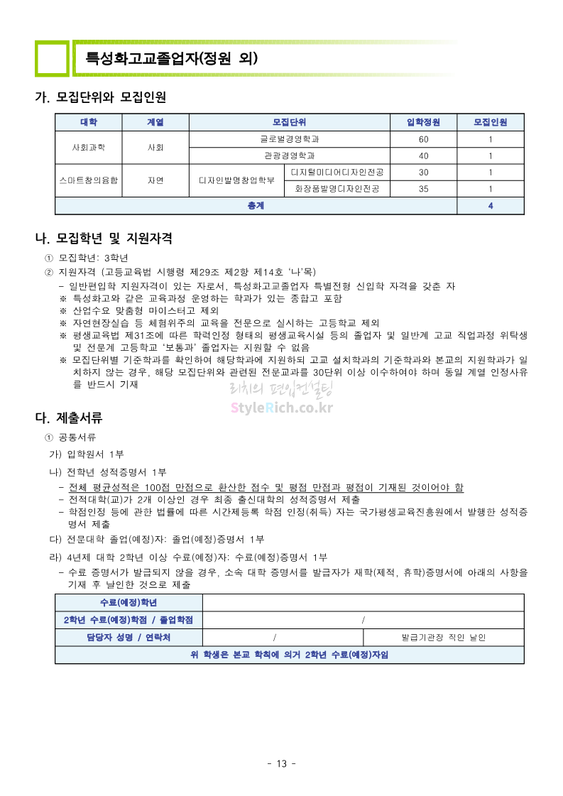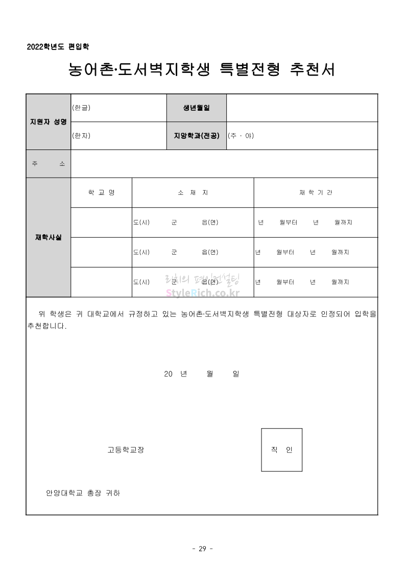 안양대 편입 2022학년도 모집요강 간편하게 보자! 2021.12.07 23:15 편입 모집요강/2022학년도 모집요강 2022학년도 안양대 편입 모집요강(2021.12.07 기준)을 간편하게 확인하세요. * 최종 모집요강 발표 이후에도 내용의 일부가 변경될 수 있으니 지원 전 반드시 안양대 입학처의 모집요강을 확인 바랍니다. 2022학년도 안양대 편입 모집요강 다운받기 <출처: 안양대> [Q&A] HIMM이 알려주는 MBTI별 대학생활 | 안양대학교 홍보대사 HIMM 공유하기 게시글 관리 리치의 편입컨설팅 저작자표시 비영리 변경금지 (새창열림) '편입 모집요강 > 2022학년도 모집요강' 카테고리의 다른 글 충북대 편입 2022학년도 모집요강 간편하게 보자! (0) 2021.12.08 전남대 편입 2022학년도 모집요강 간편하게 보자! (0) 2021.12.07 중앙대 편입 2022학년도 모집요강 간편하게 보자! (0) 2021.12.07 아주대 편입 2022학년도 모집요강 간편하게 보자! (0) 2021.12.07 세종대 편입 2022학년도 모집요강 간편하게 보자! (0) 2021.12.07 댓글 공유하기 다른 글 댓글 이 글 공유하기 구독하기 구독하기 카카오톡 카카오톡 라인 라인 트위터 트위터 Facebook Facebook 카카오스토리 카카오스토리 밴드 밴드 네이버 블로그 네이버 블로그 Pocket Pocket Evernote Evernote 다른 글 충북대 편입 2022학년도 모집요강 간편하게 보자! 충북대 편입 2022학년도 모집요강 간편하게 보자! 2021.12.08 전남대 편입 2022학년도 모집요강 간편하게 보자! 전남대 편입 2022학년도 모집요강 간편하게 보자! 2021.12.07 중앙대 편입 2022학년도 모집요강 간편하게 보자! 중앙대 편입 2022학년도 모집요강 간편하게 보자! 2021.12.07 아주대 편입 2022학년도 모집요강 간편하게 보자! 아주대 편입 2022학년도 모집요강 간편하게 보자! 2021.12.07 다른 글 더 둘러보기