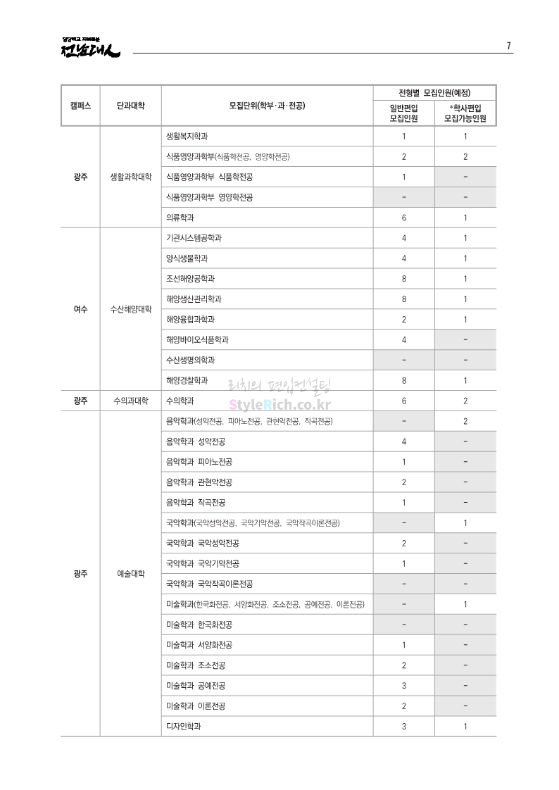 *최종 모집요강 발표 이후에도 내용의 일부가 변경될 수 있으니 지원 전 반드시 전남대 입학처의 모집요강을 확인 바랍니다.
